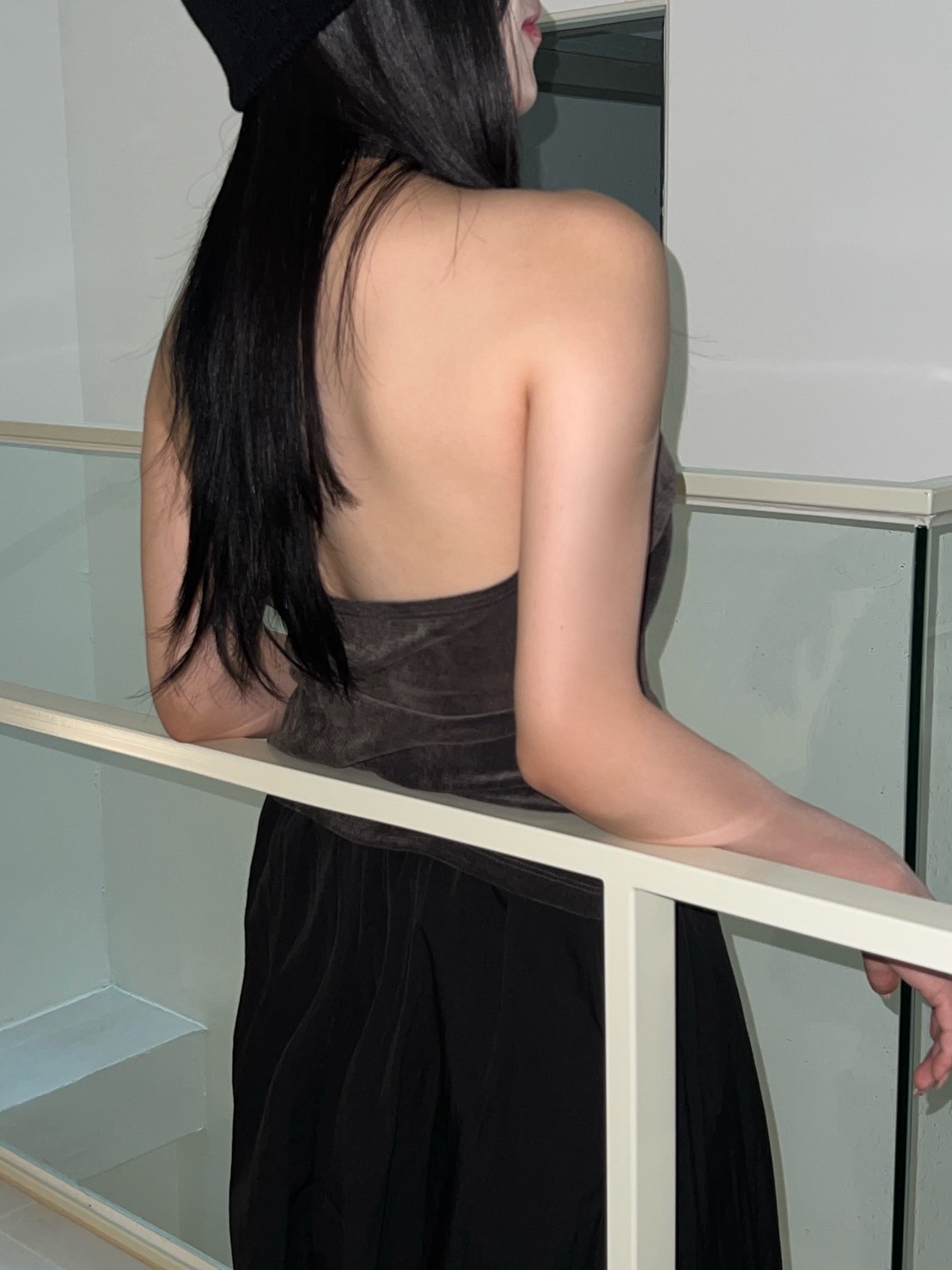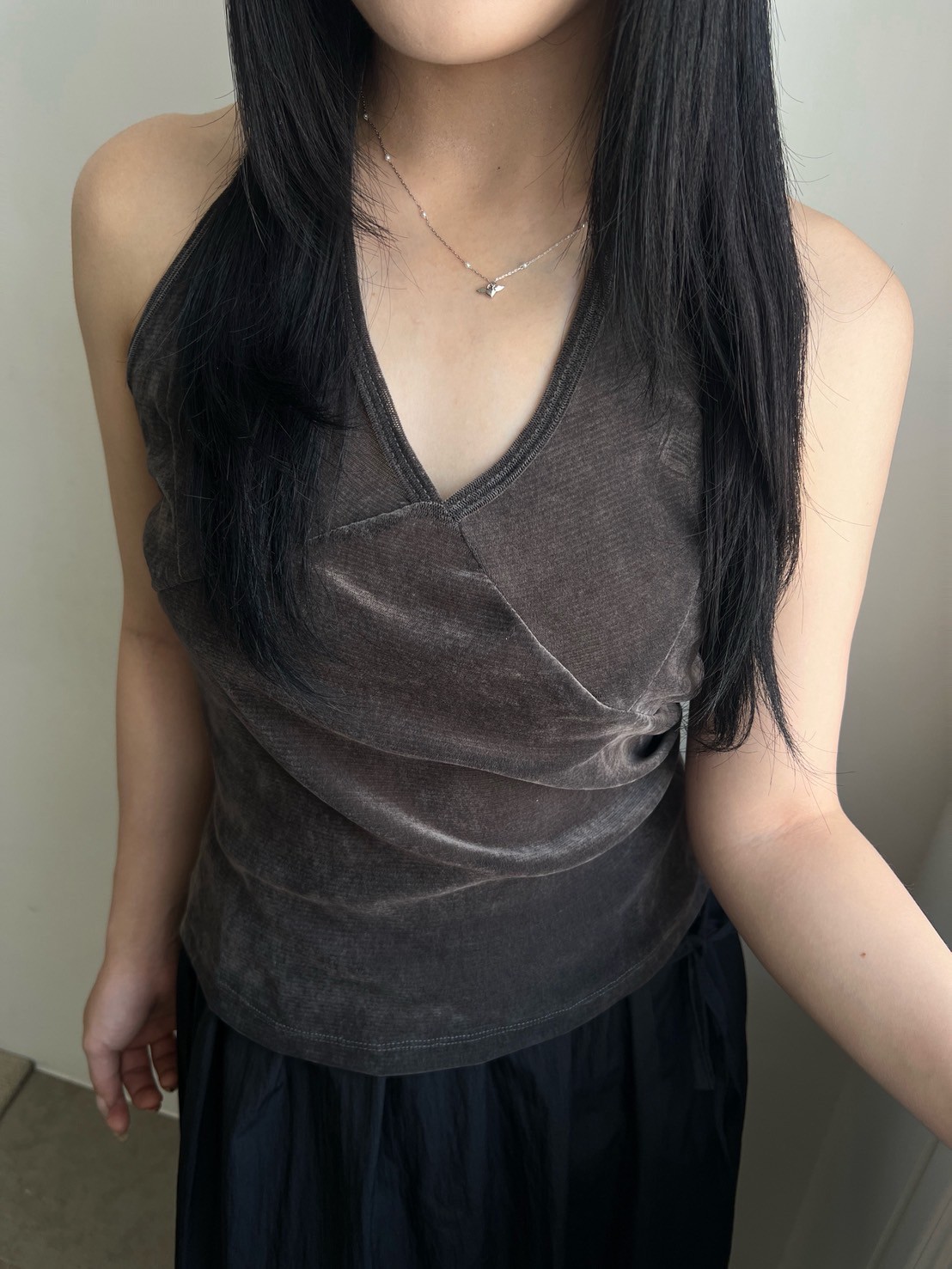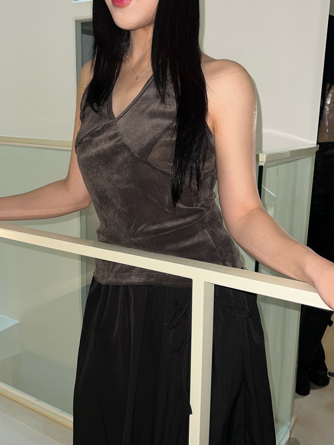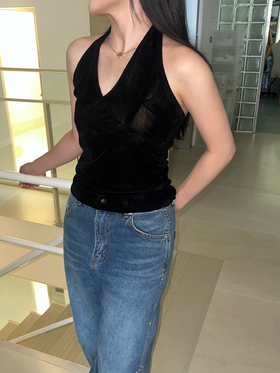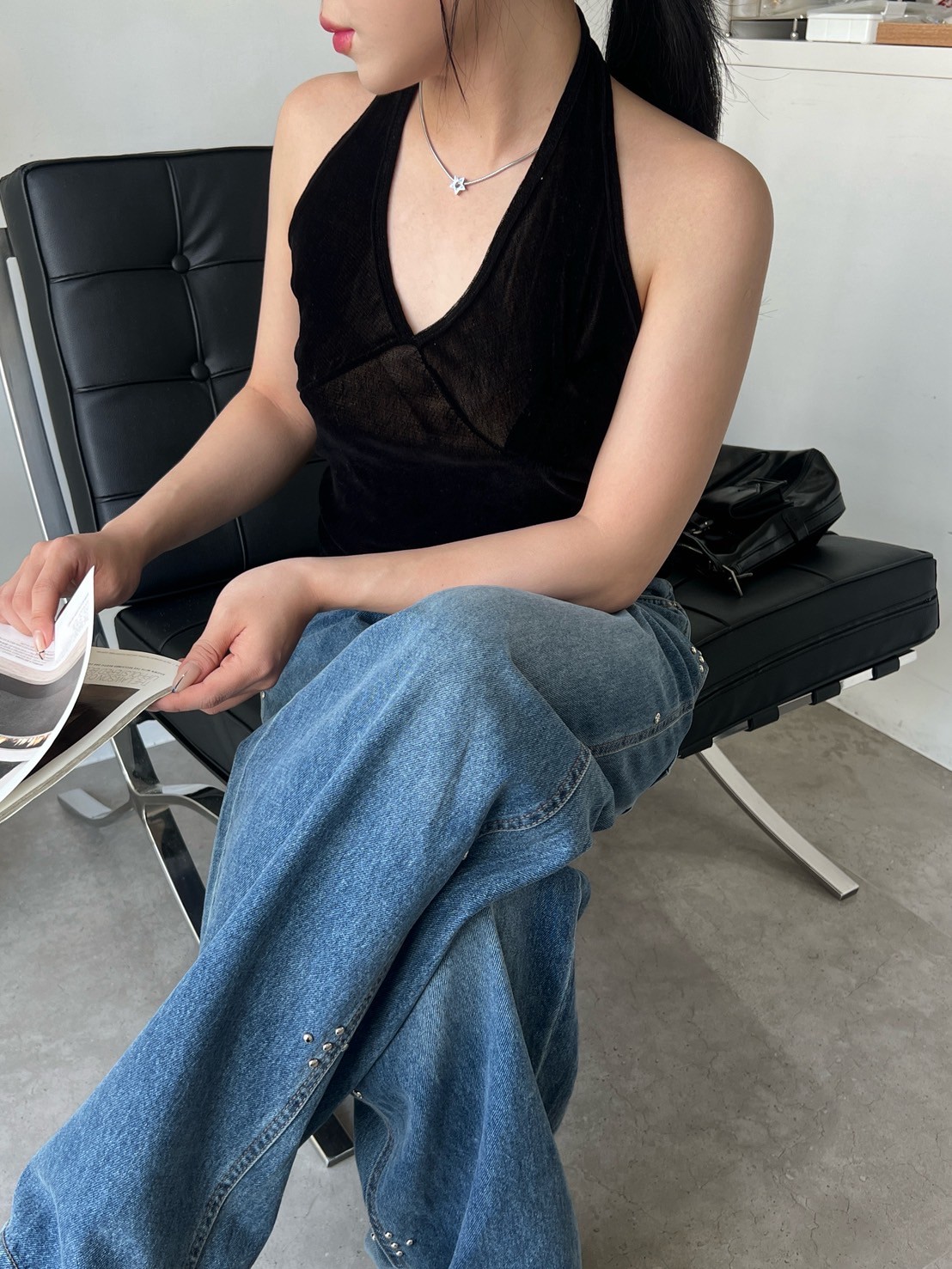 亮絨透膚繞脖背心