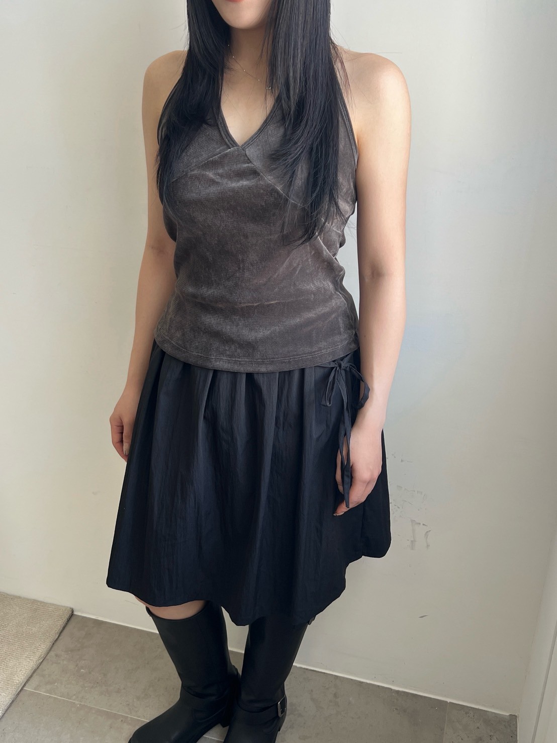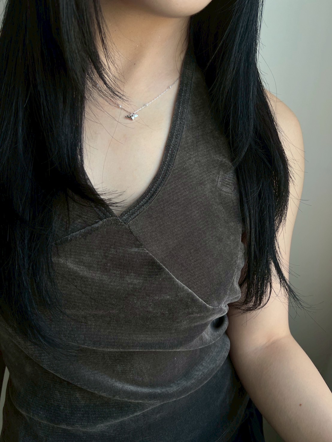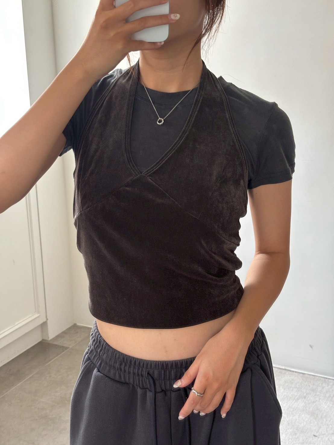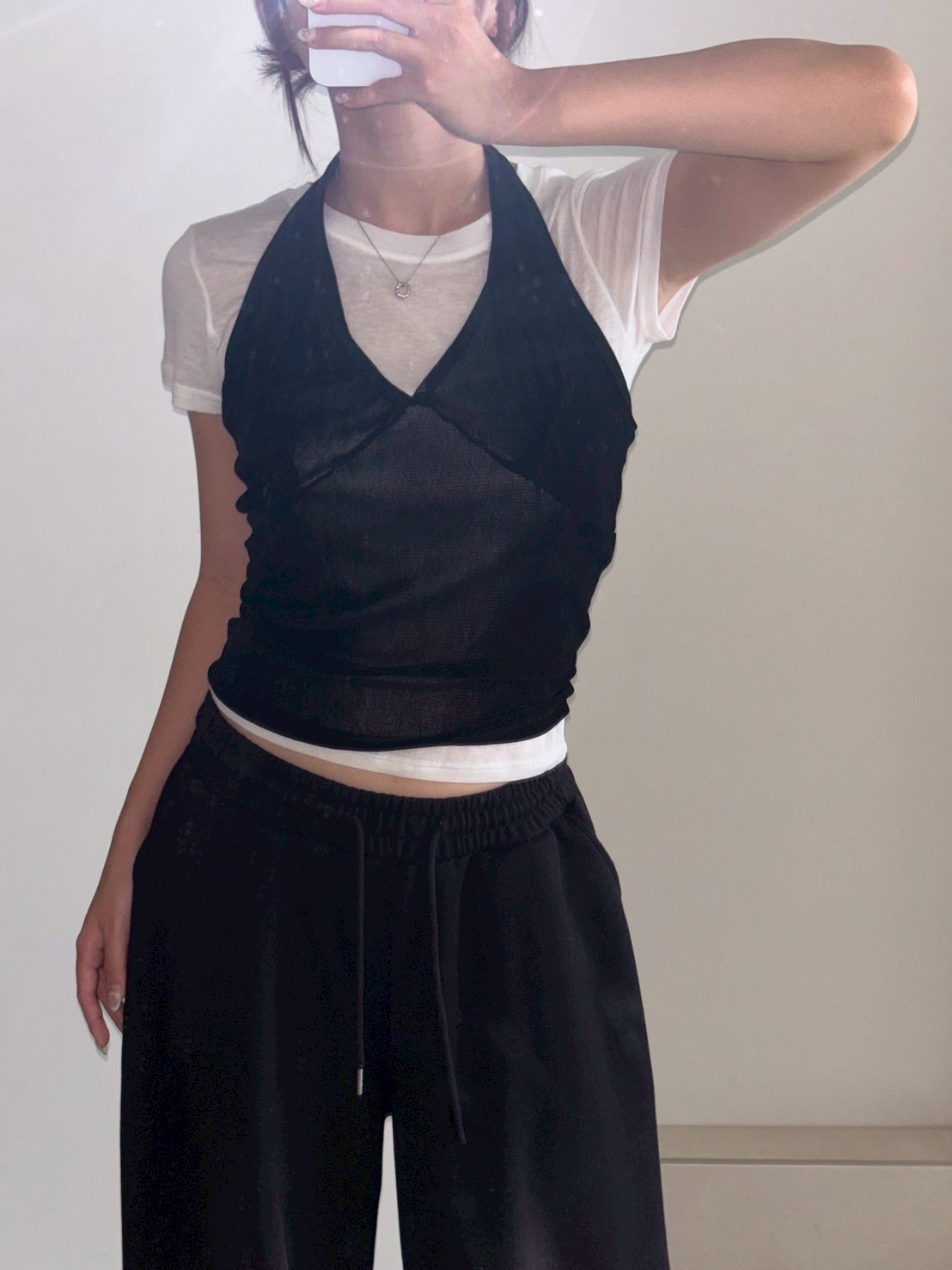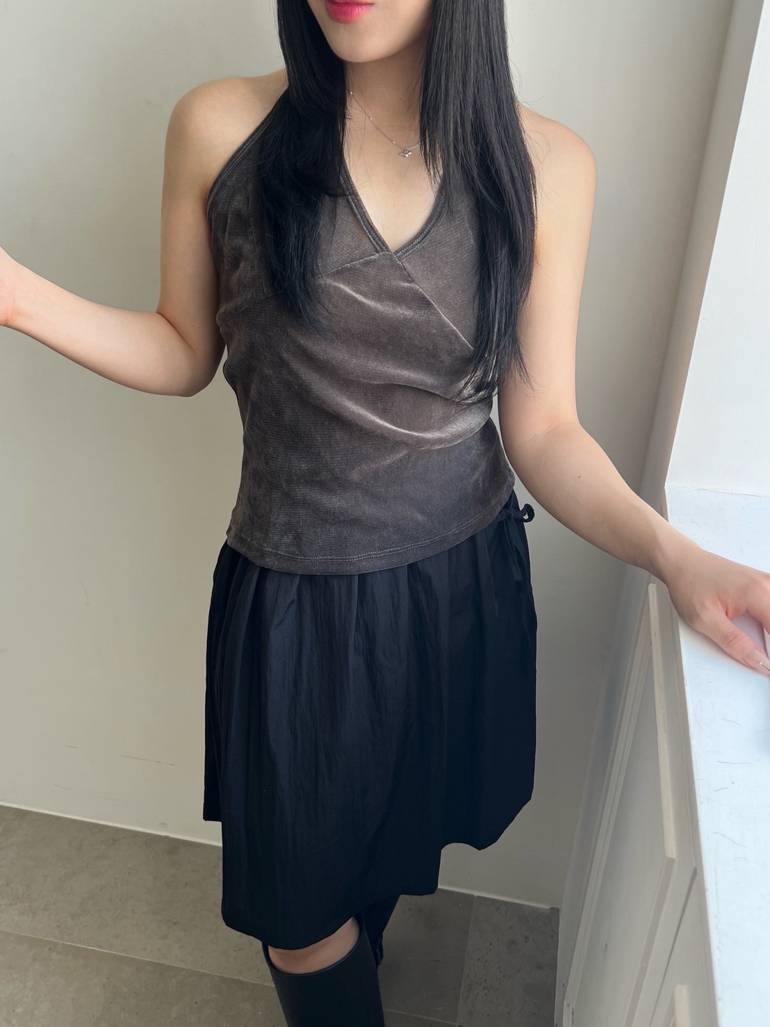亮絨透膚繞脖背心