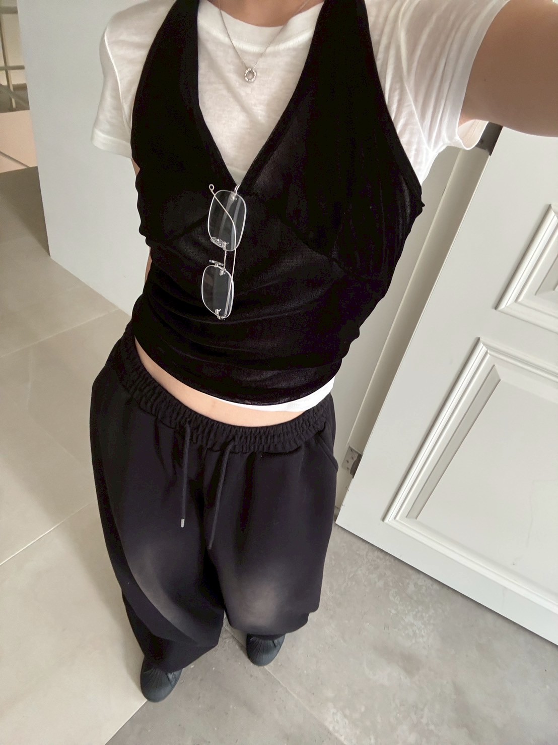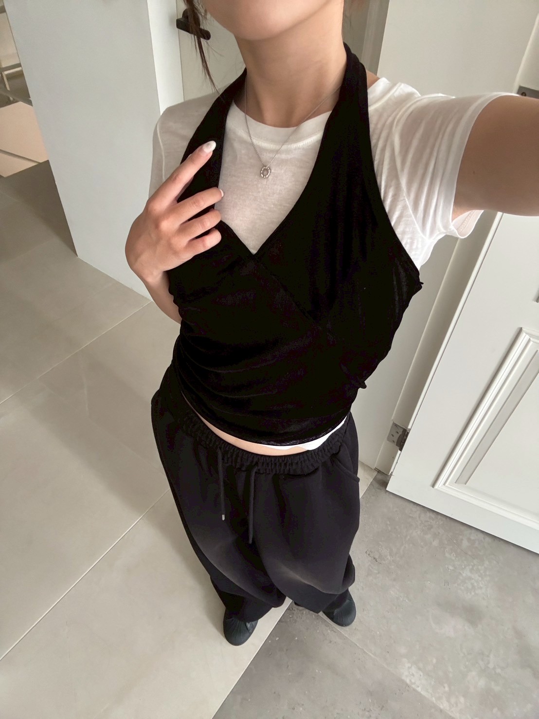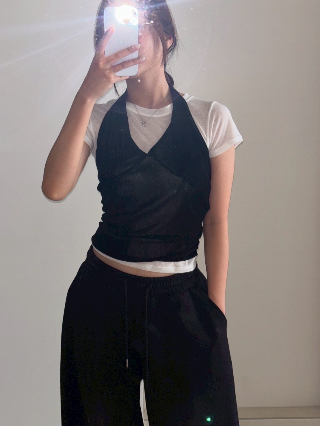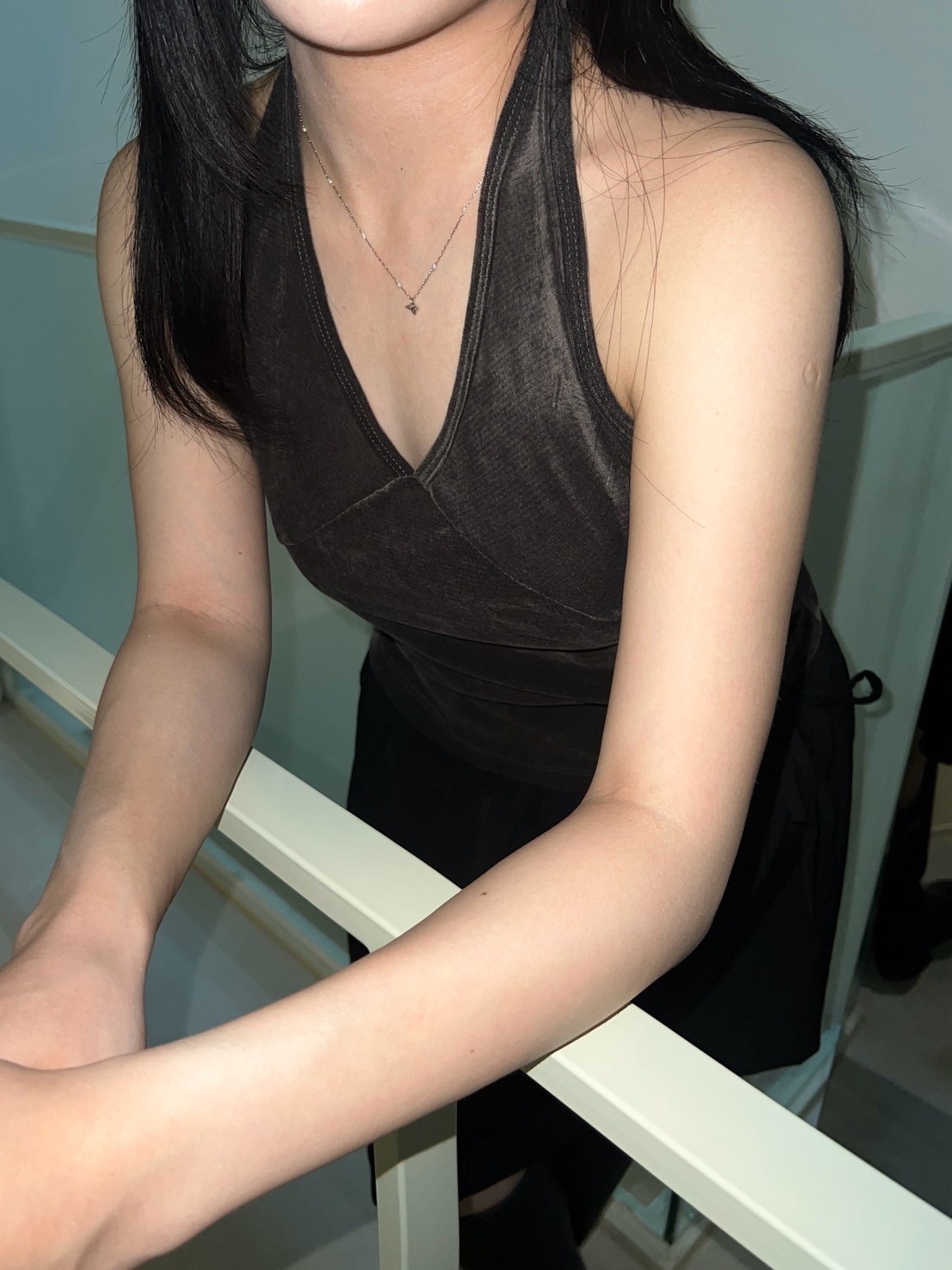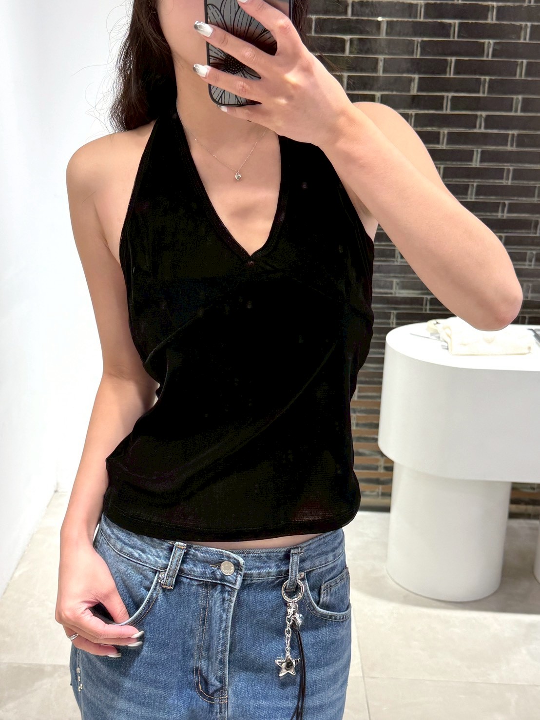 亮絨透膚繞脖背心