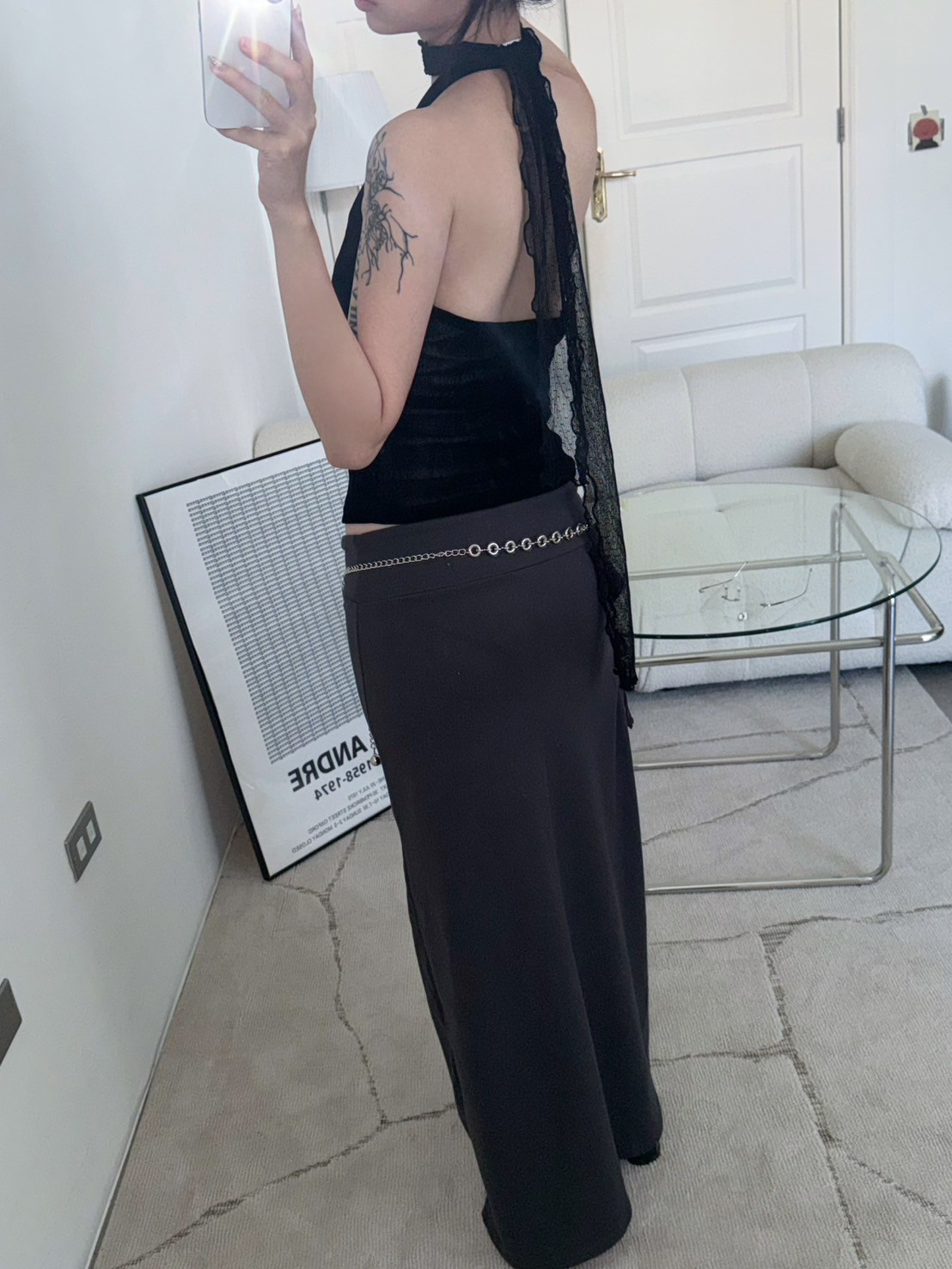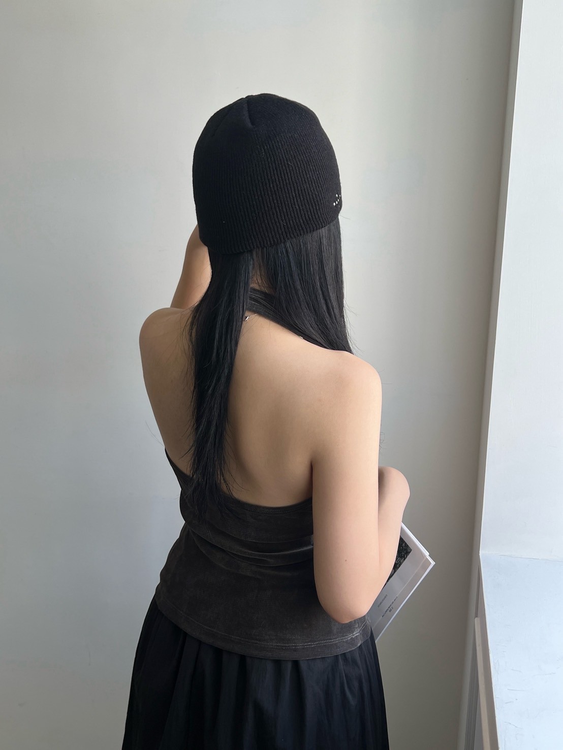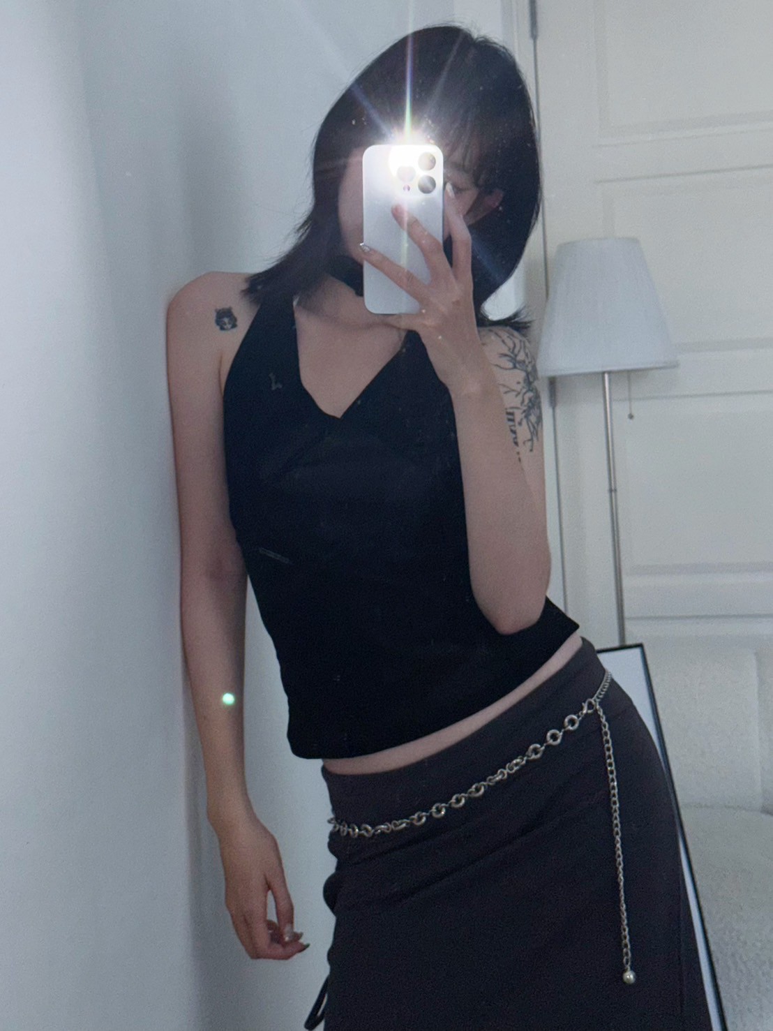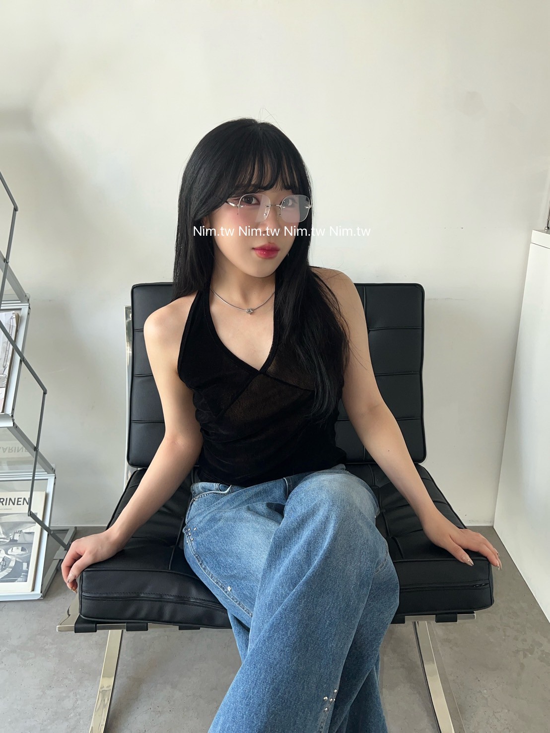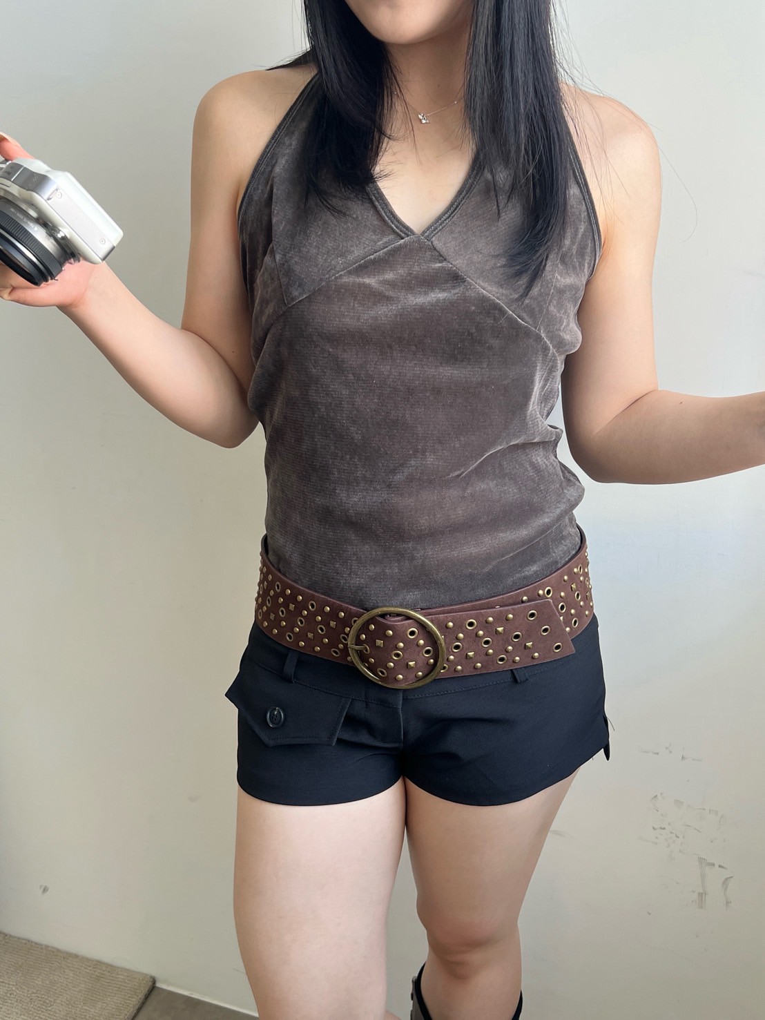 亮絨透膚繞脖背心