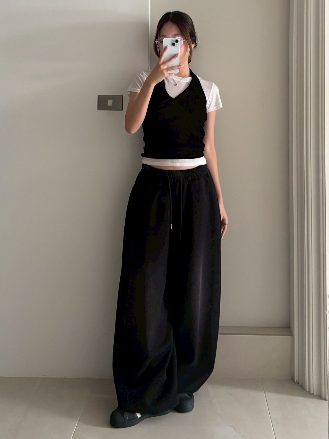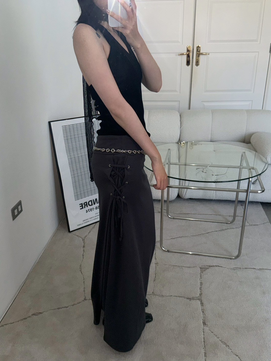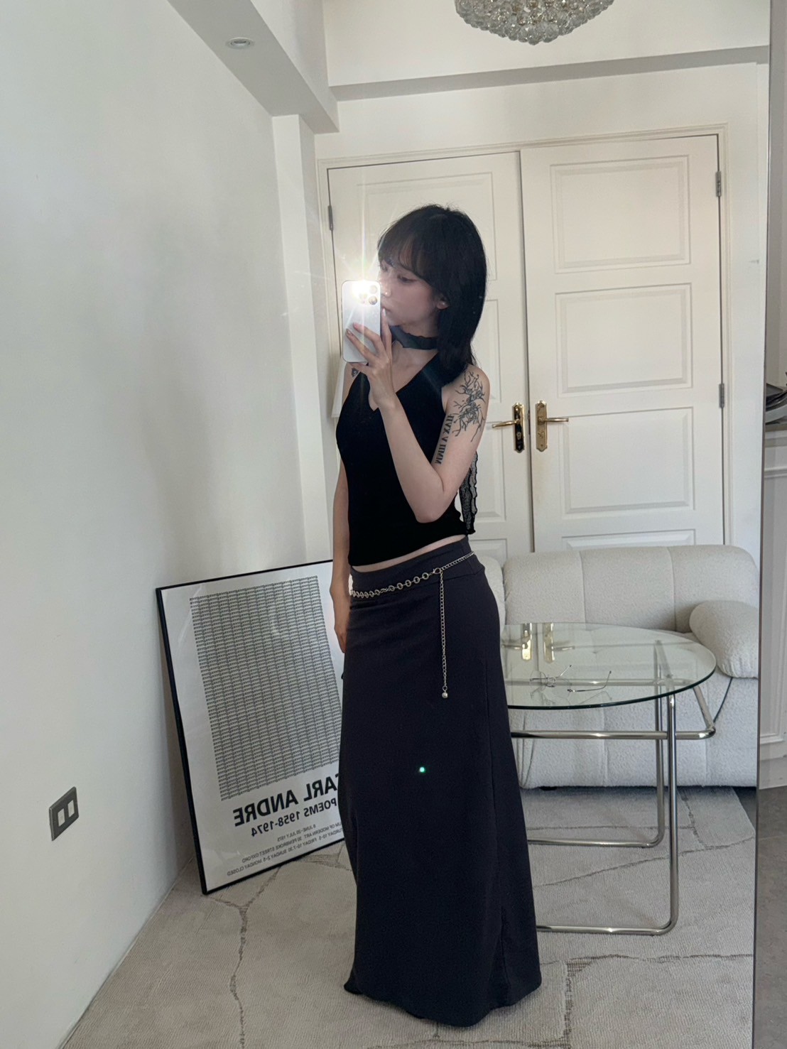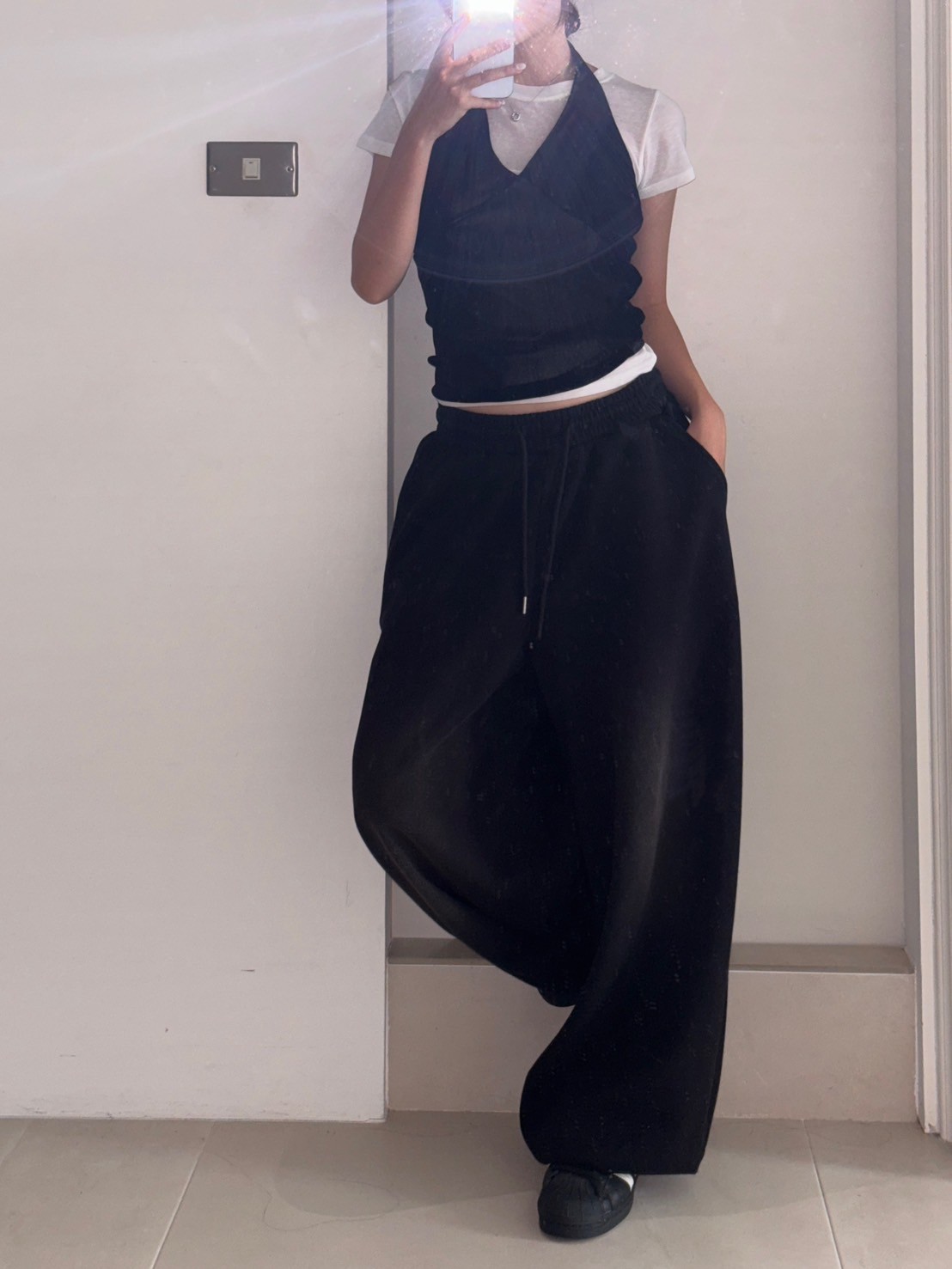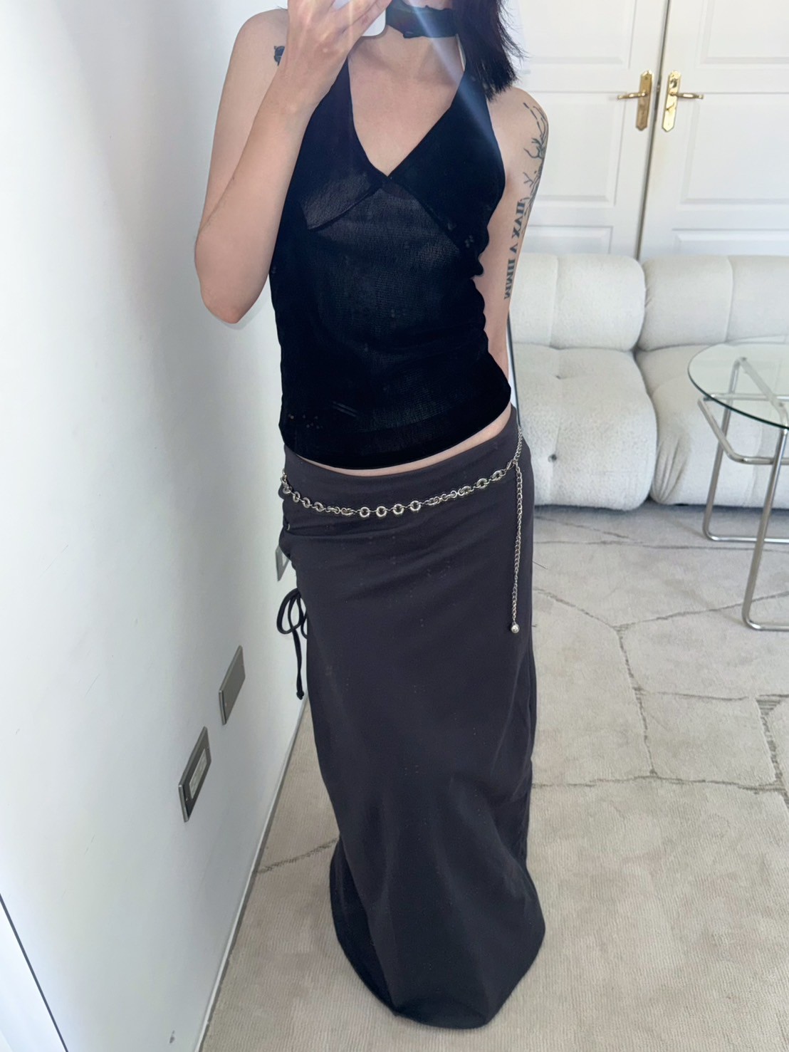亮絨透膚繞脖背心