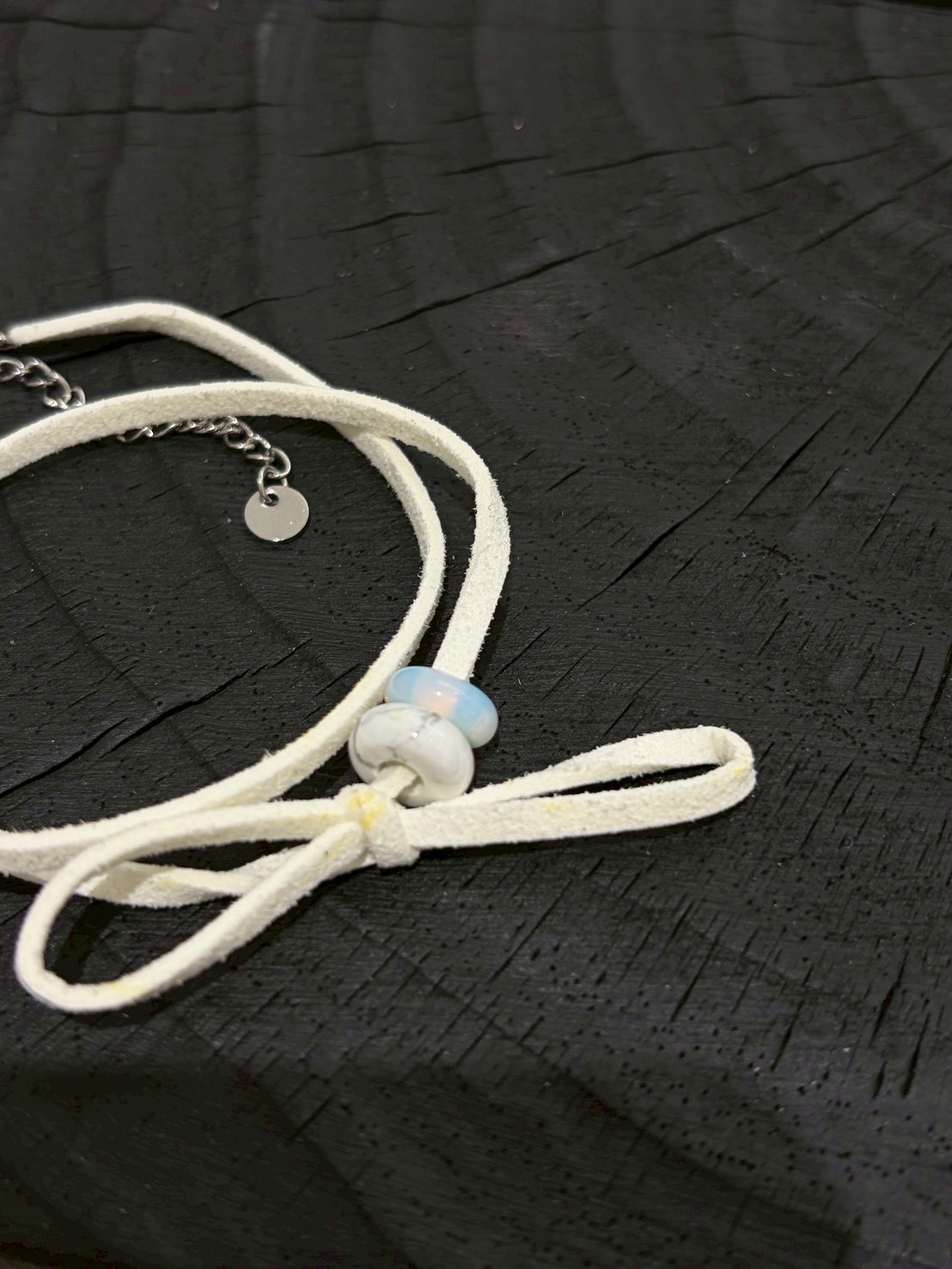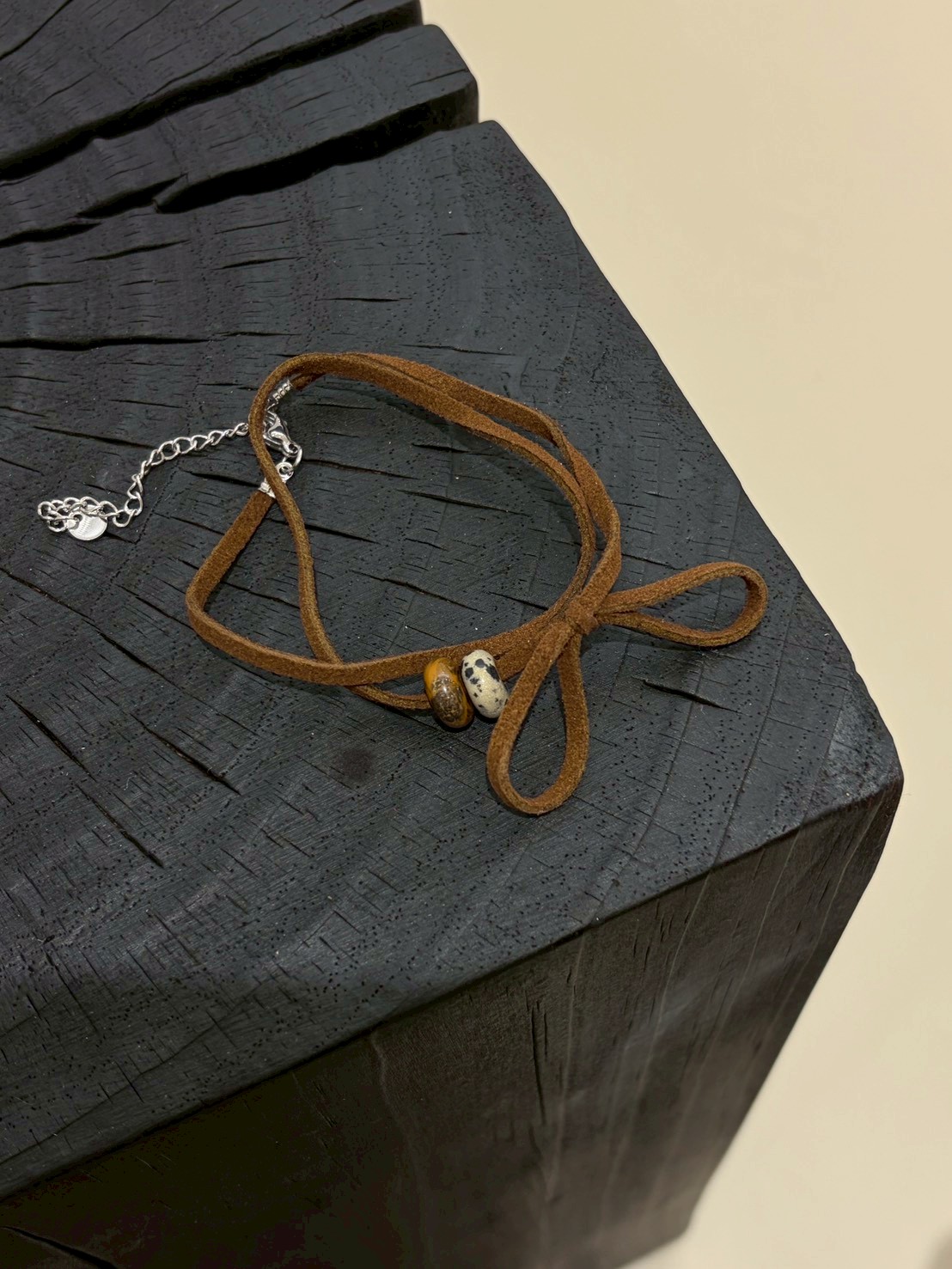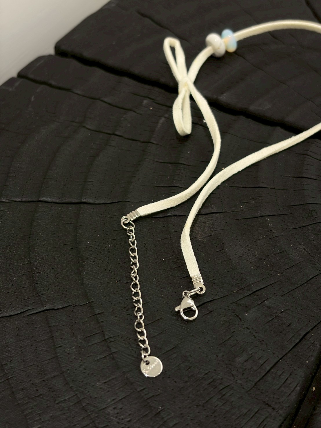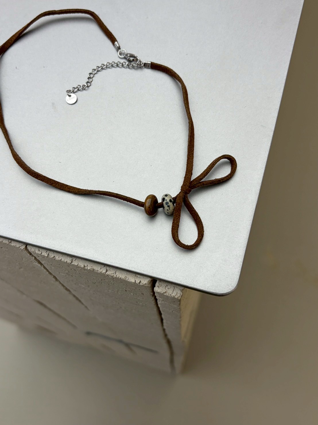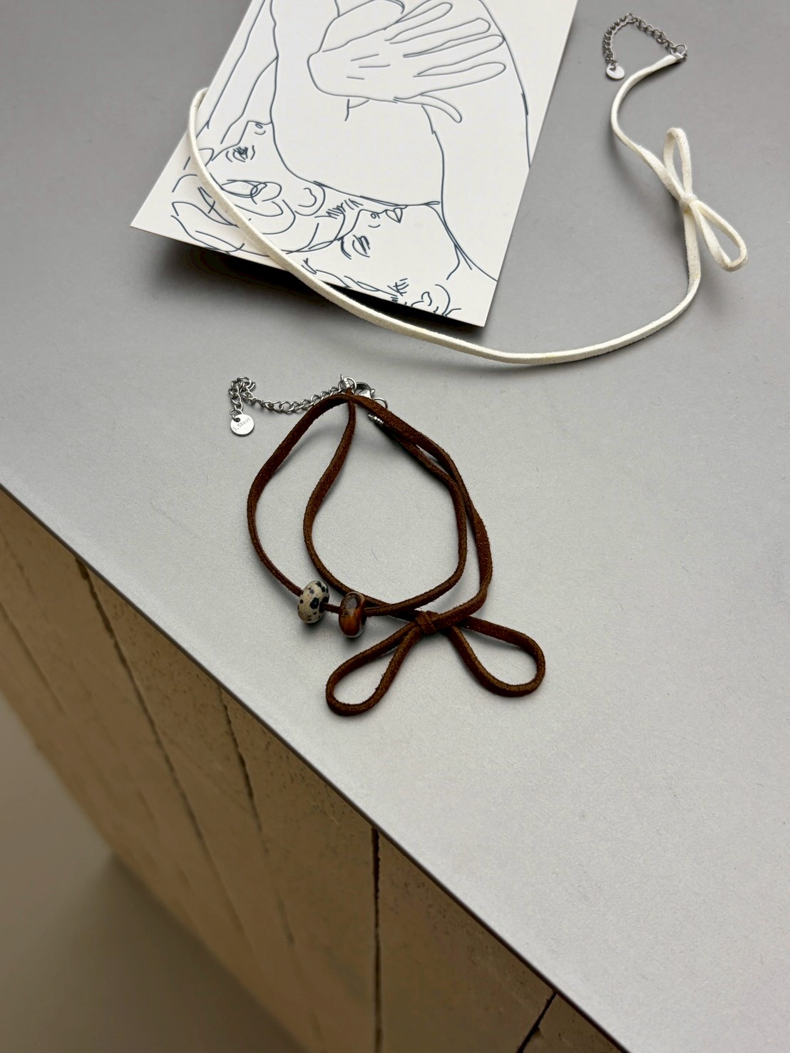 預購側蝴蝶結雙扁珠麂皮繩項鍊