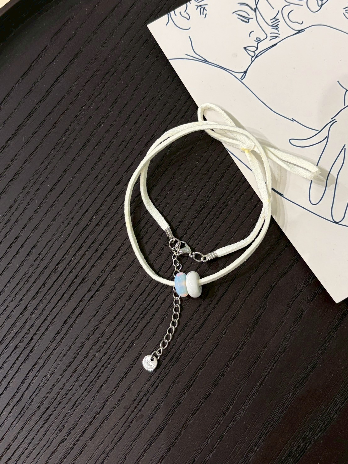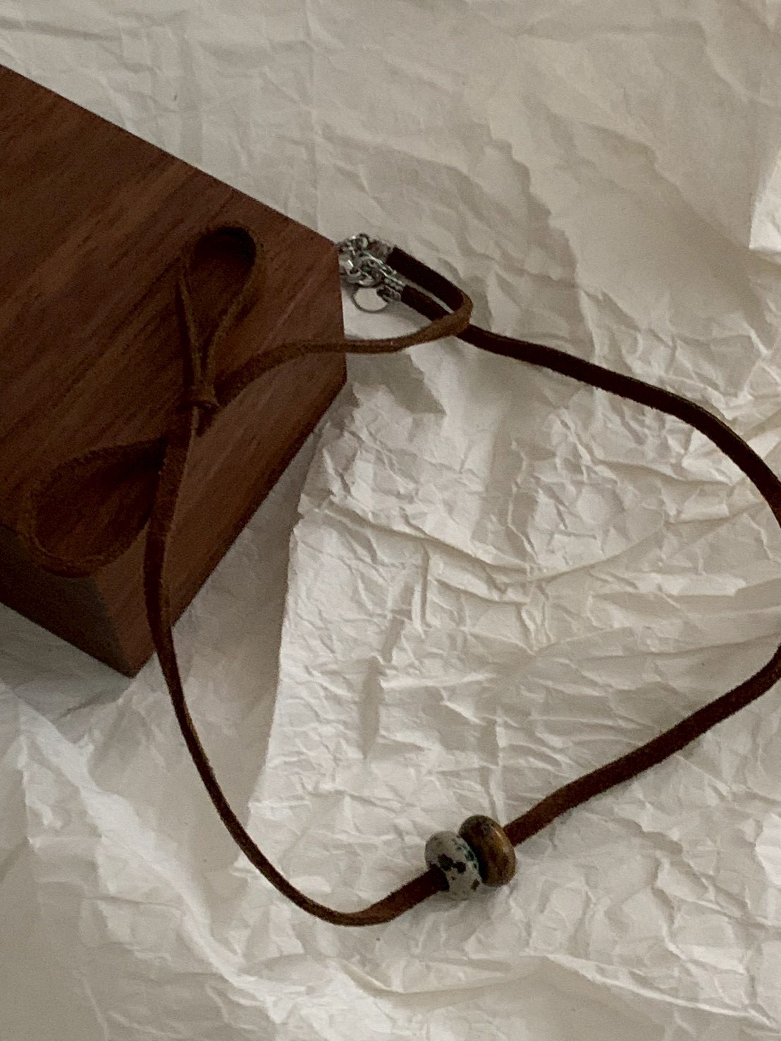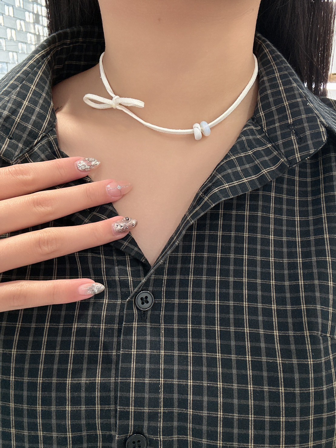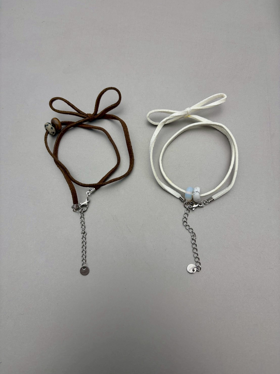 預購側蝴蝶結雙扁珠麂皮繩項鍊