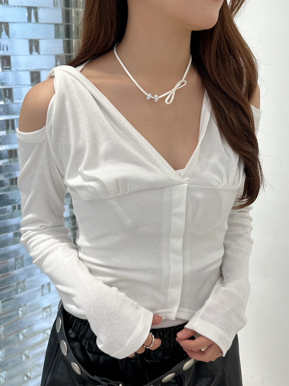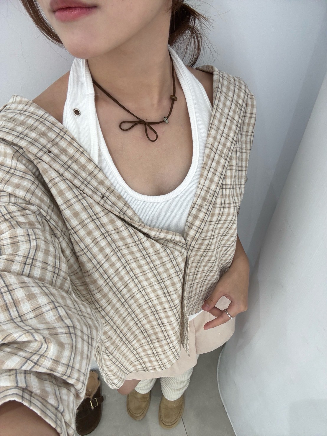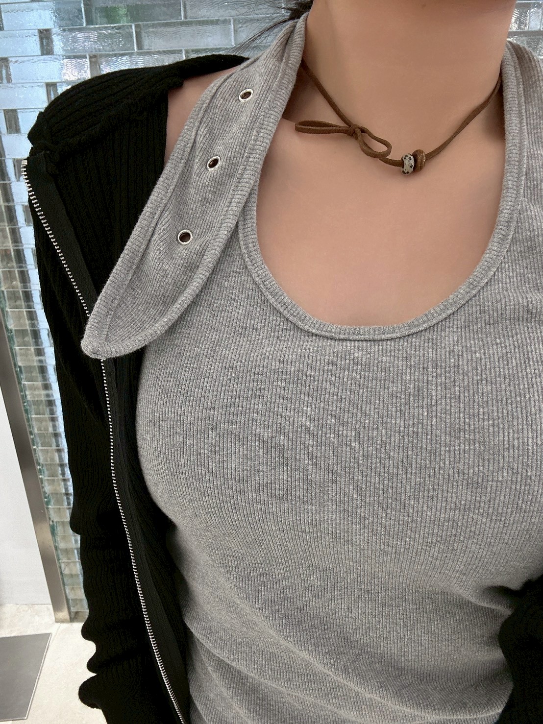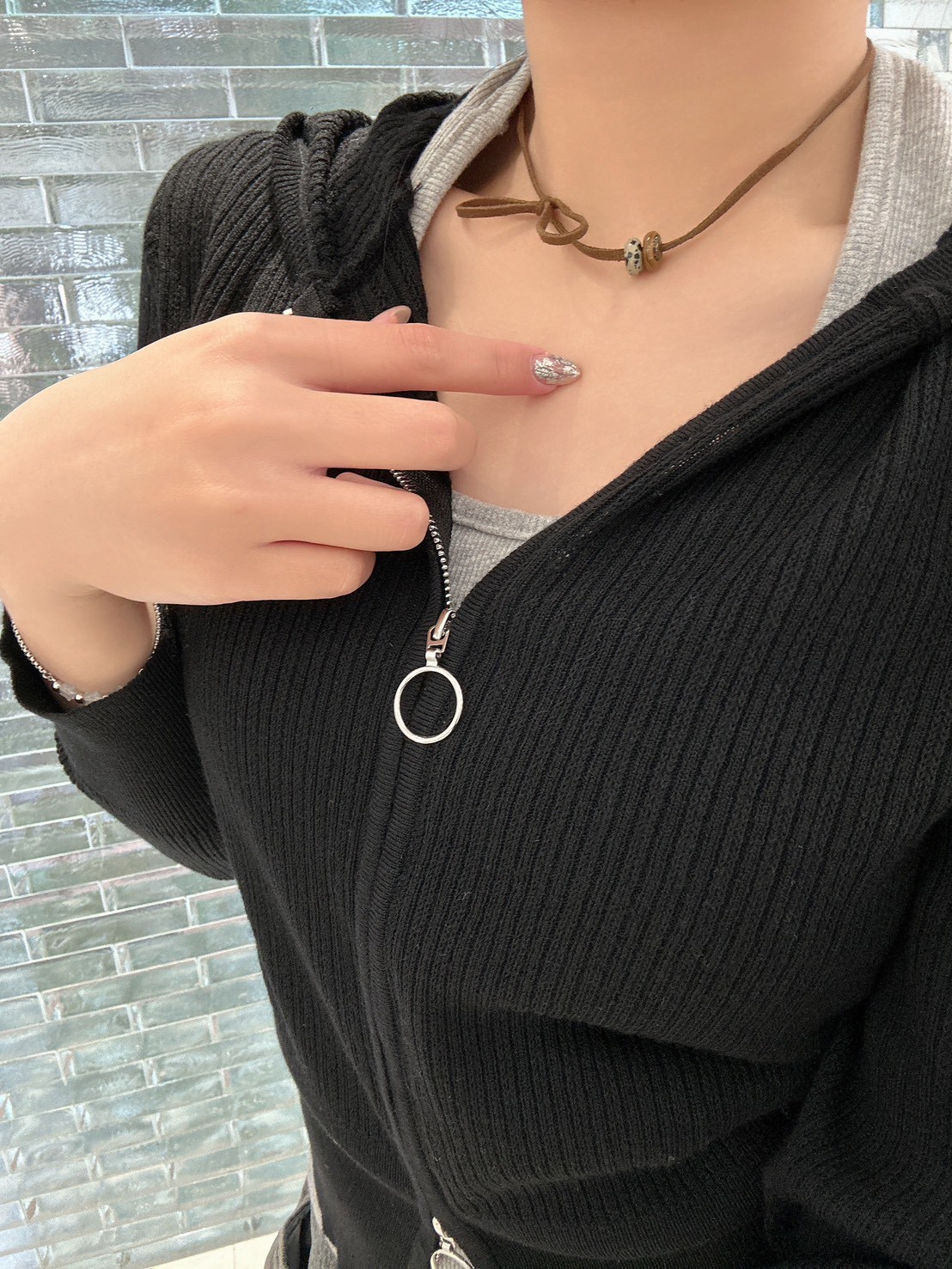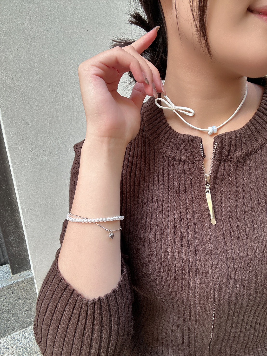 預購側蝴蝶結雙扁珠麂皮繩項鍊