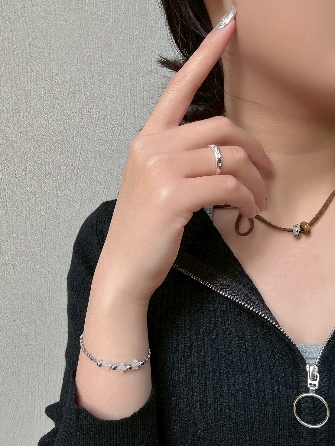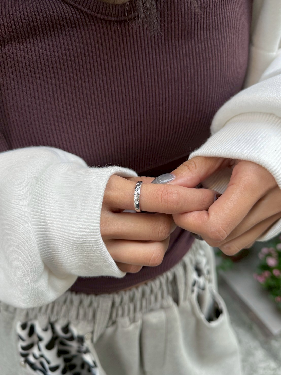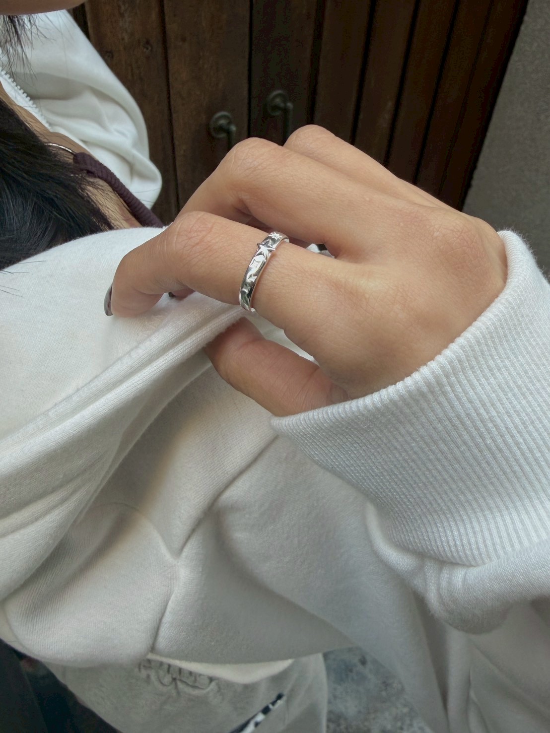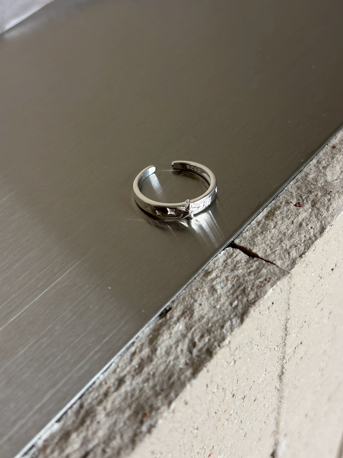 預購純銀 中星凸出 旁芒星開口戒