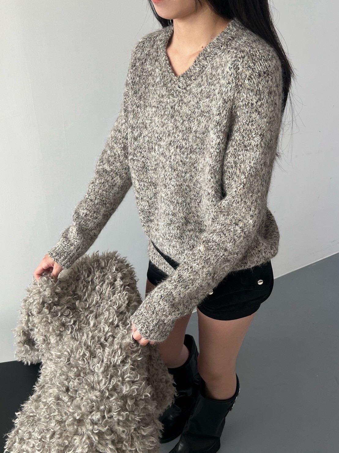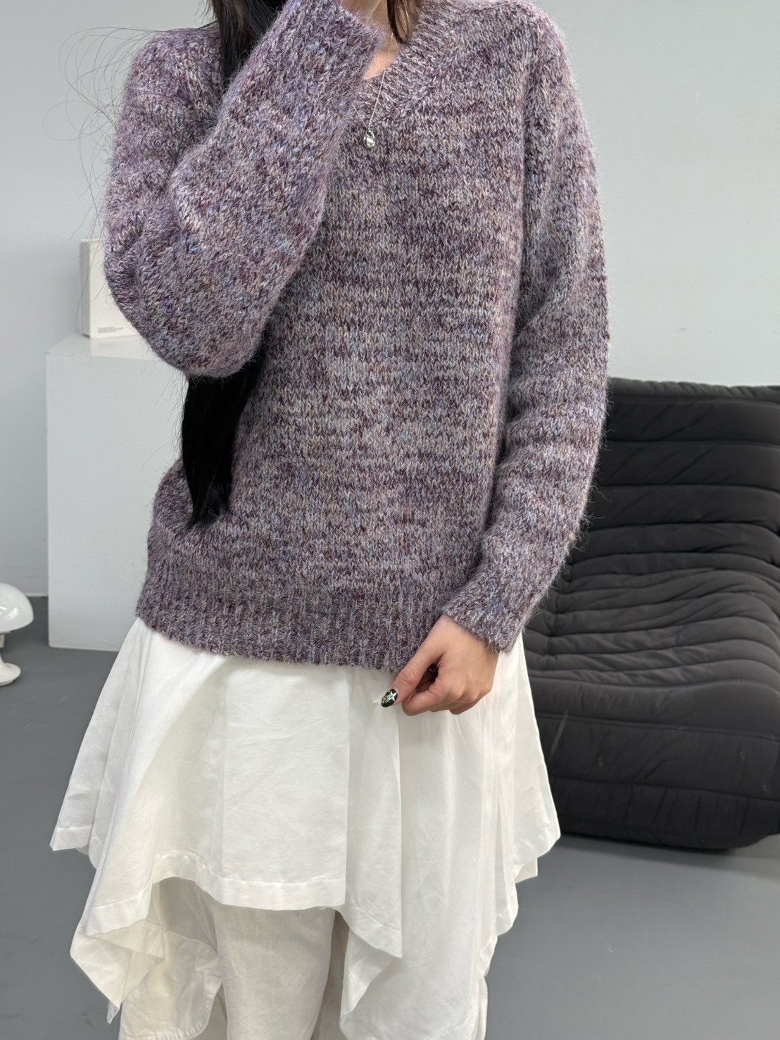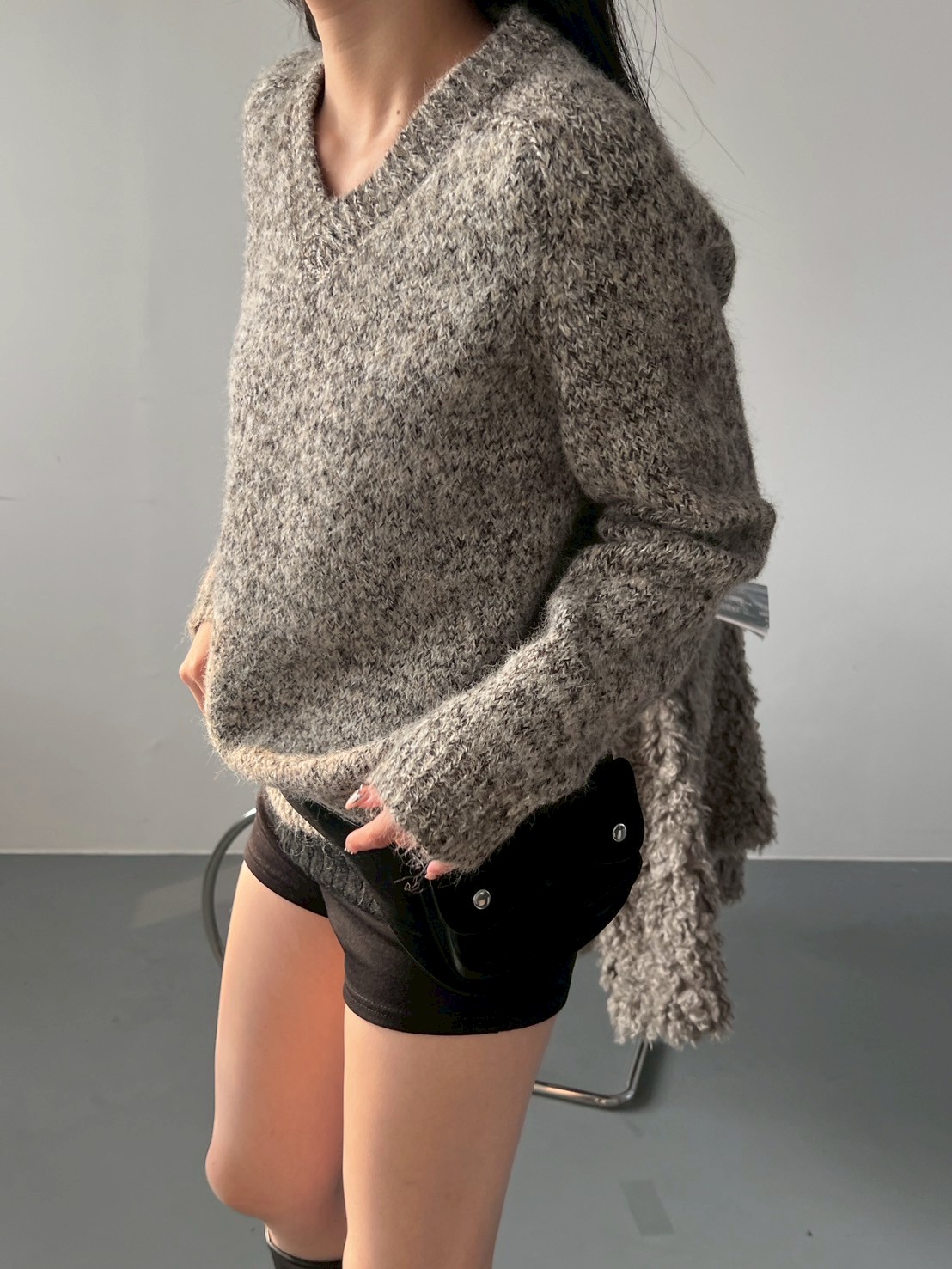 V領混色寬鬆針織上衣