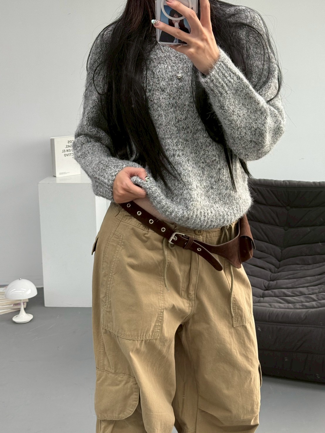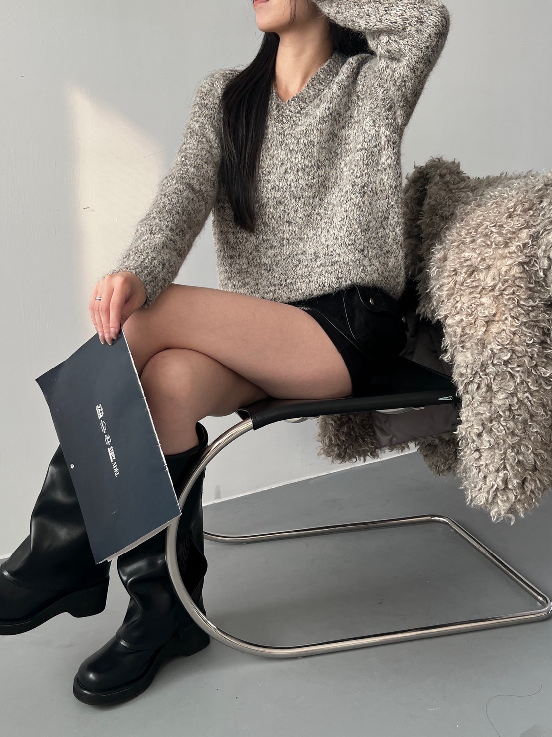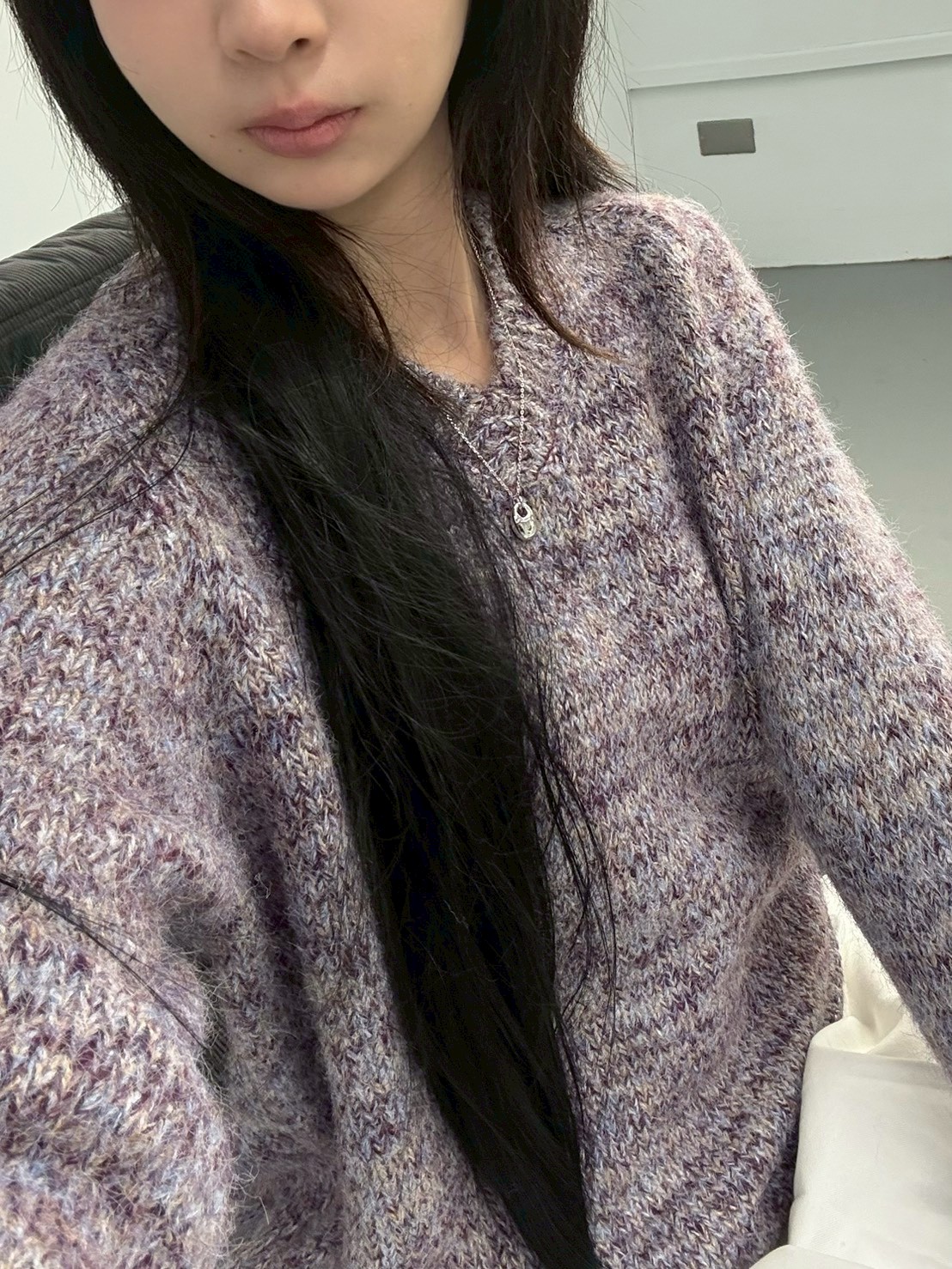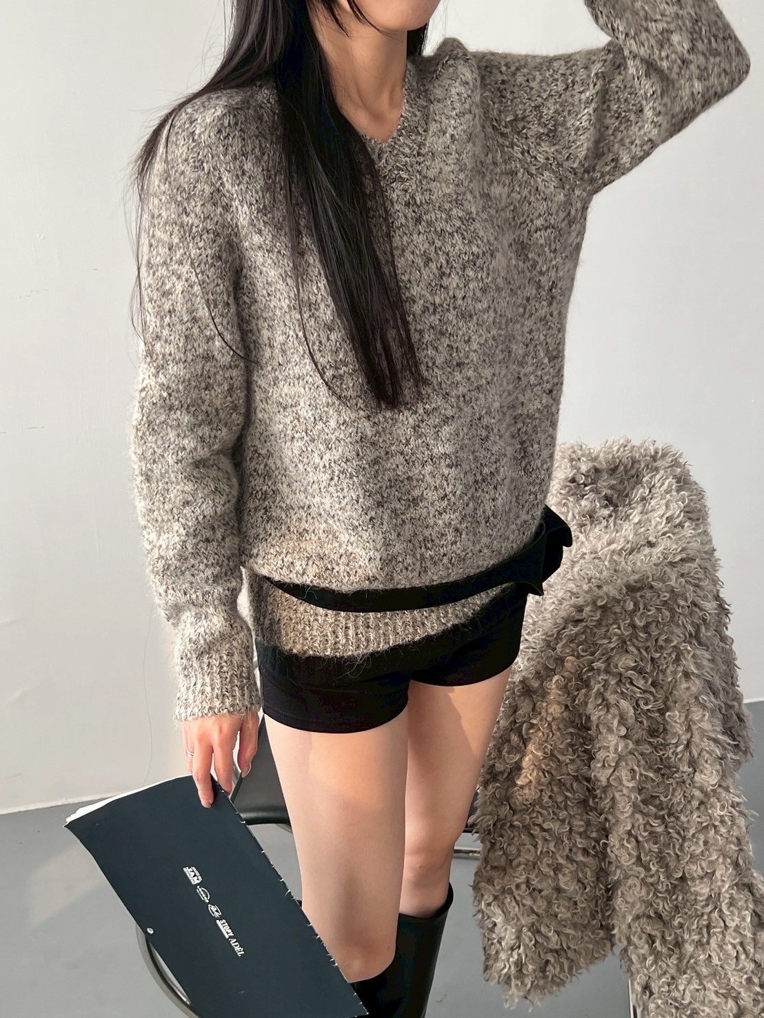 V領混色寬鬆針織上衣