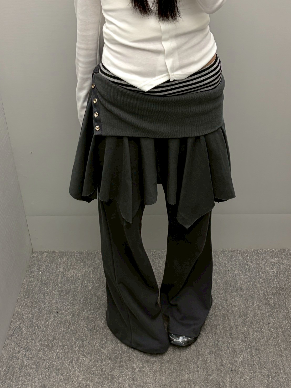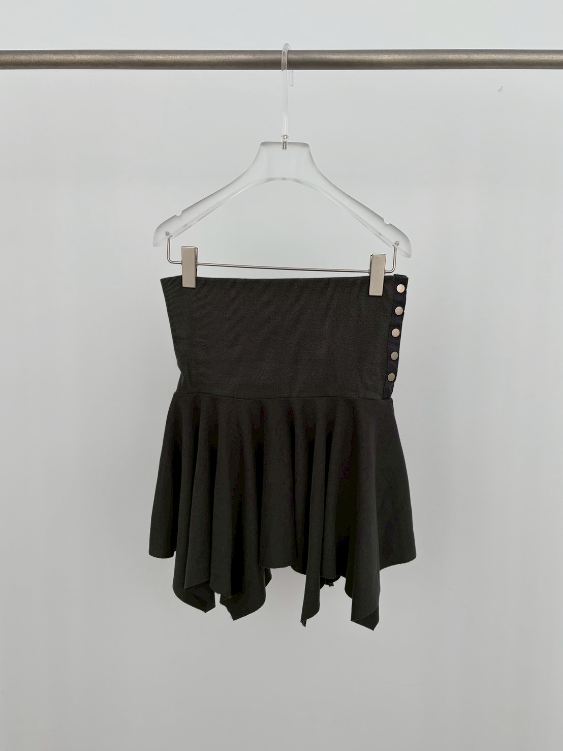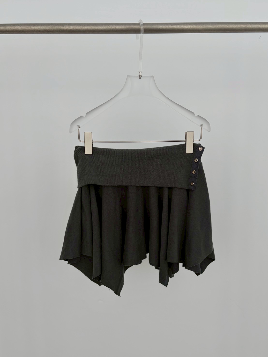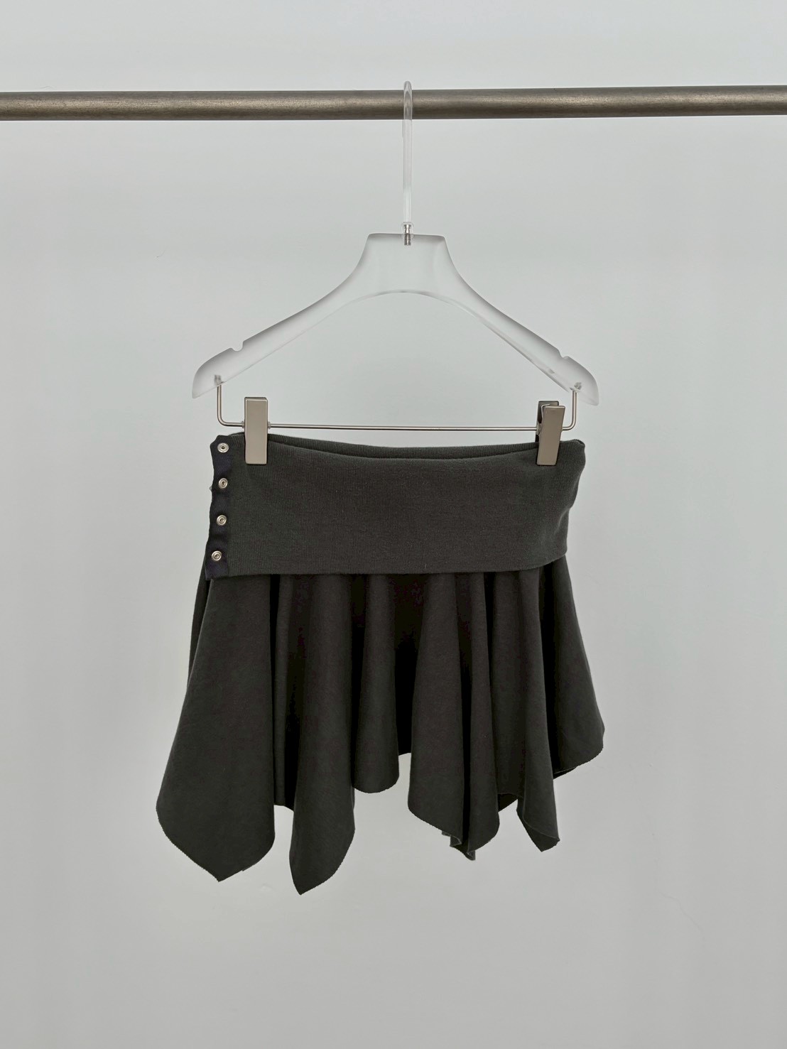 預購銀釦反摺腰不規則下擺短棉裙