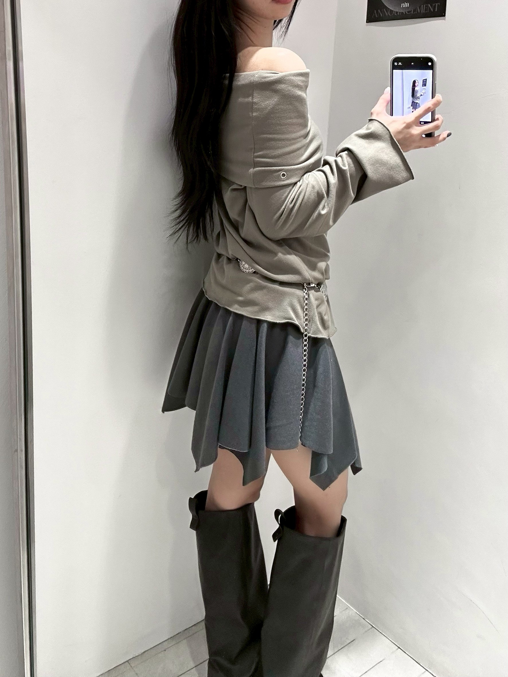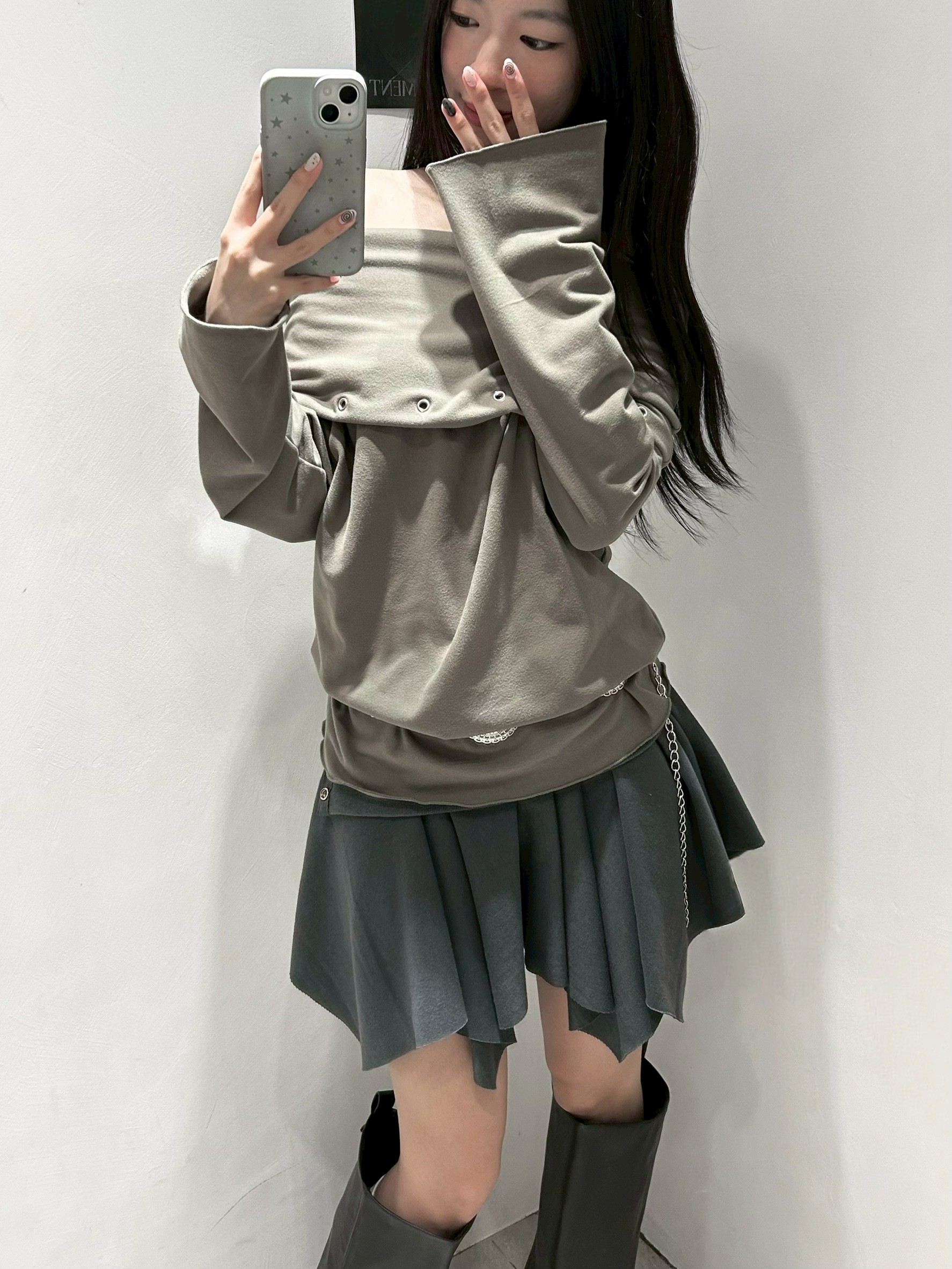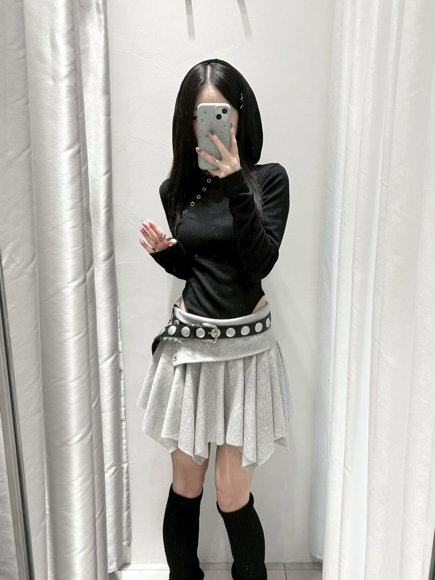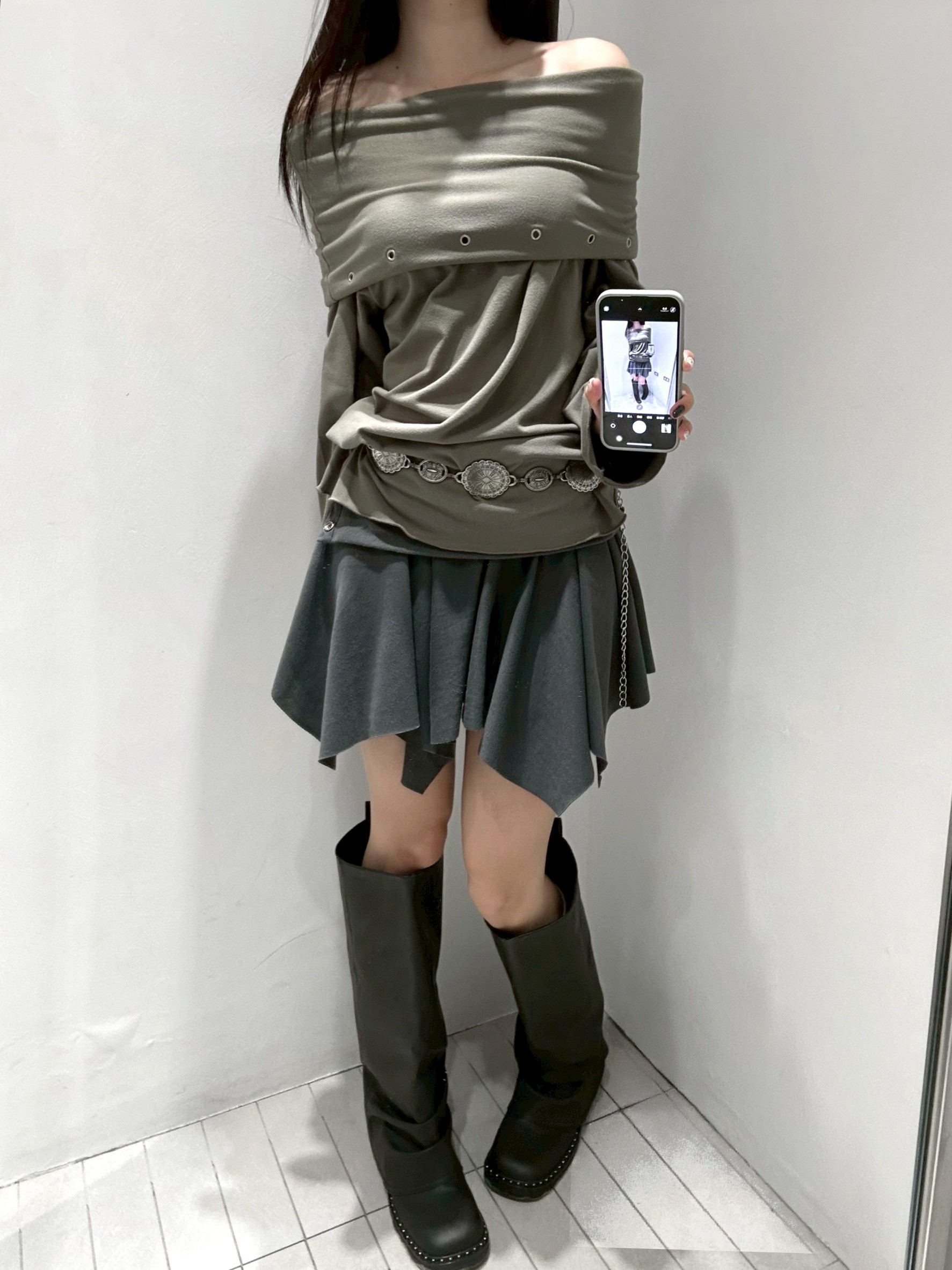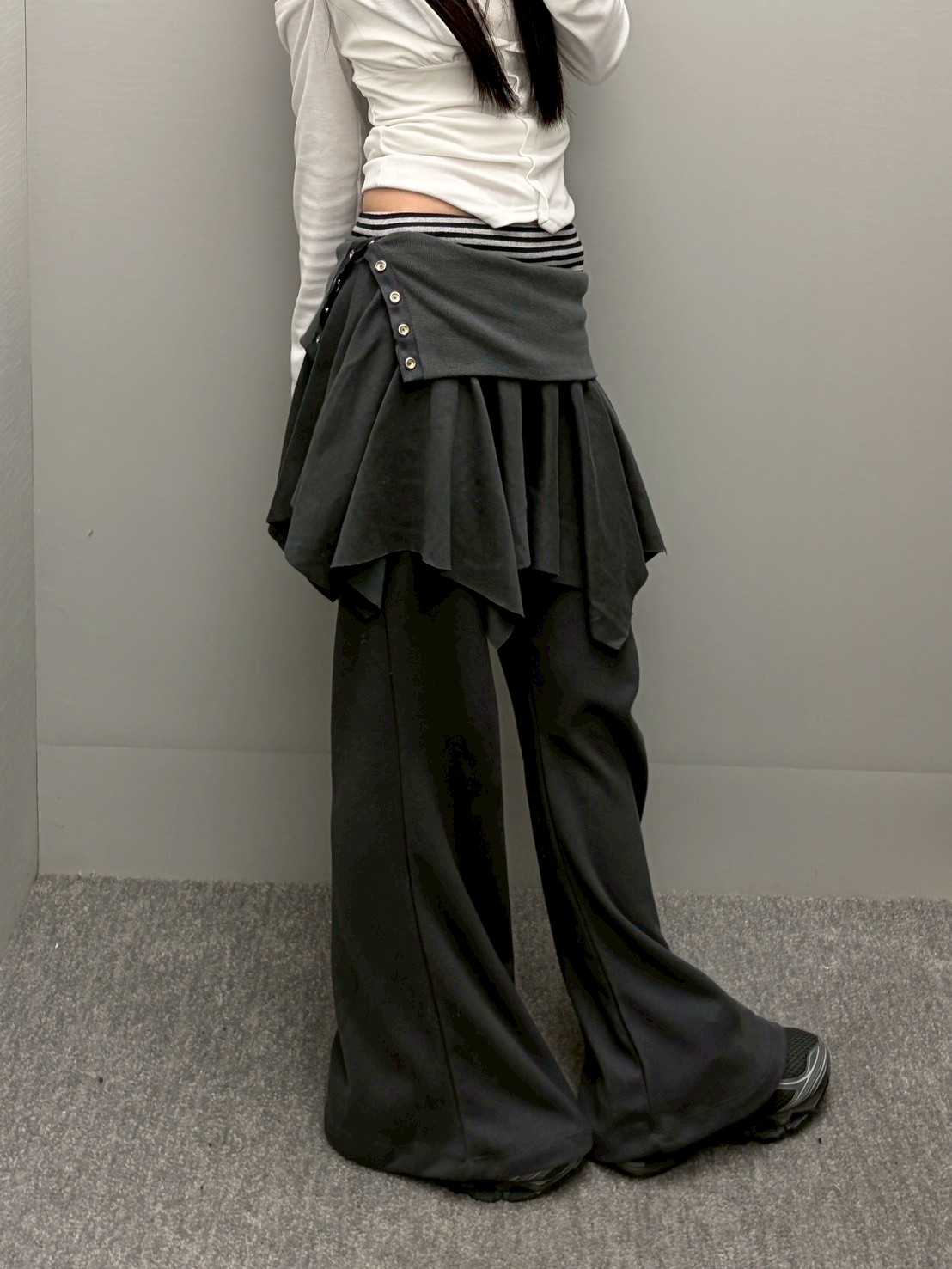 預購銀釦反摺腰不規則下擺短棉裙