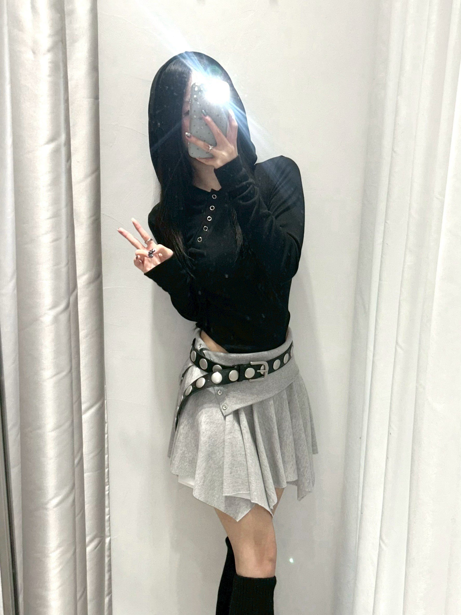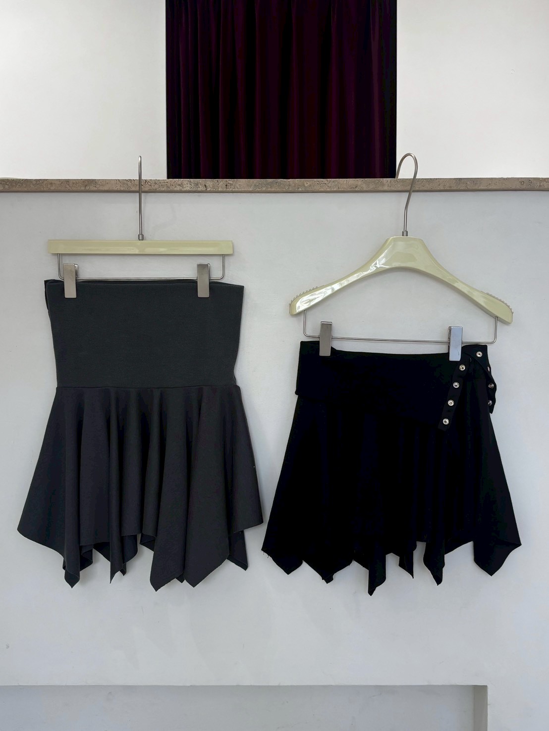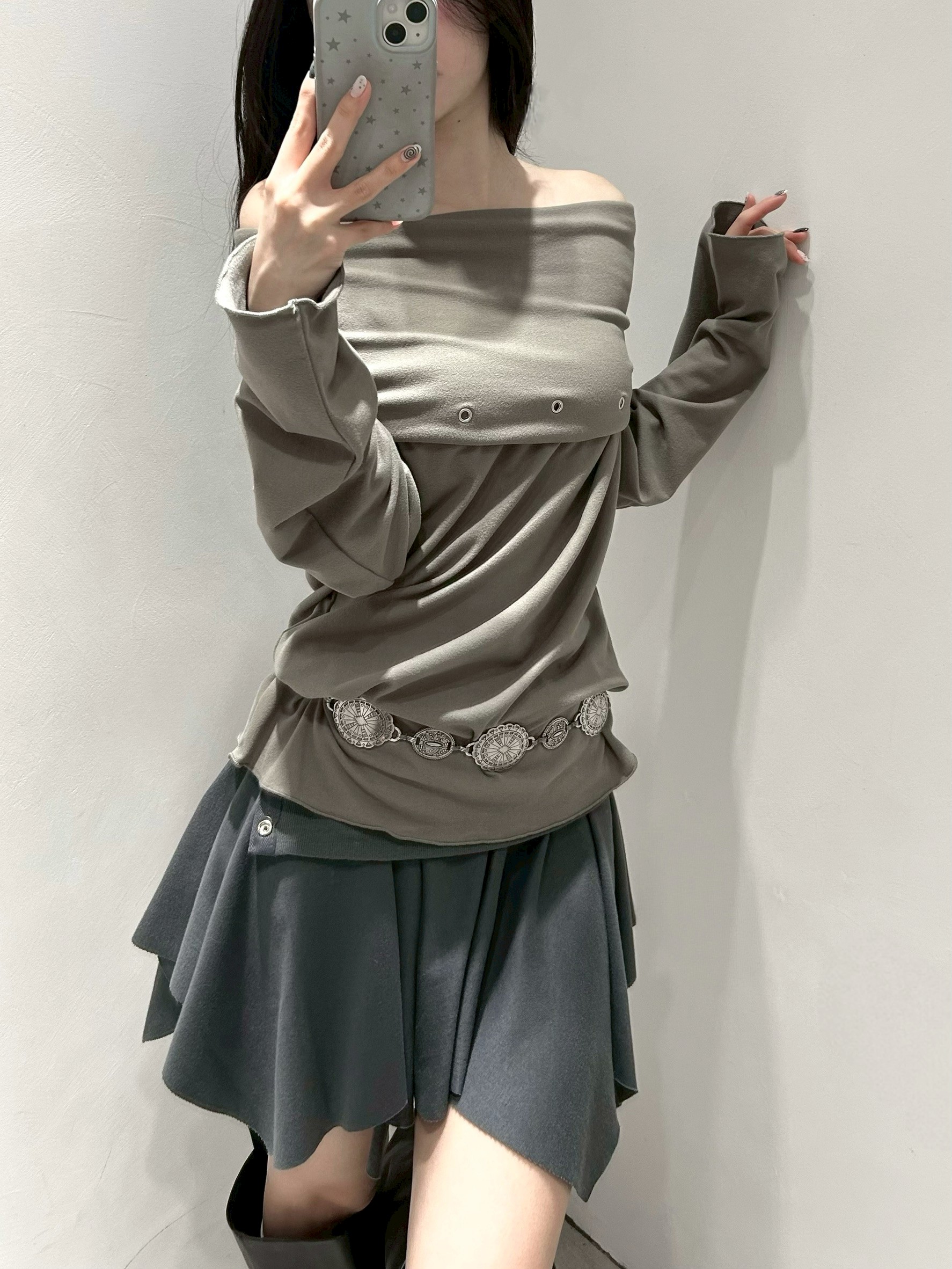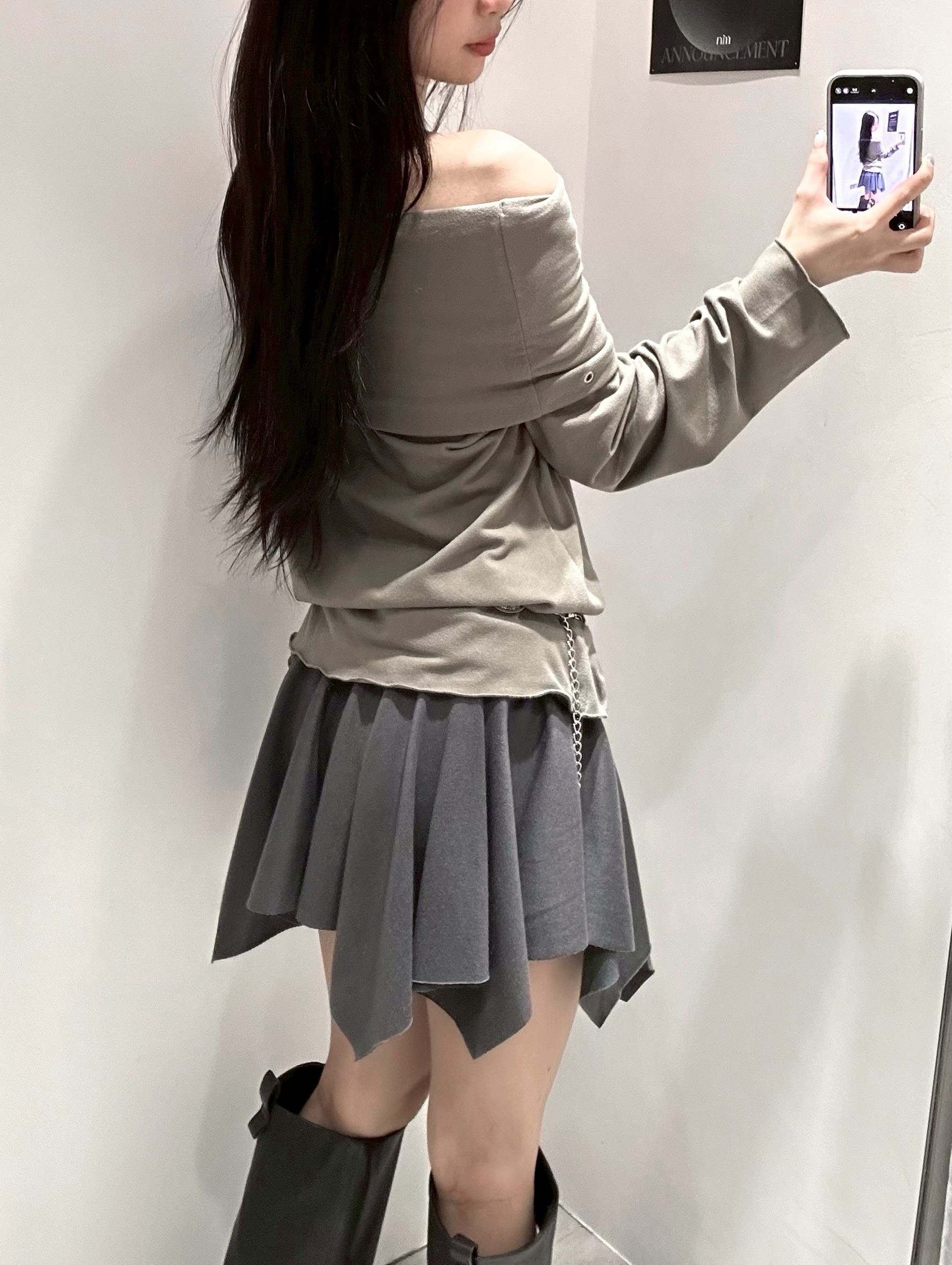 預購銀釦反摺腰不規則下擺短棉裙