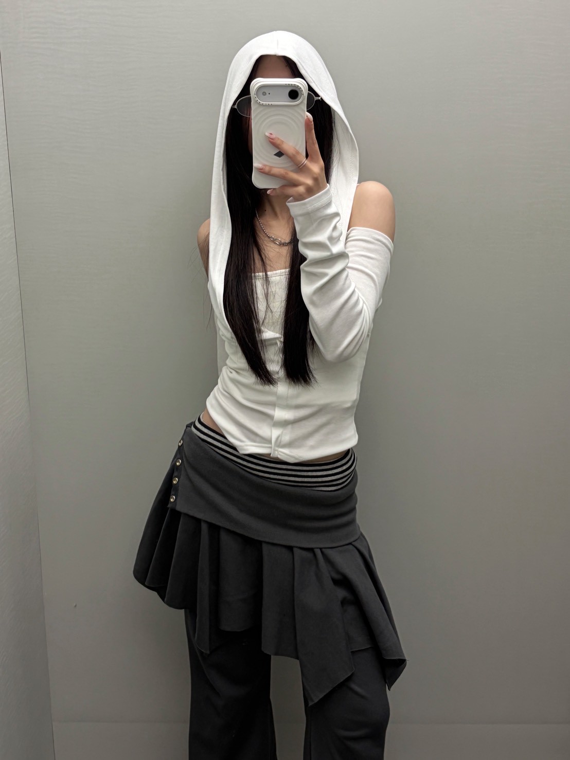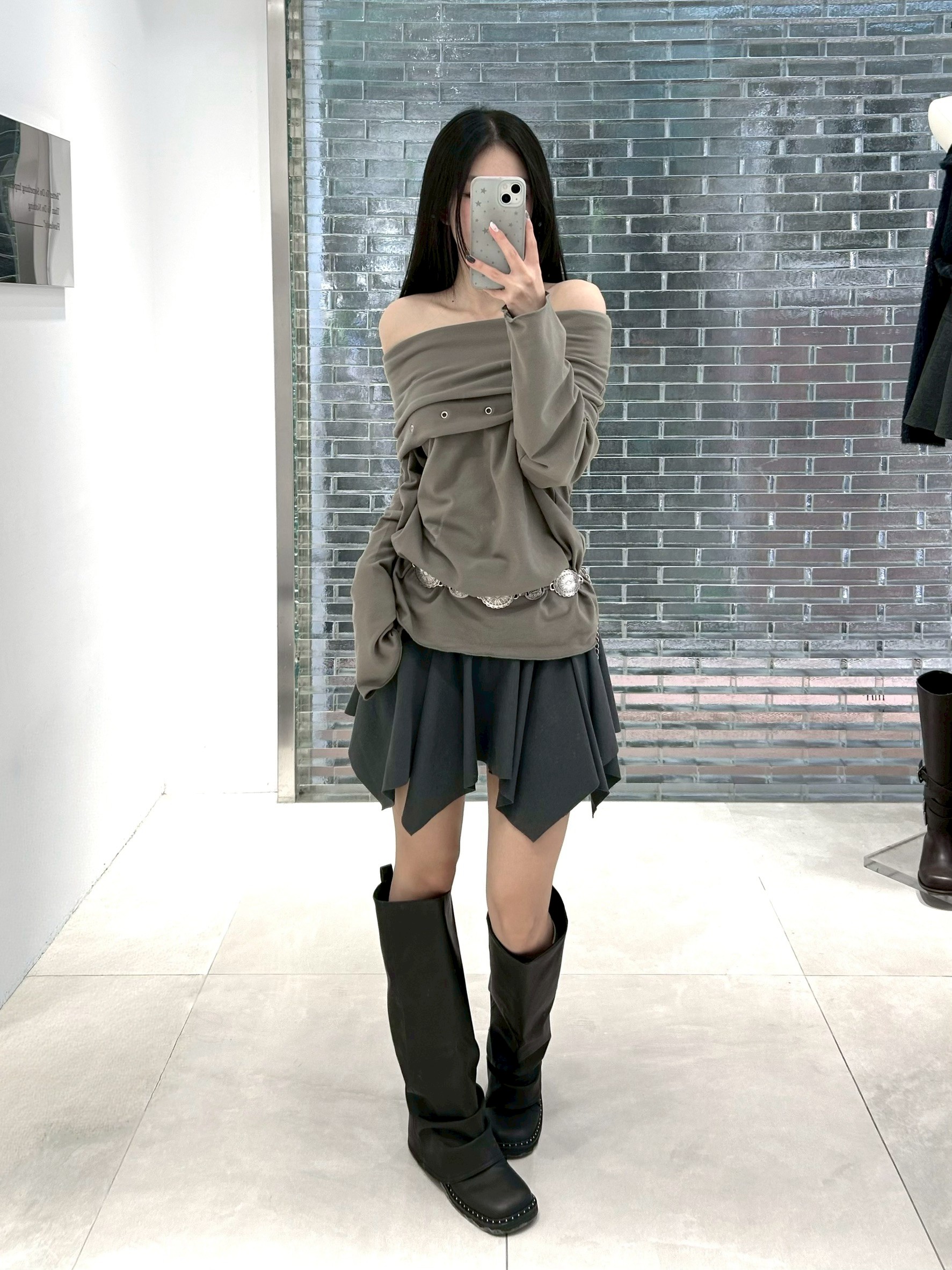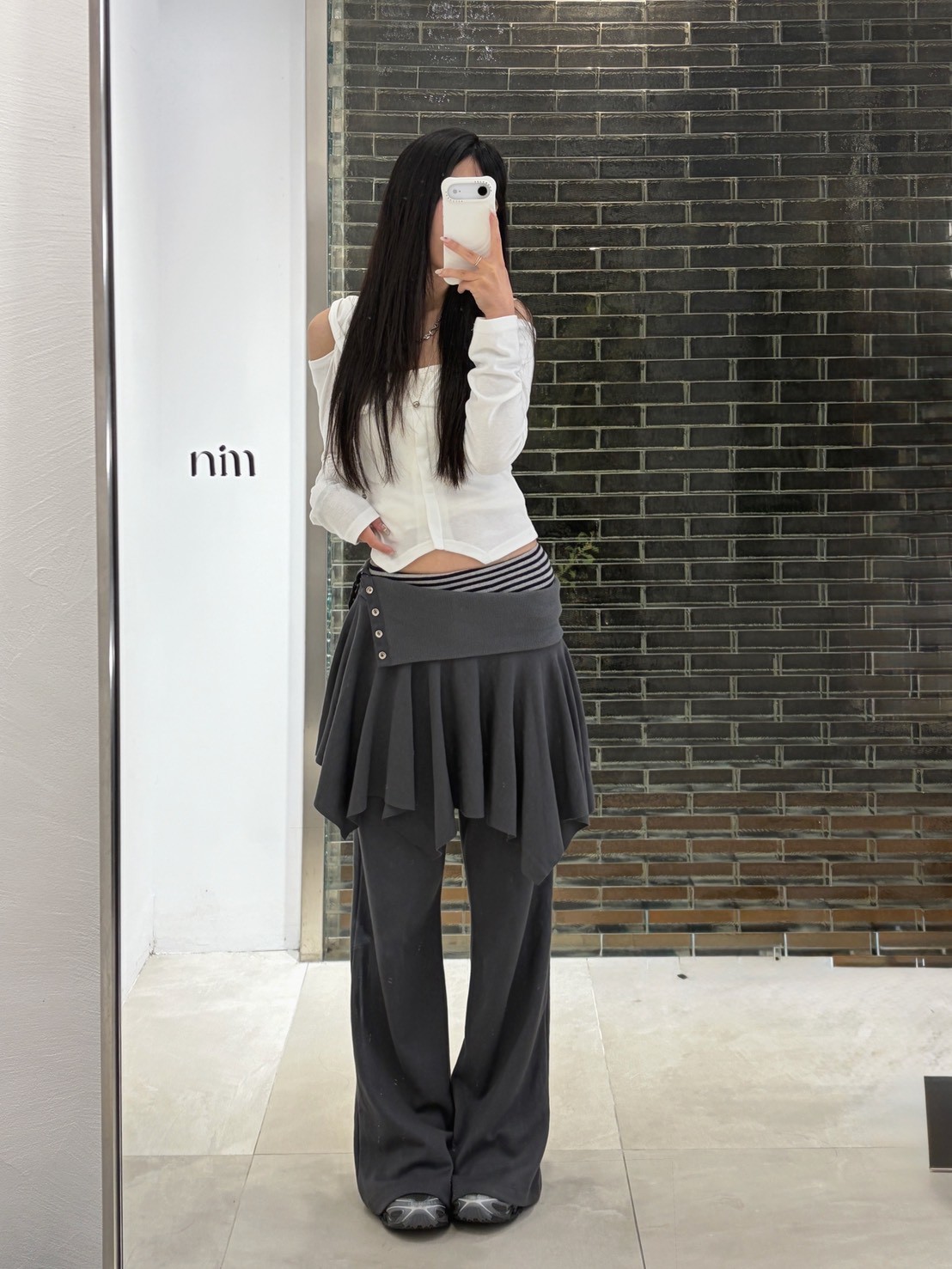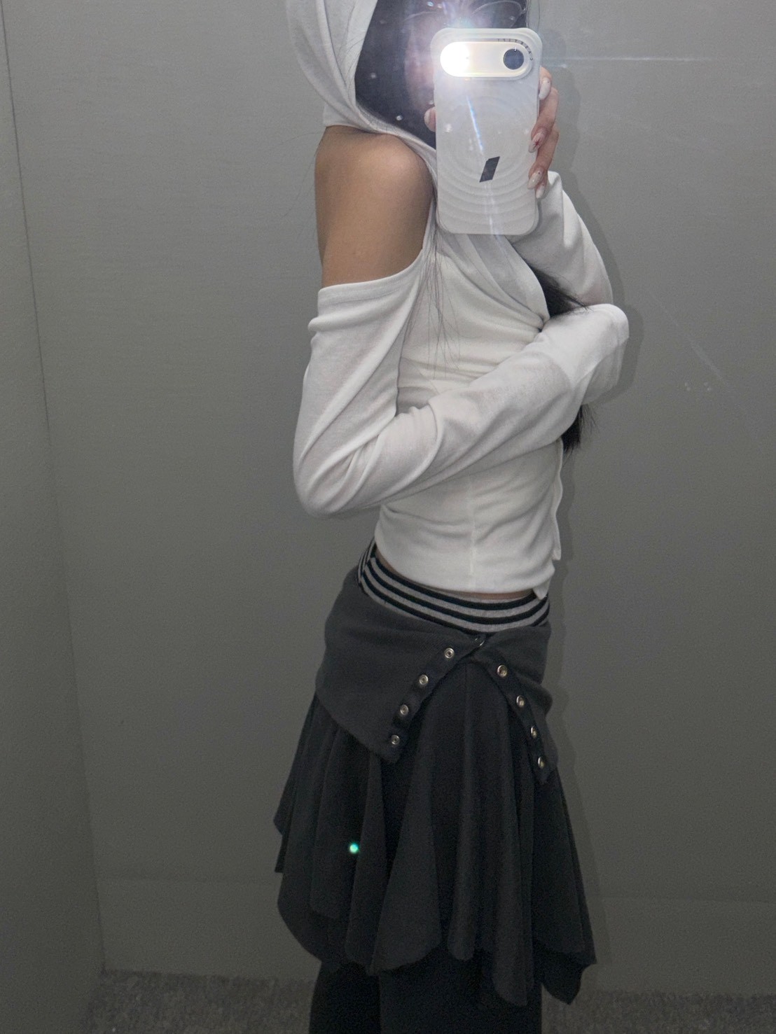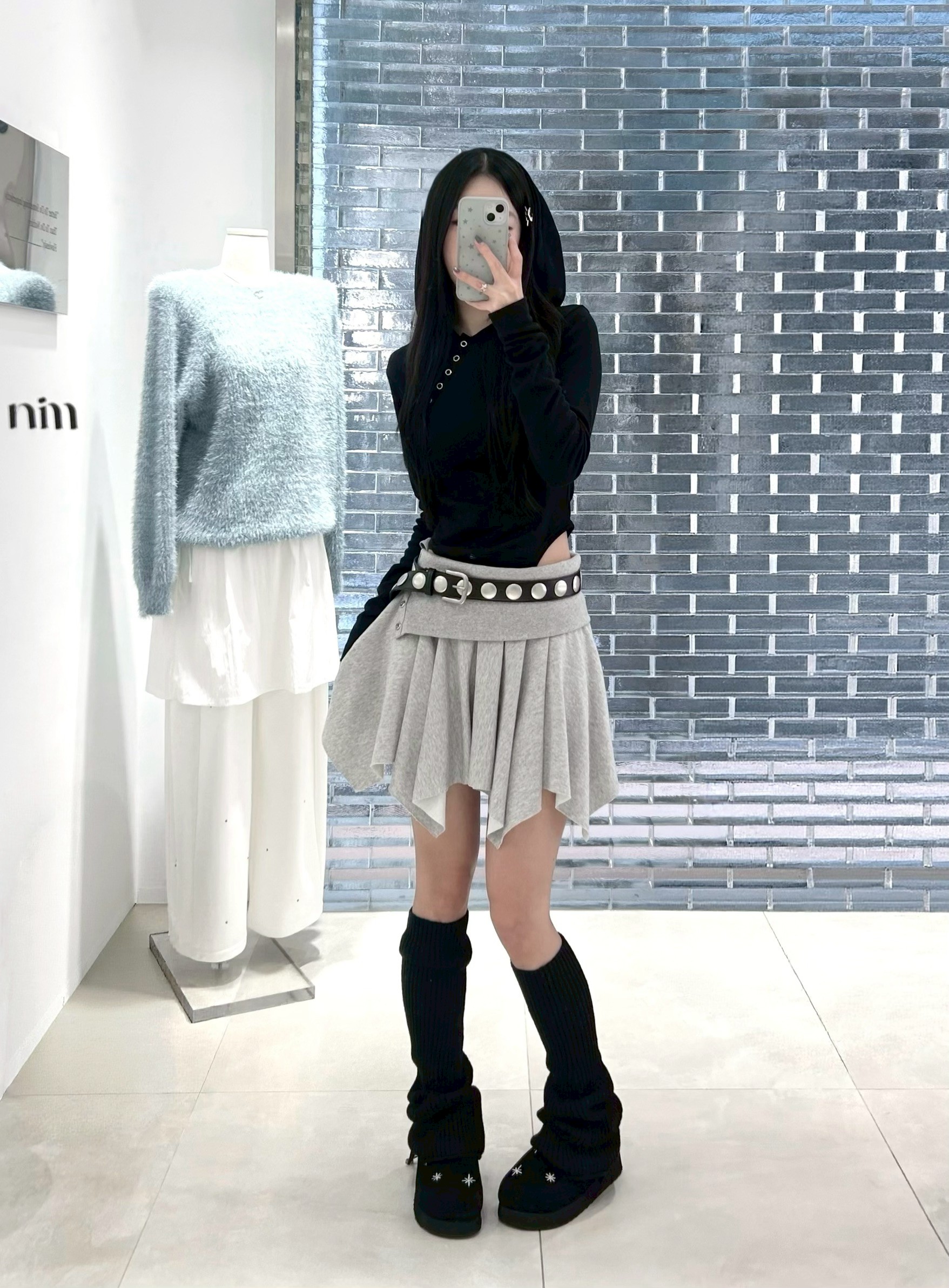 預購銀釦反摺腰不規則下擺短棉裙