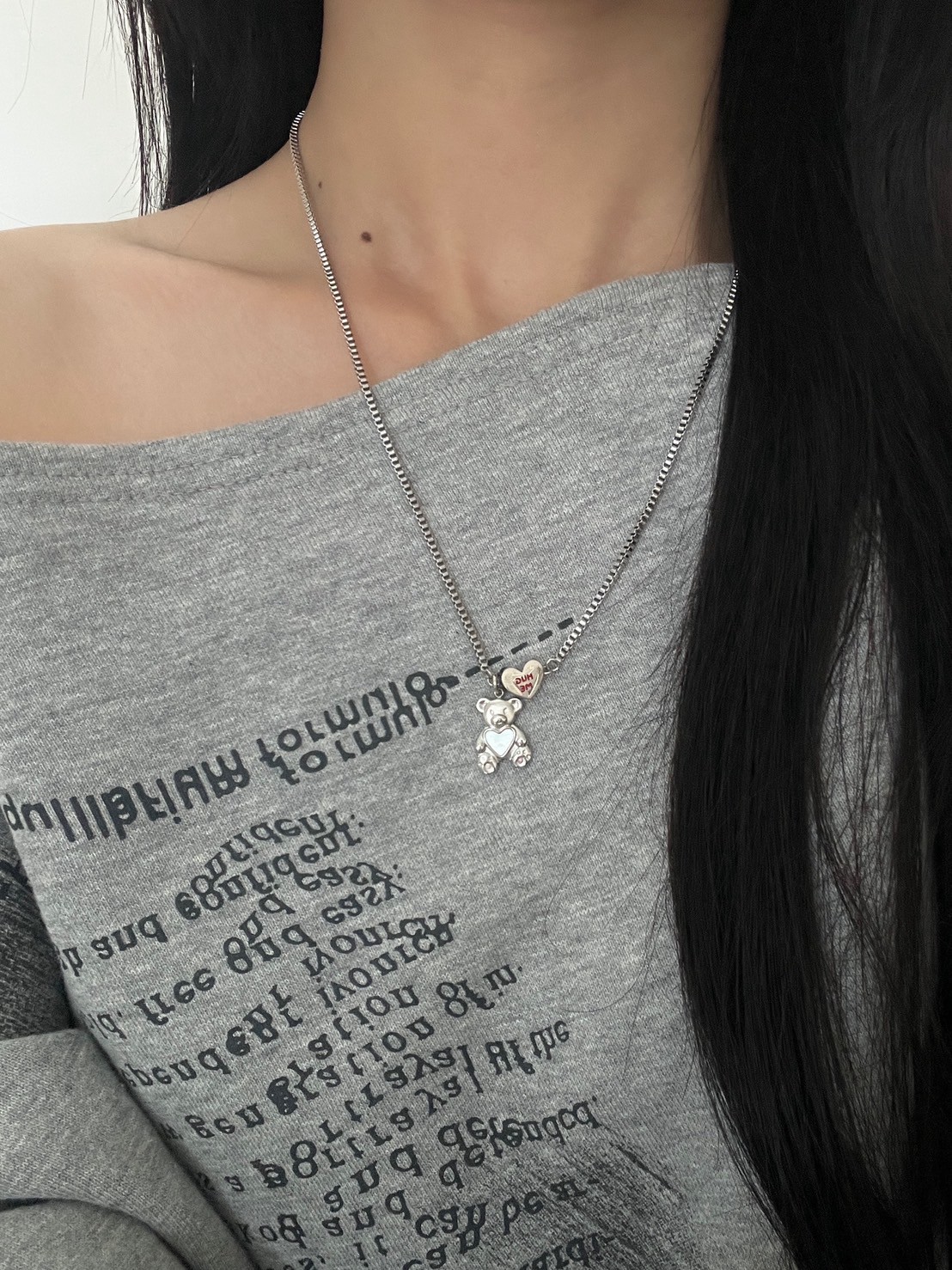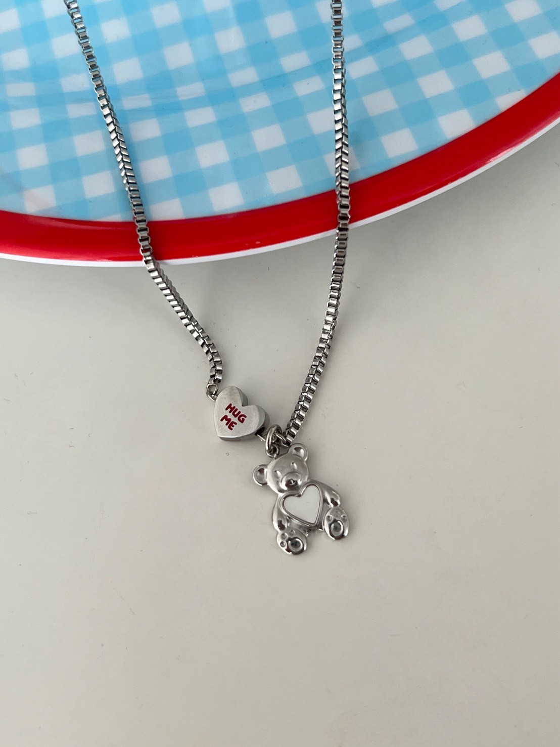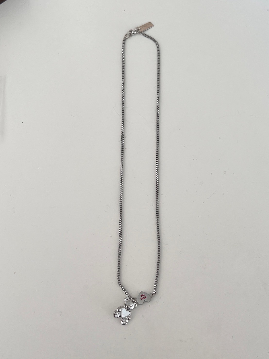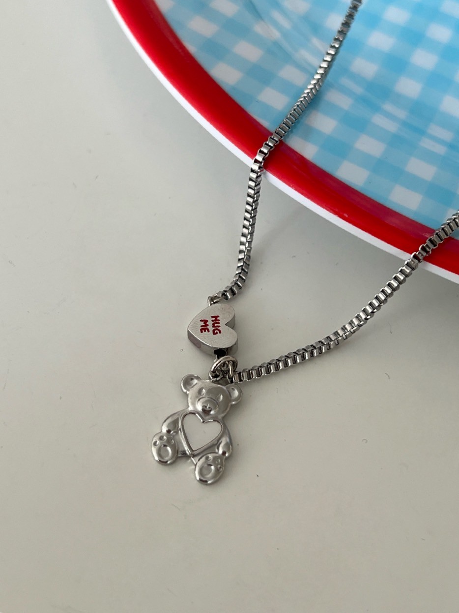 正方細密鎖鏈HUGT ME愛心熊吊飾項鍊