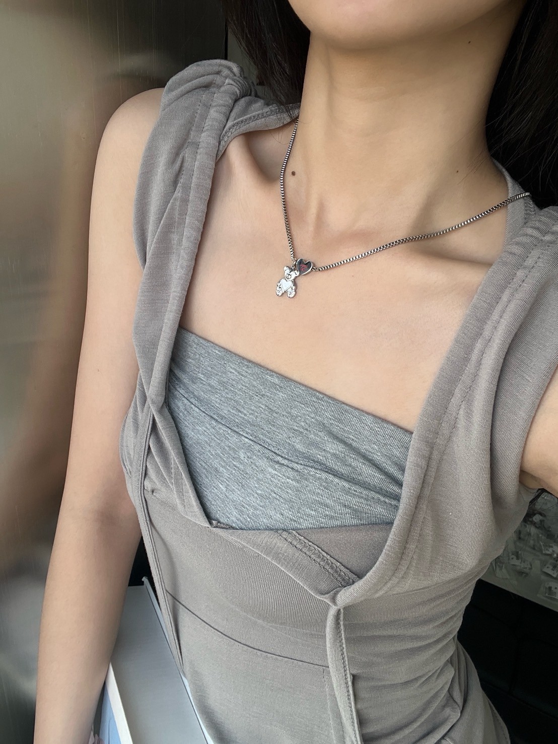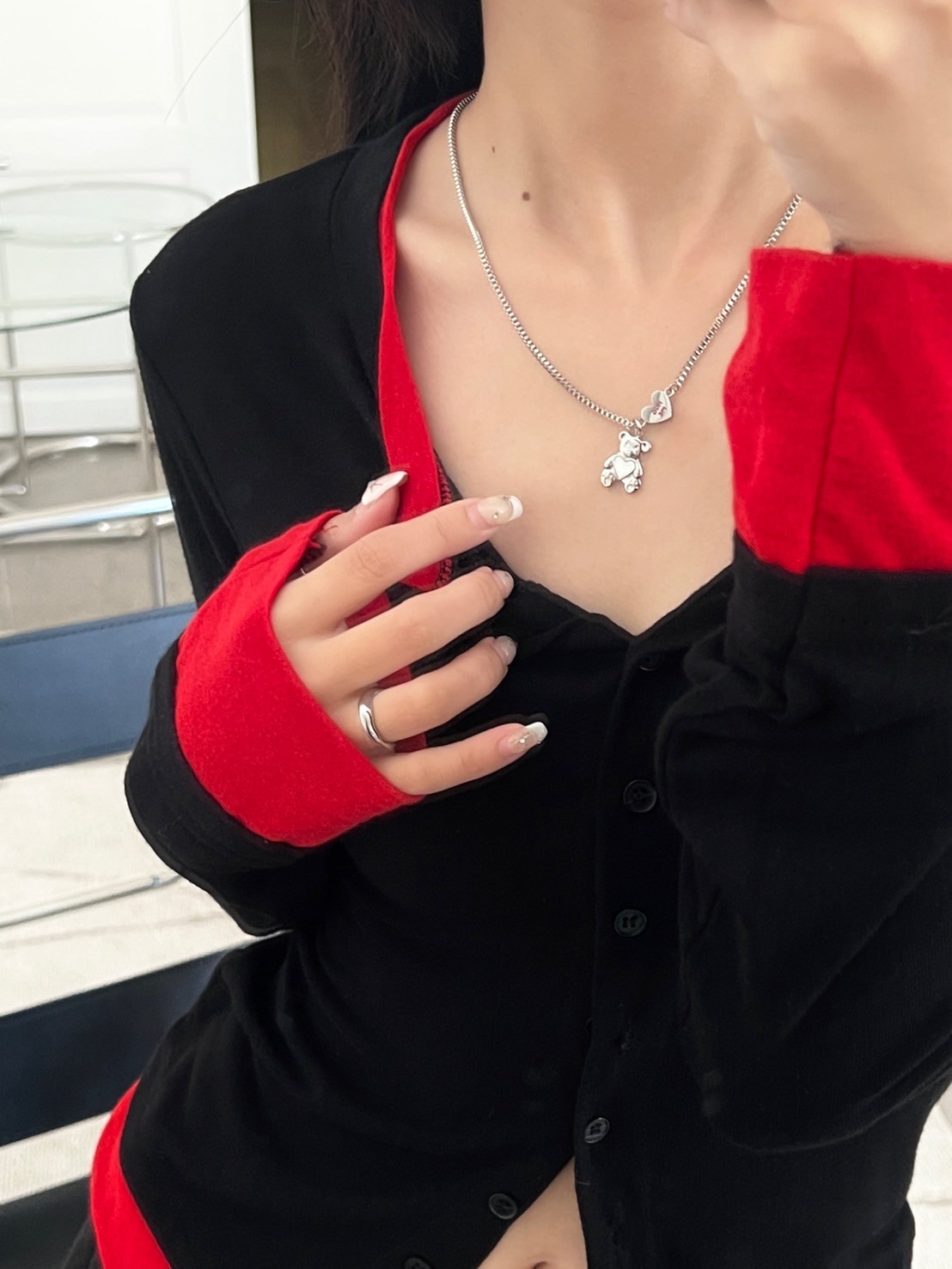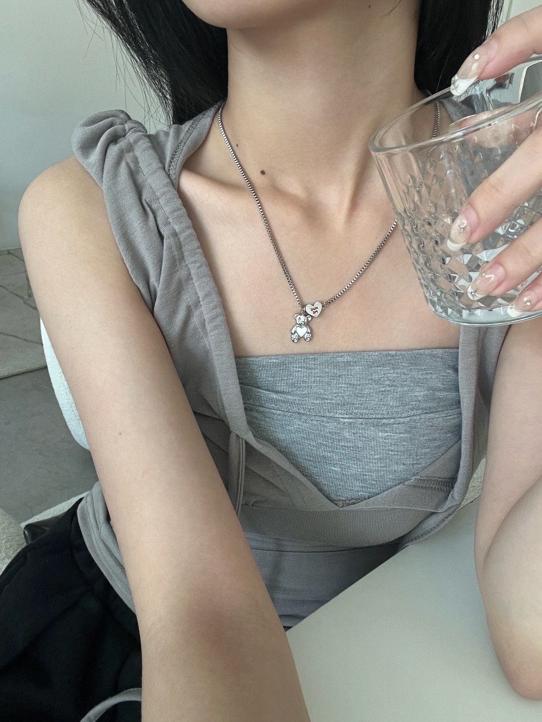 正方細密鎖鏈HUGT ME愛心熊吊飾項鍊