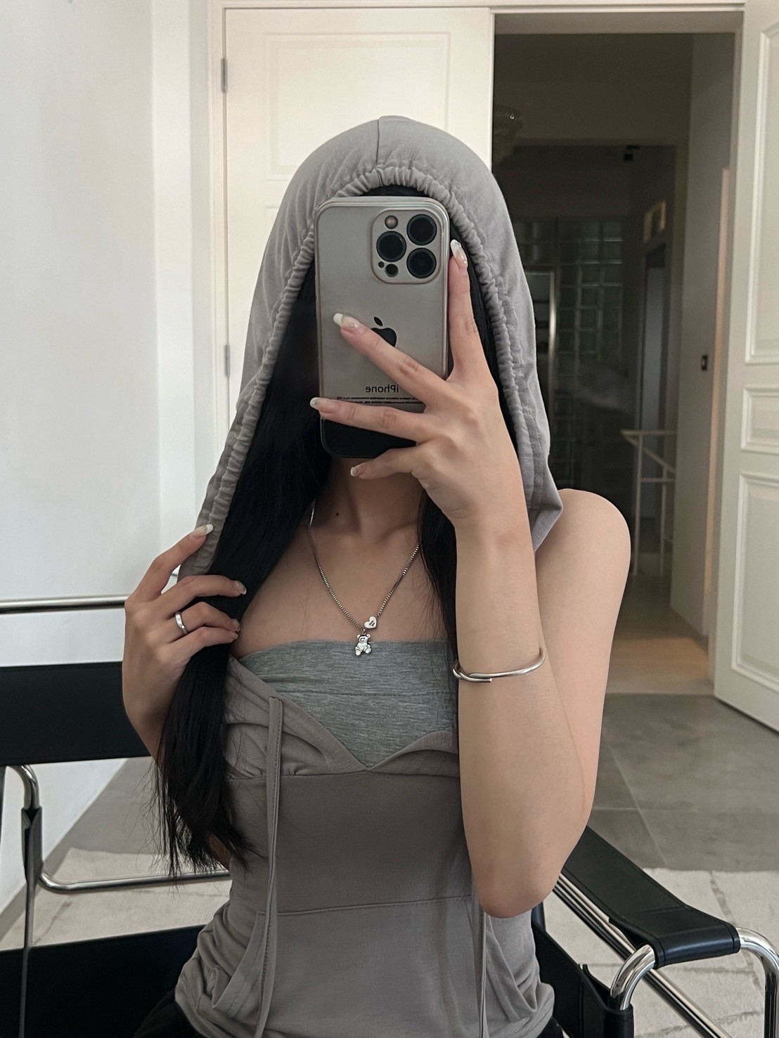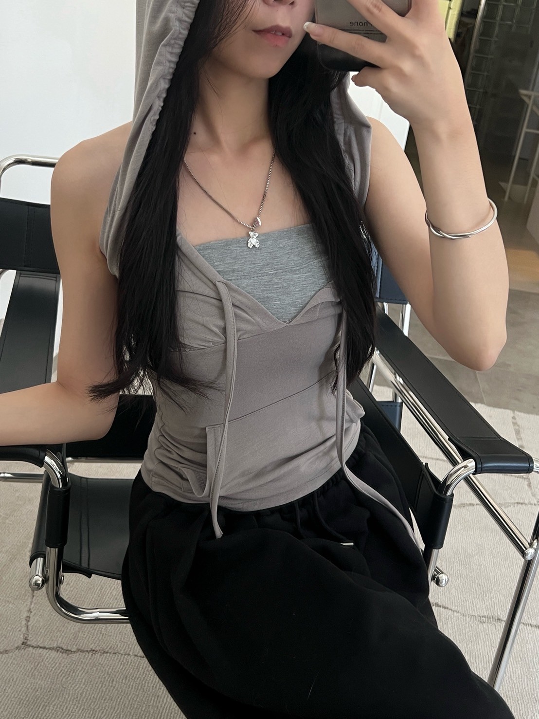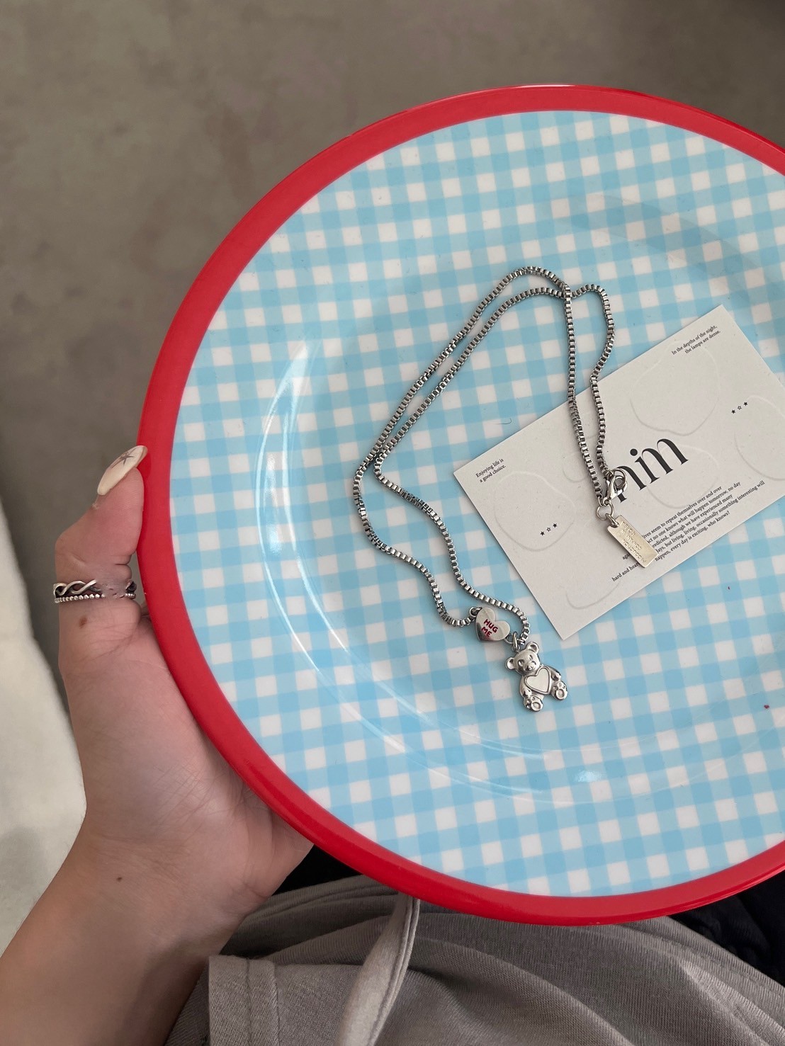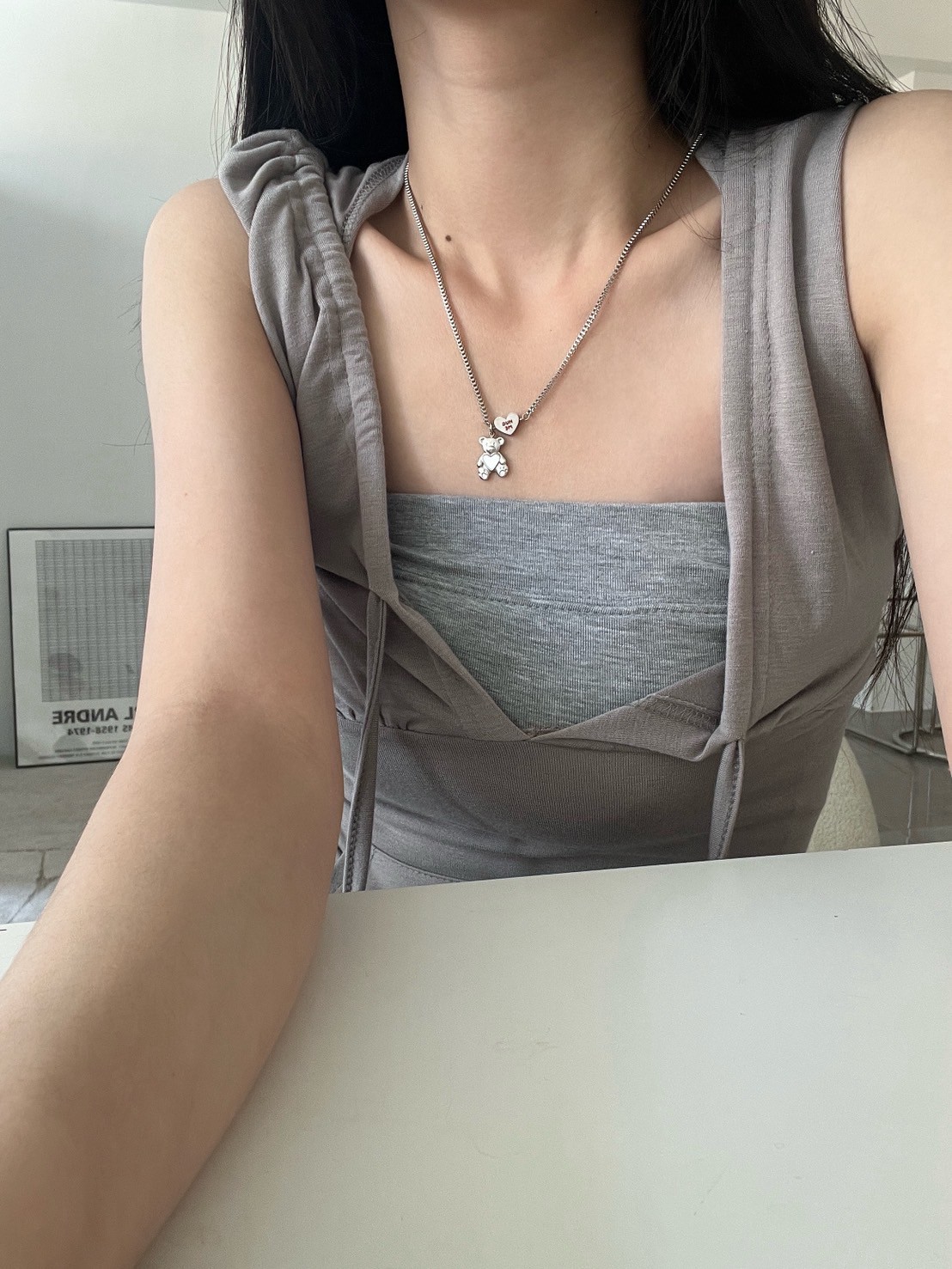 正方細密鎖鏈HUGT ME愛心熊吊飾項鍊