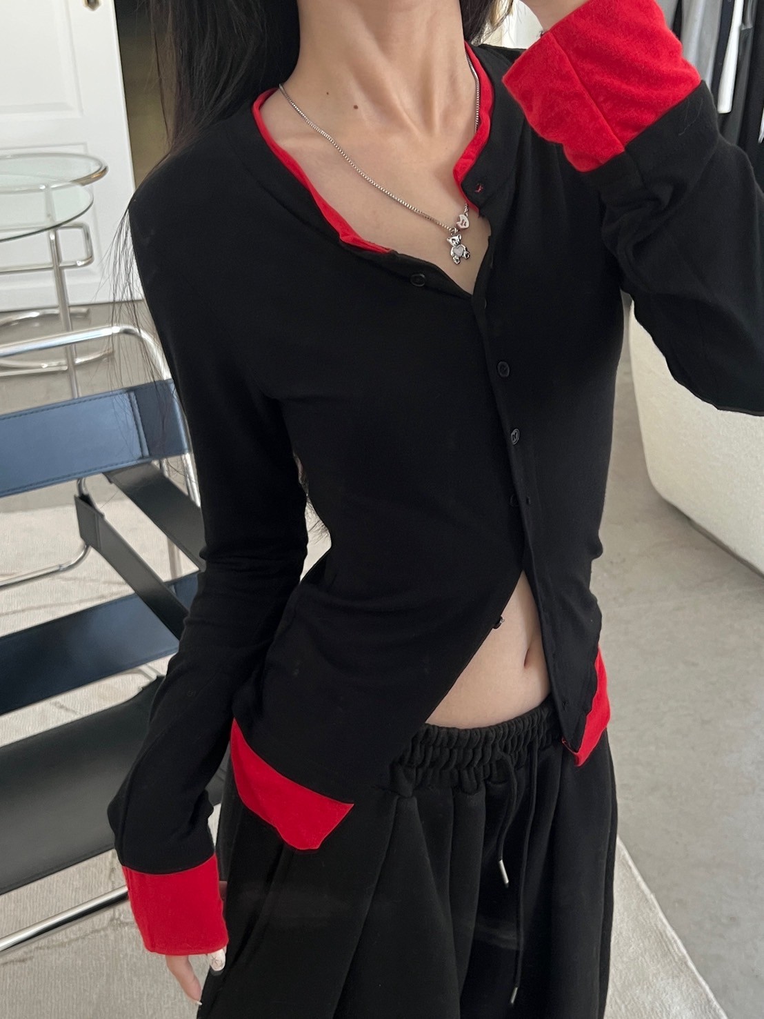 2)未開釦眼、衣服線頭