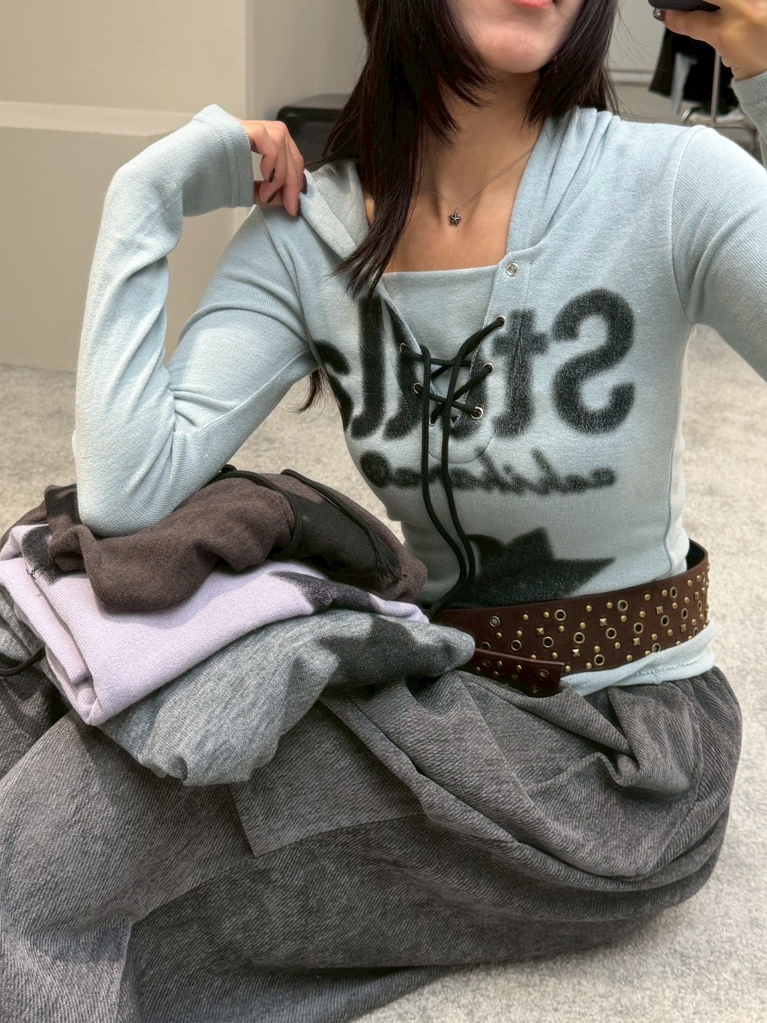 預購燻黑半立體星細項鍊