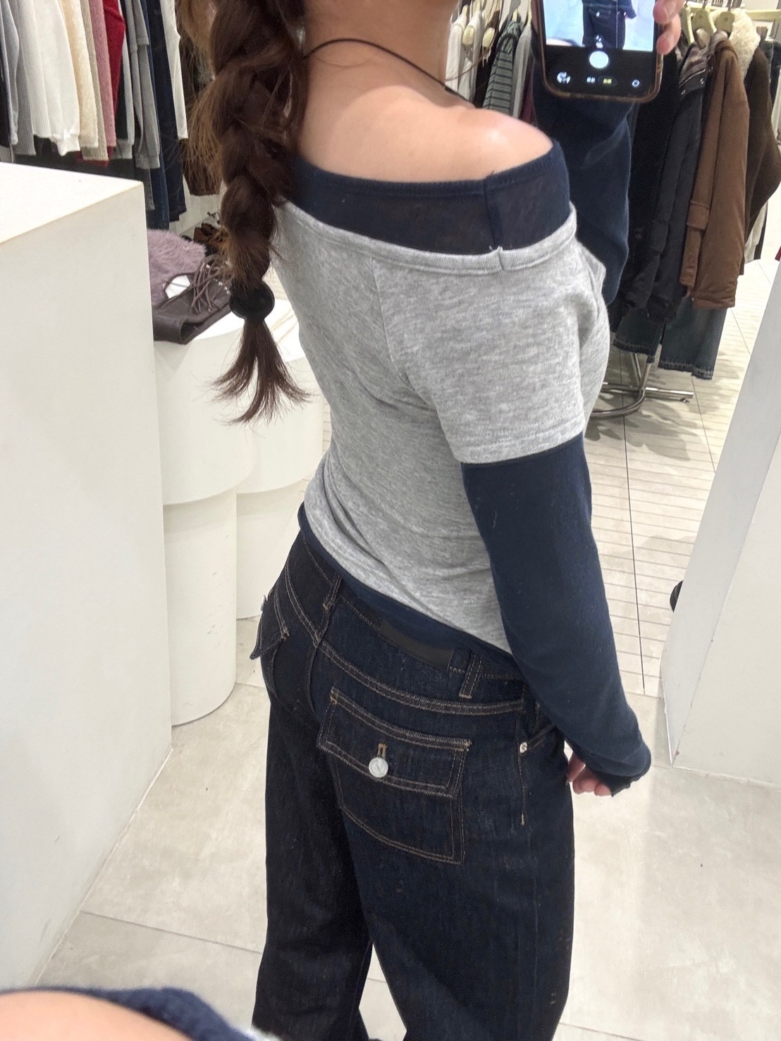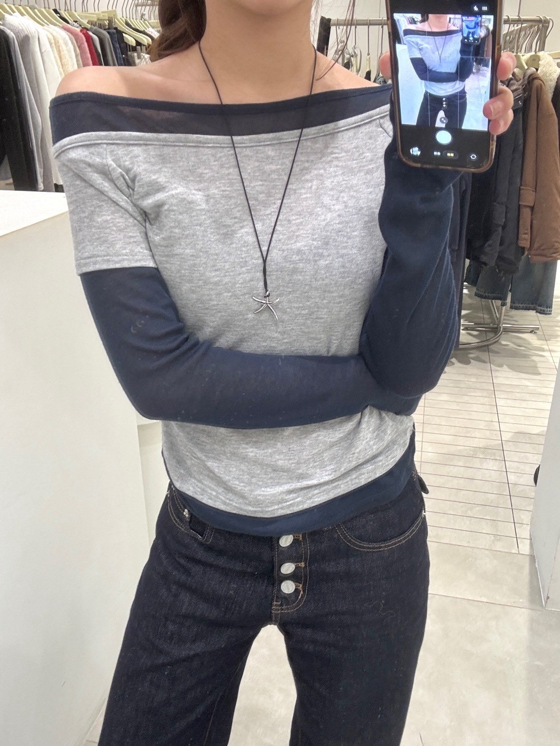 2)未開釦眼、衣服線頭