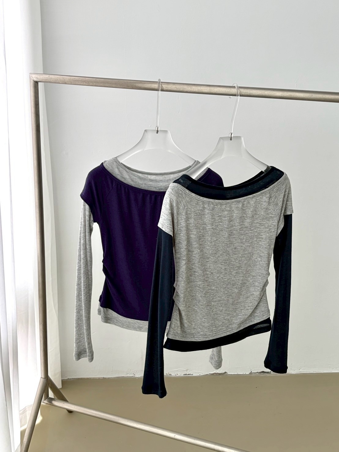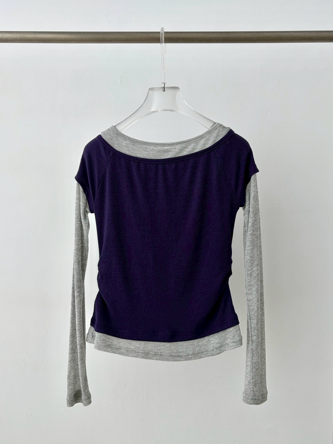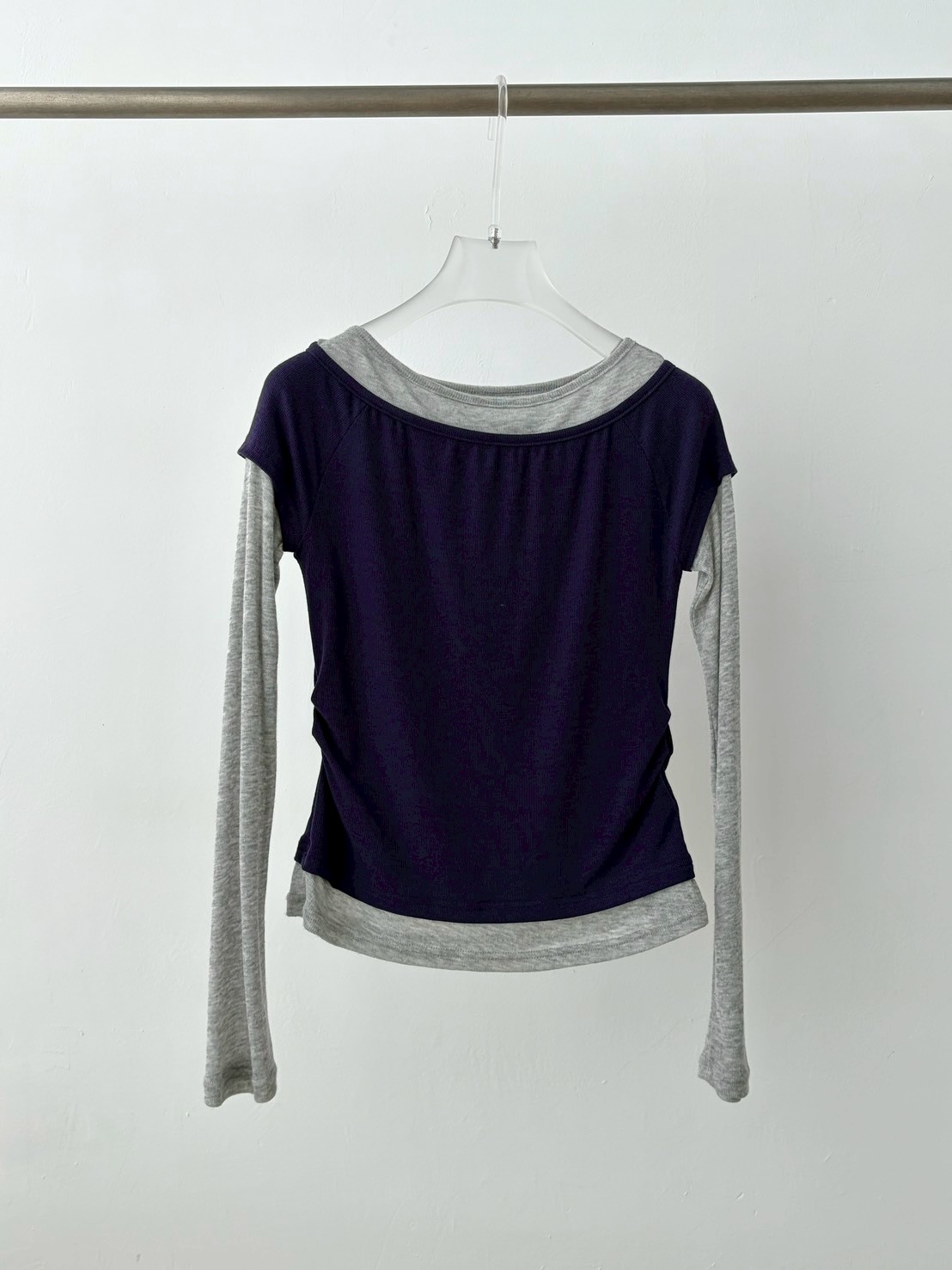 預購腰抓皺微透跳色假2件上衣