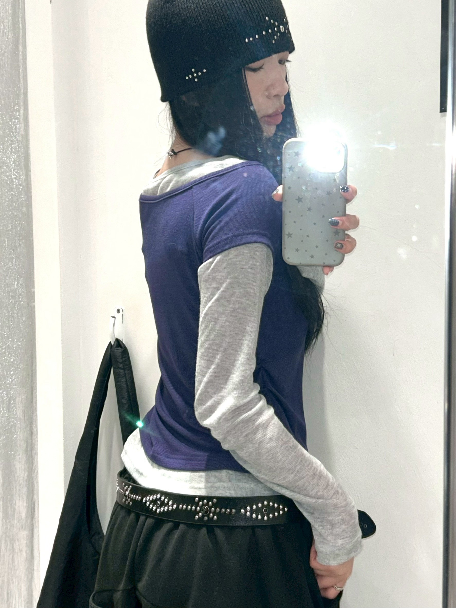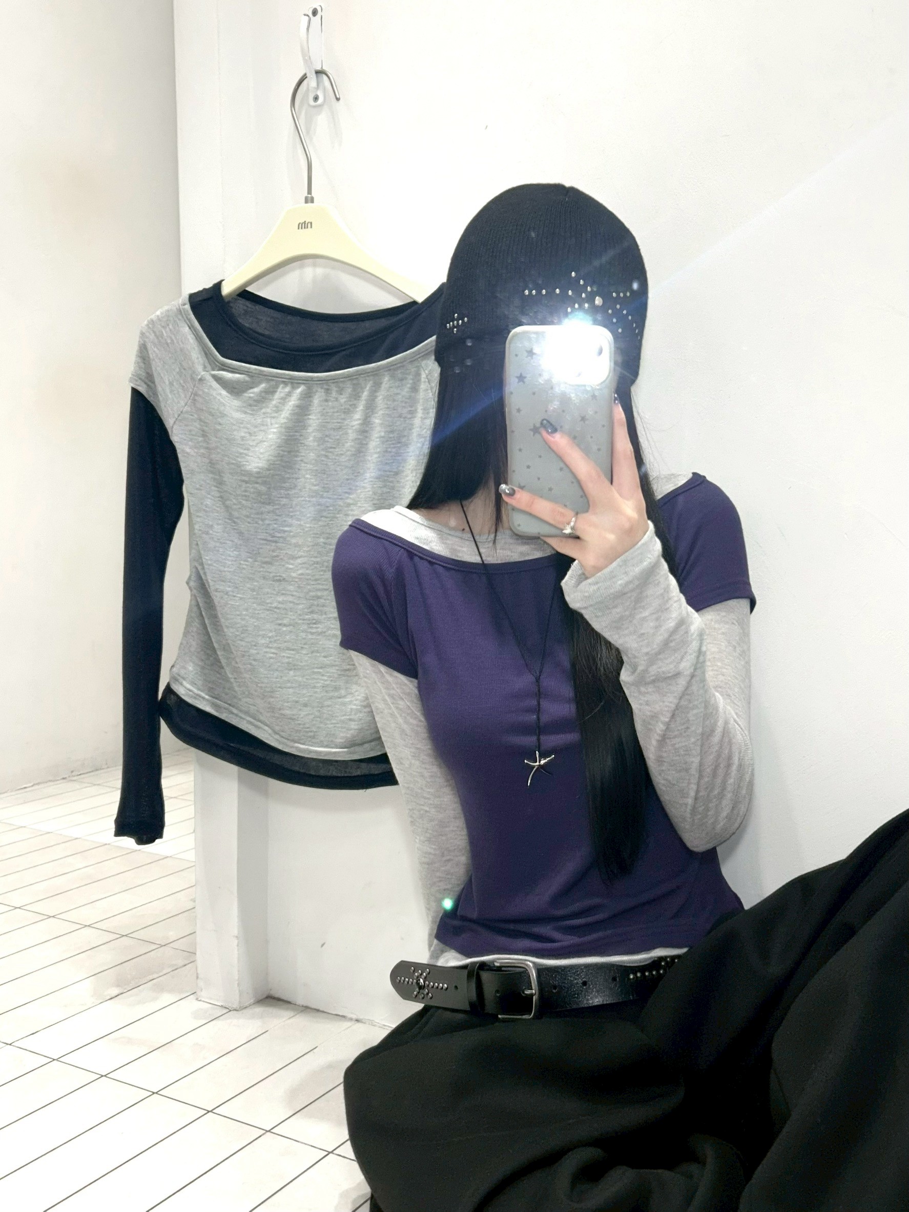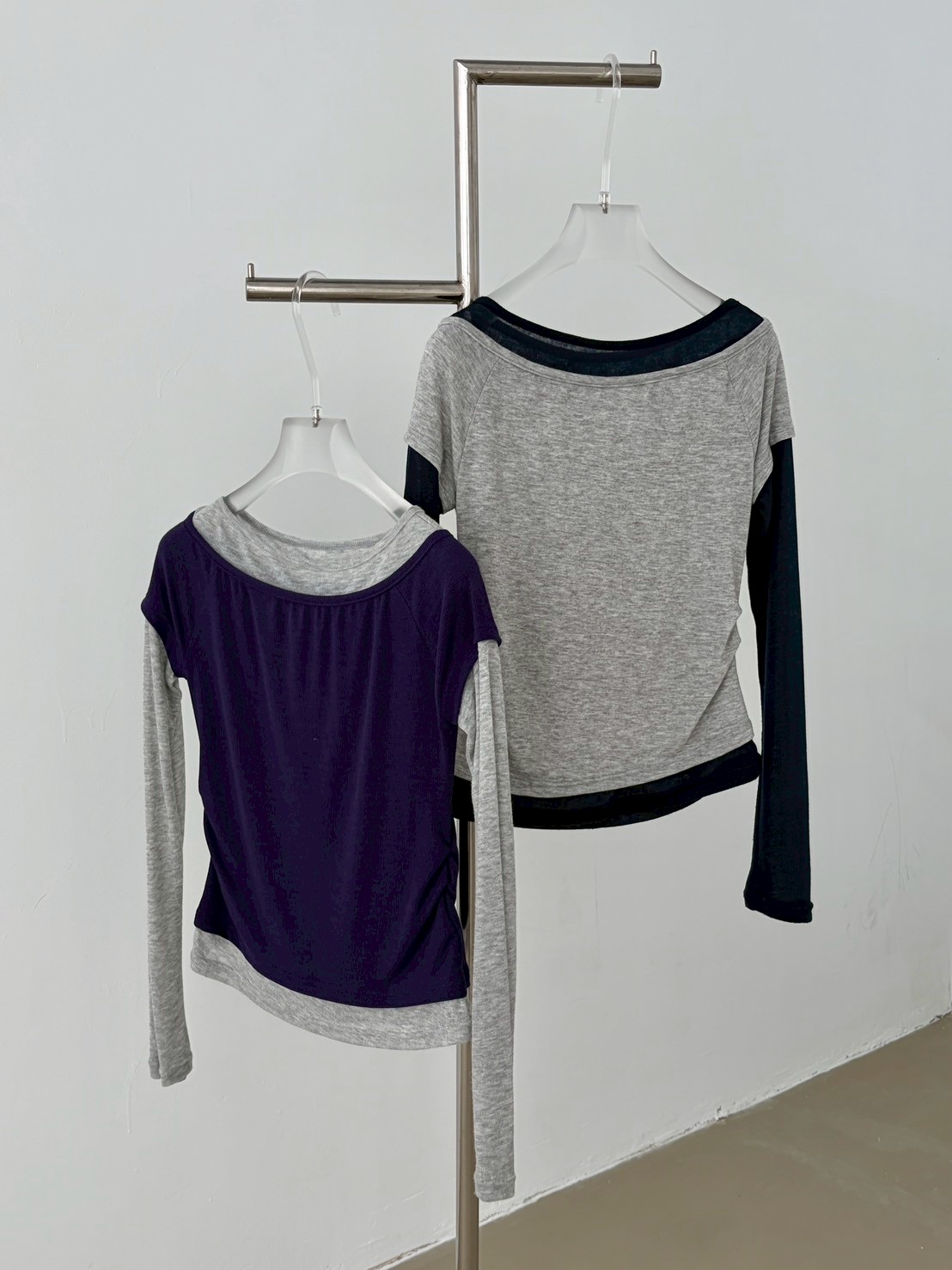 預購腰抓皺微透跳色假2件上衣