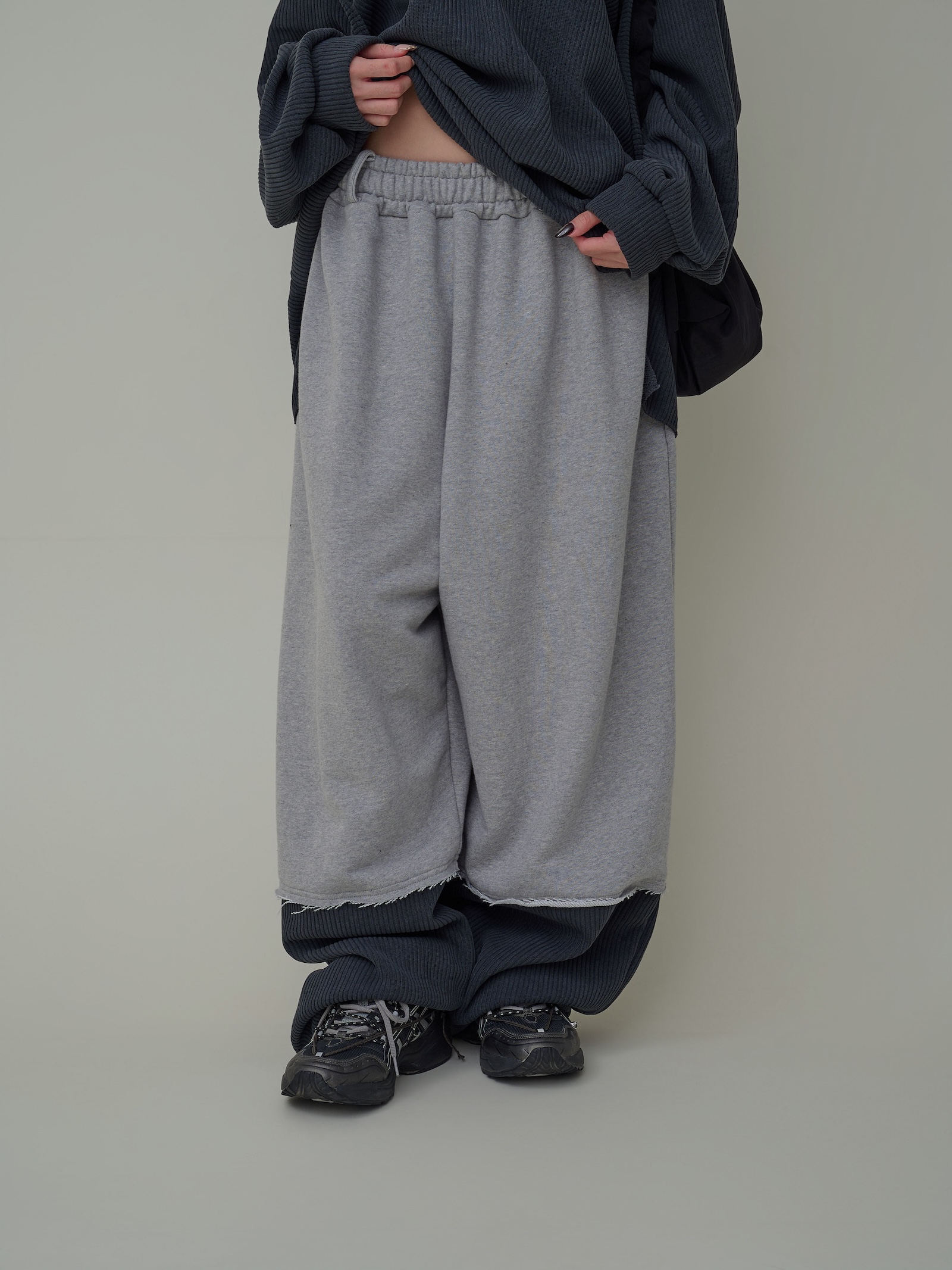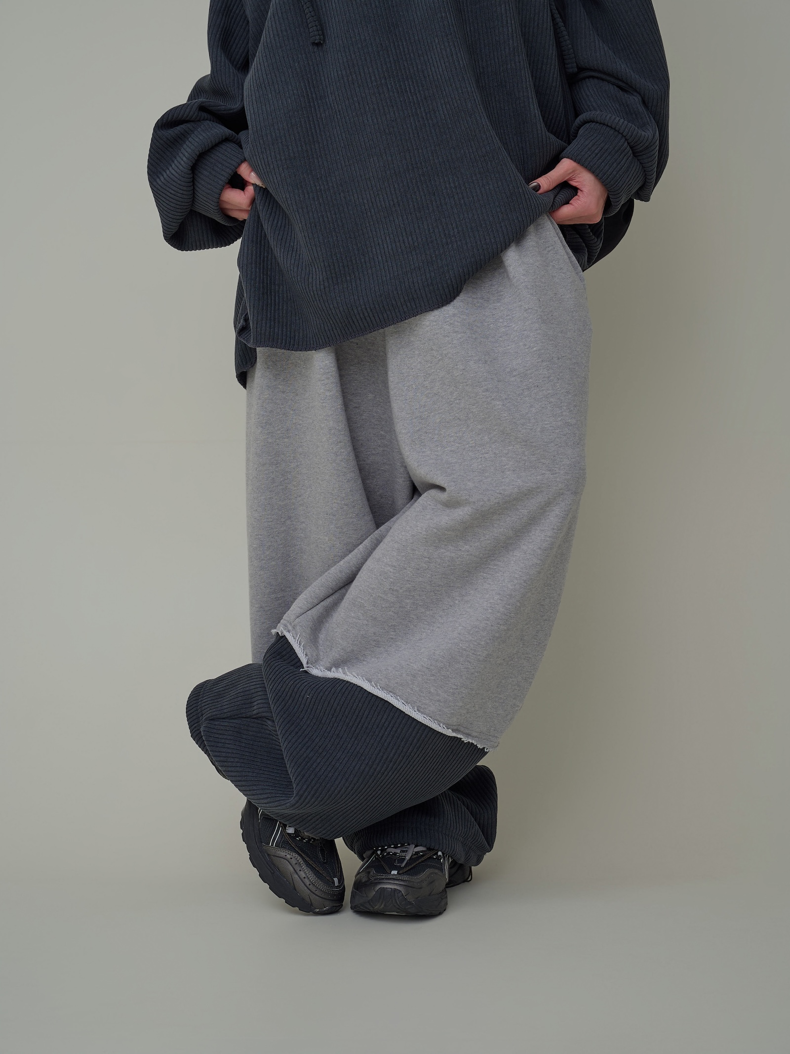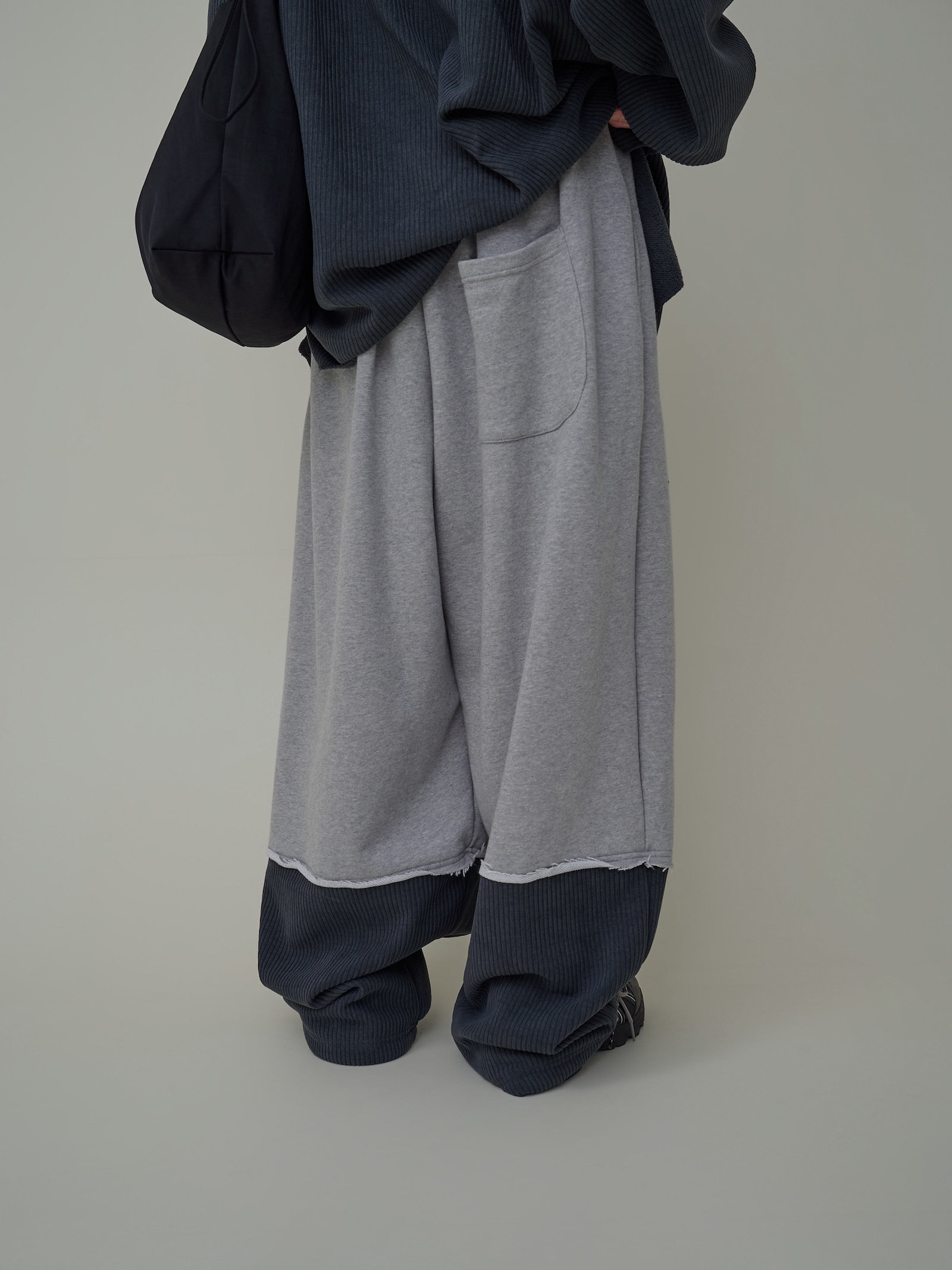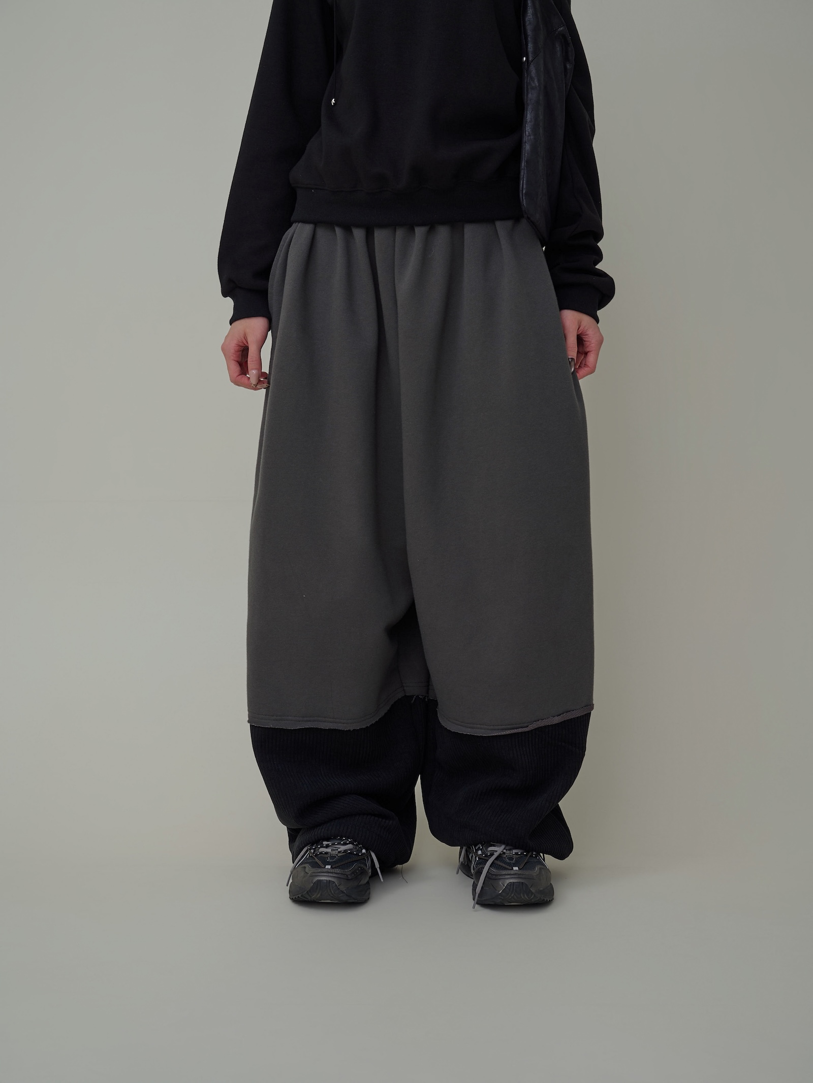 下擺跳色燈芯絨闊腿棉褲