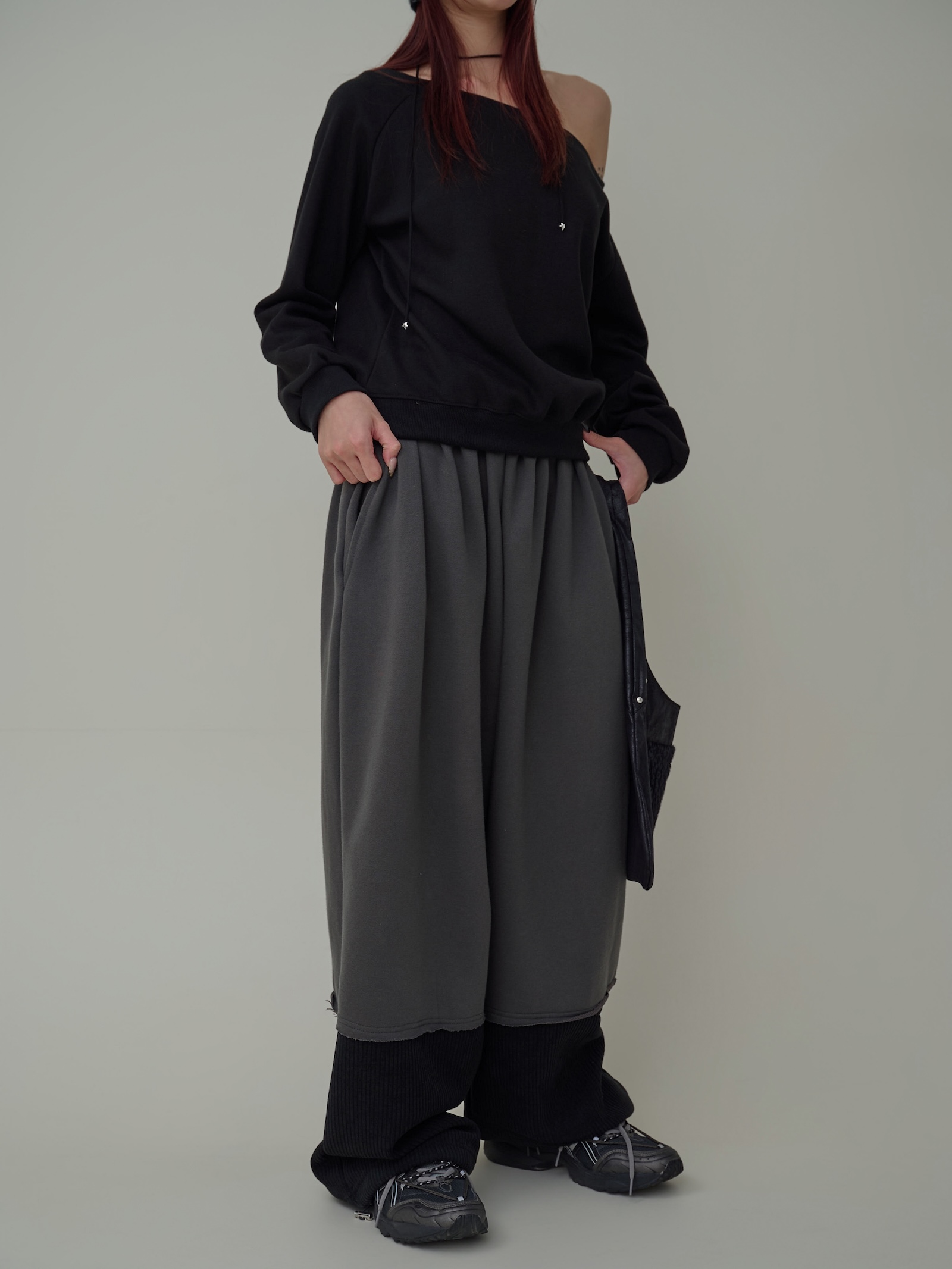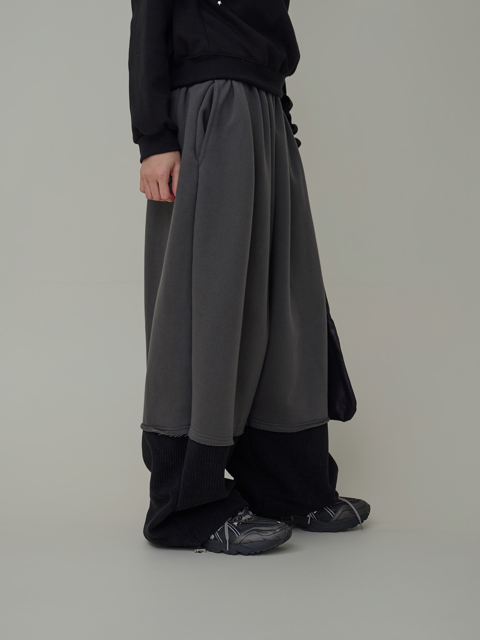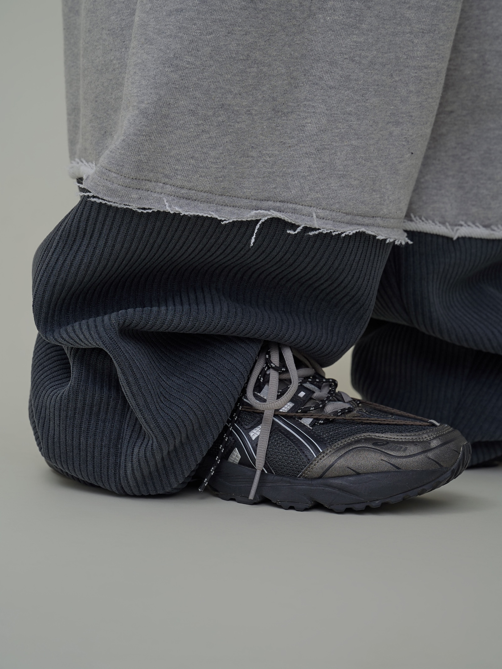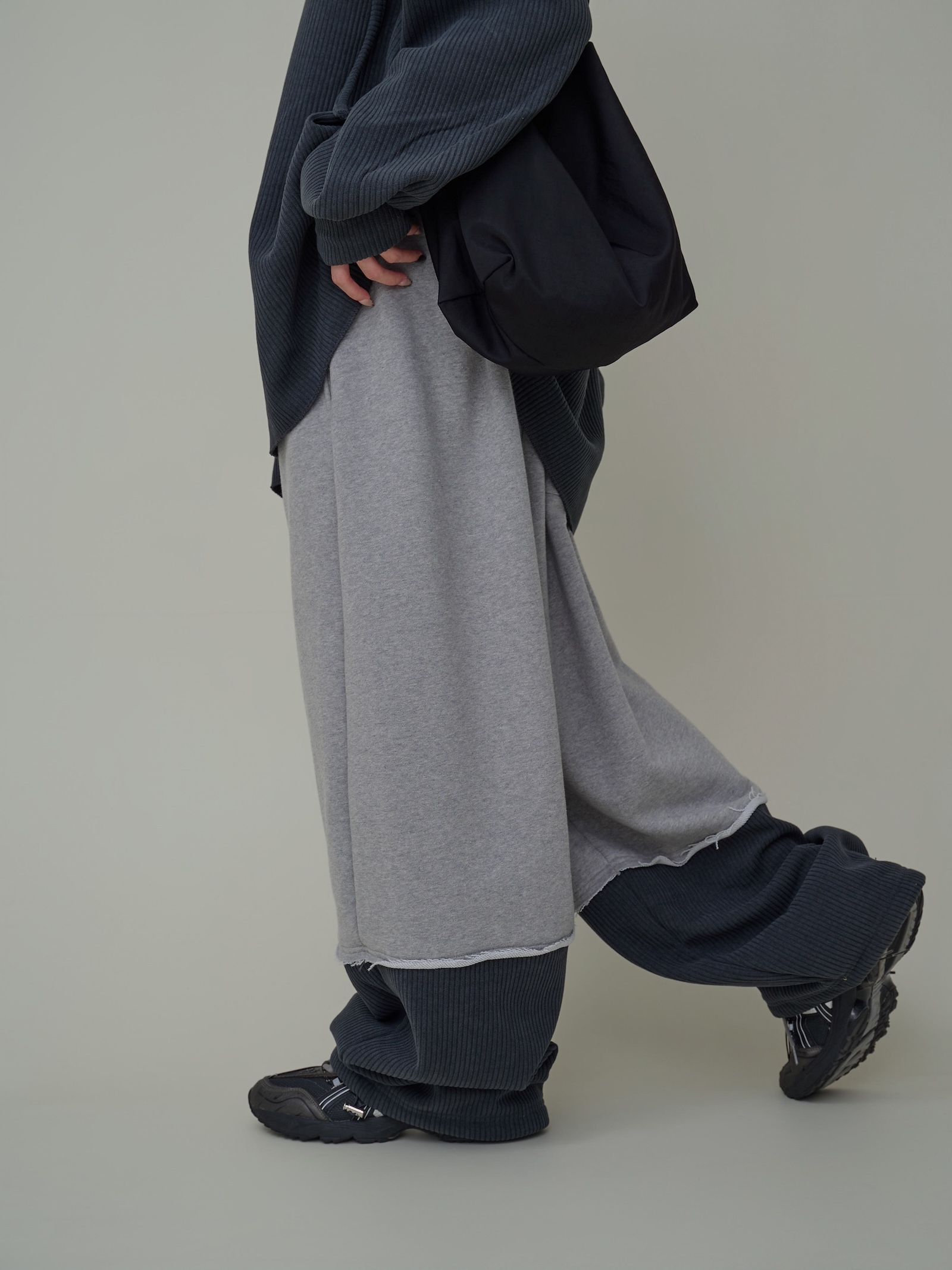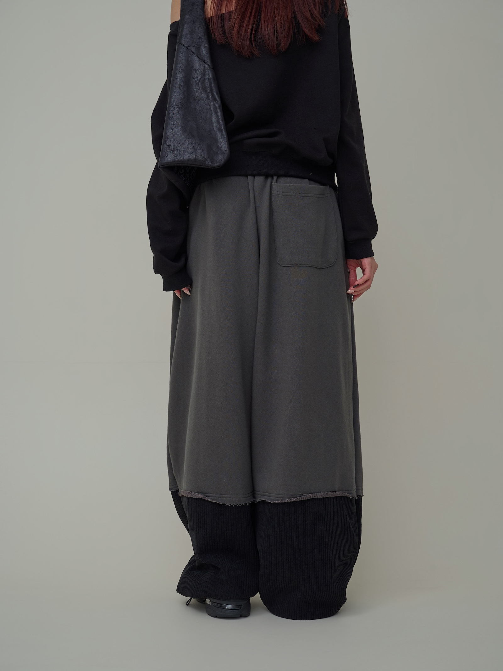 下擺跳色燈芯絨闊腿棉褲