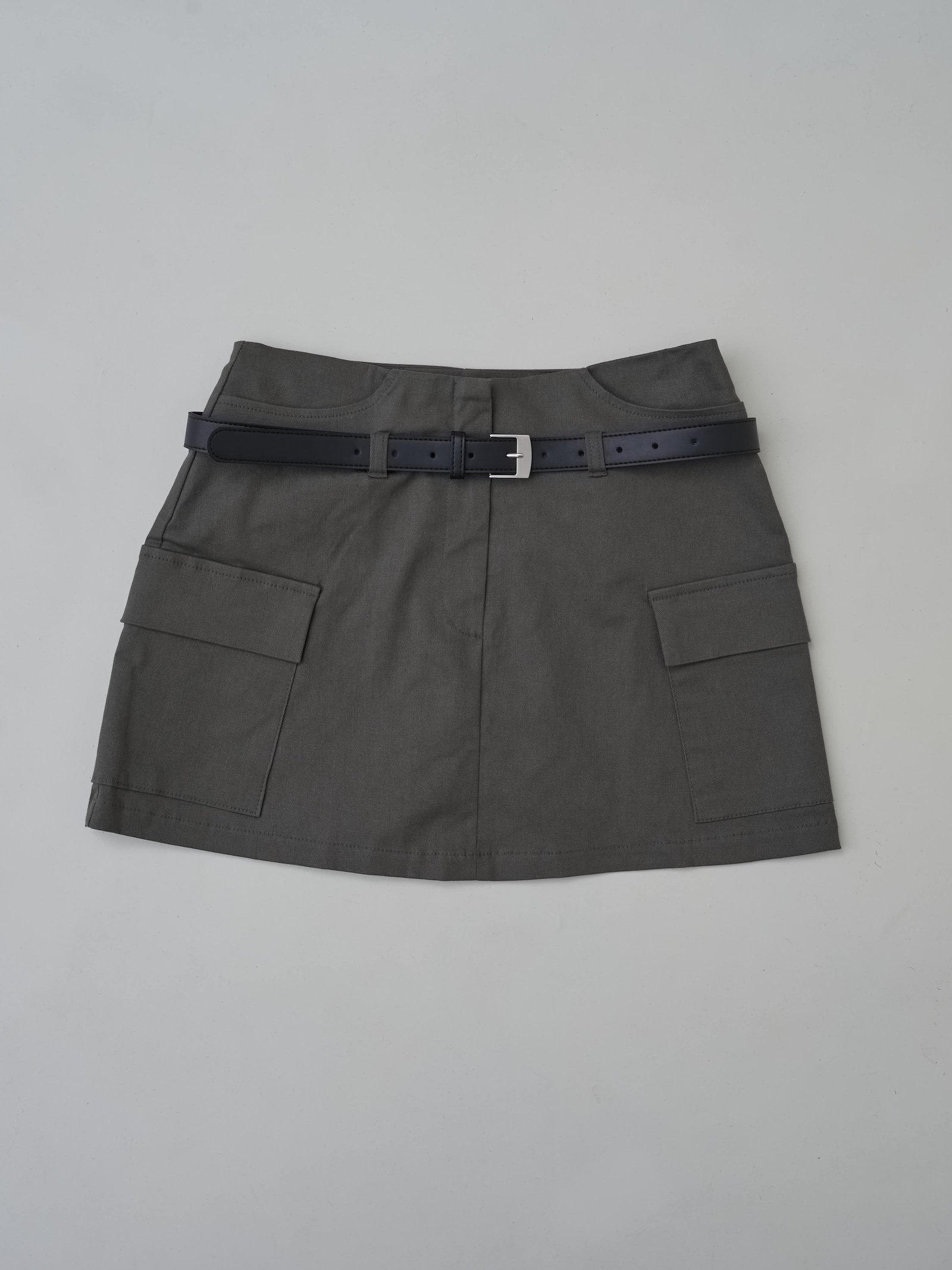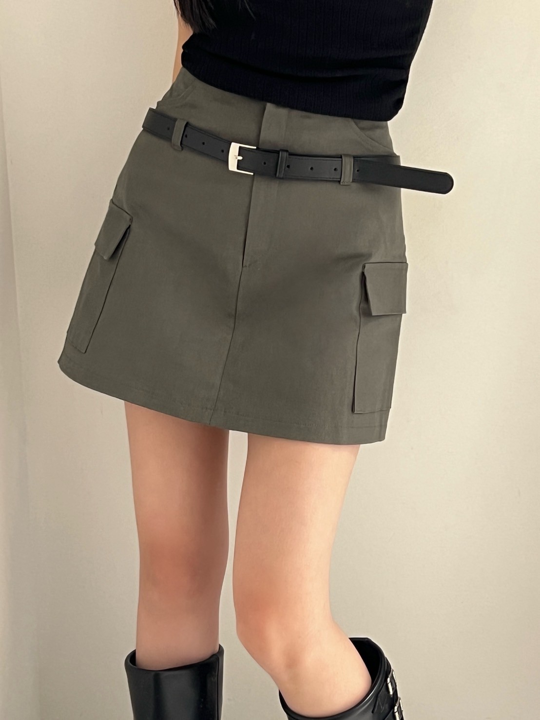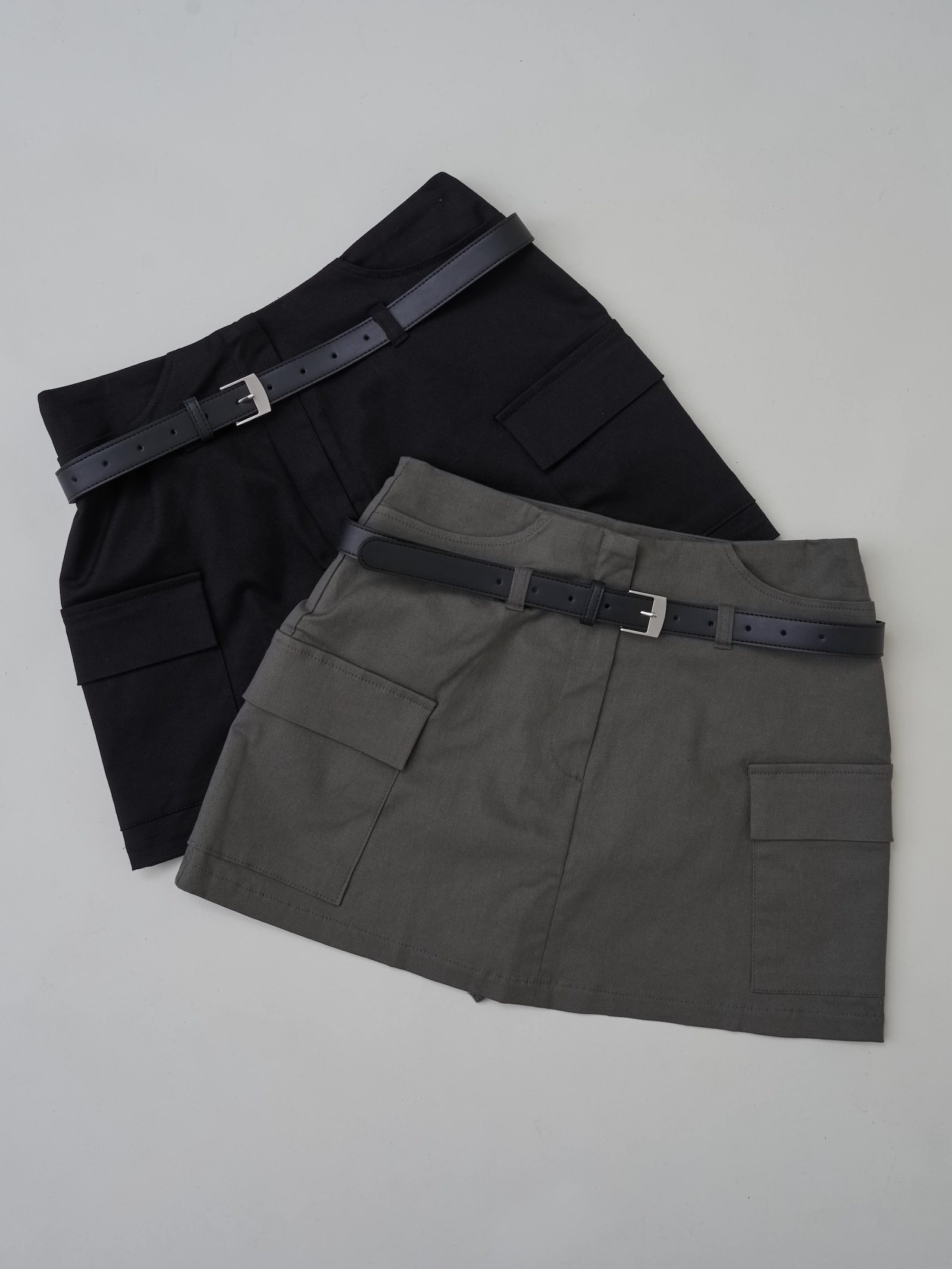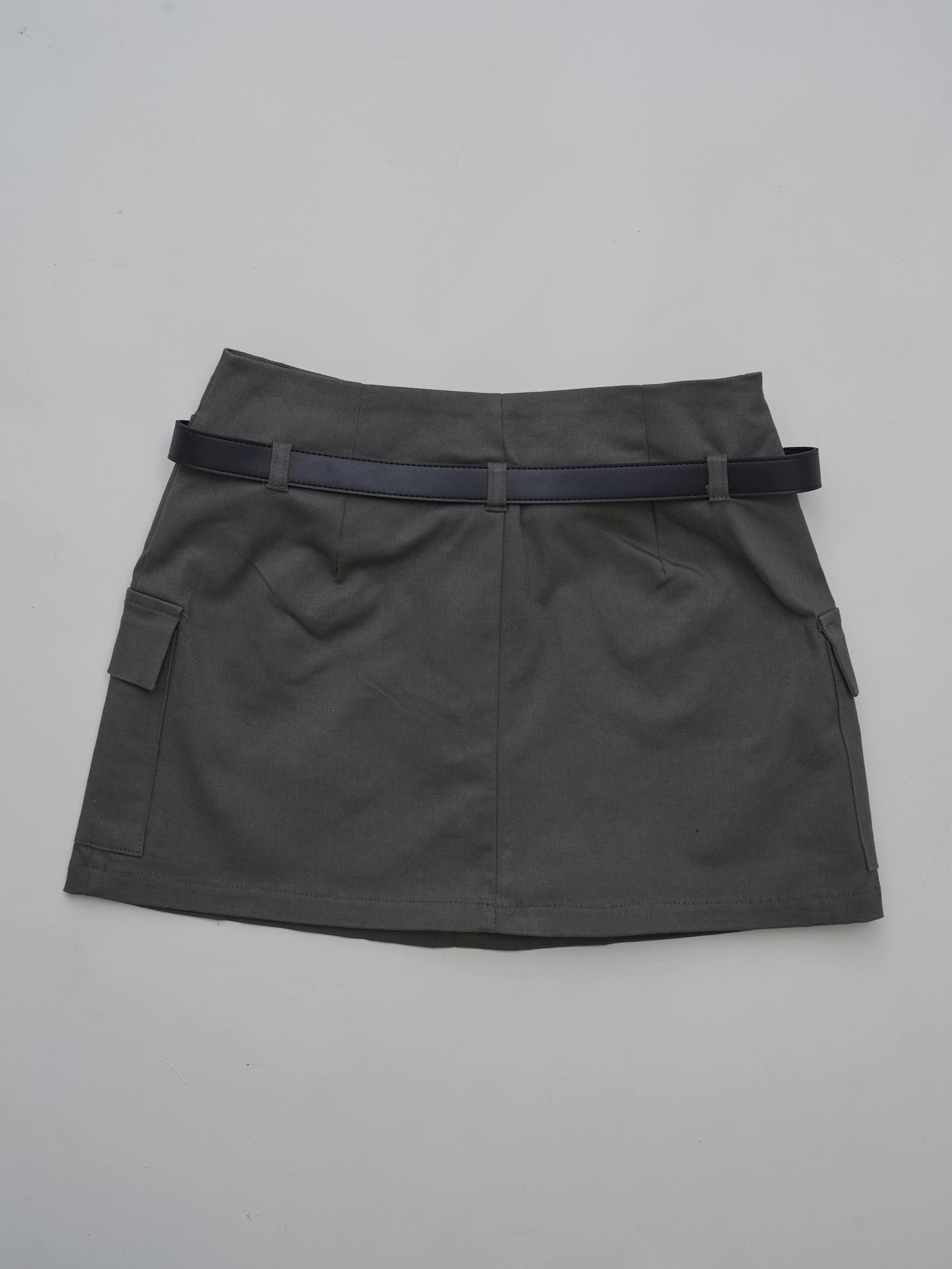 附皮帶 隱藏拉鍊翻蓋口袋短褲裙