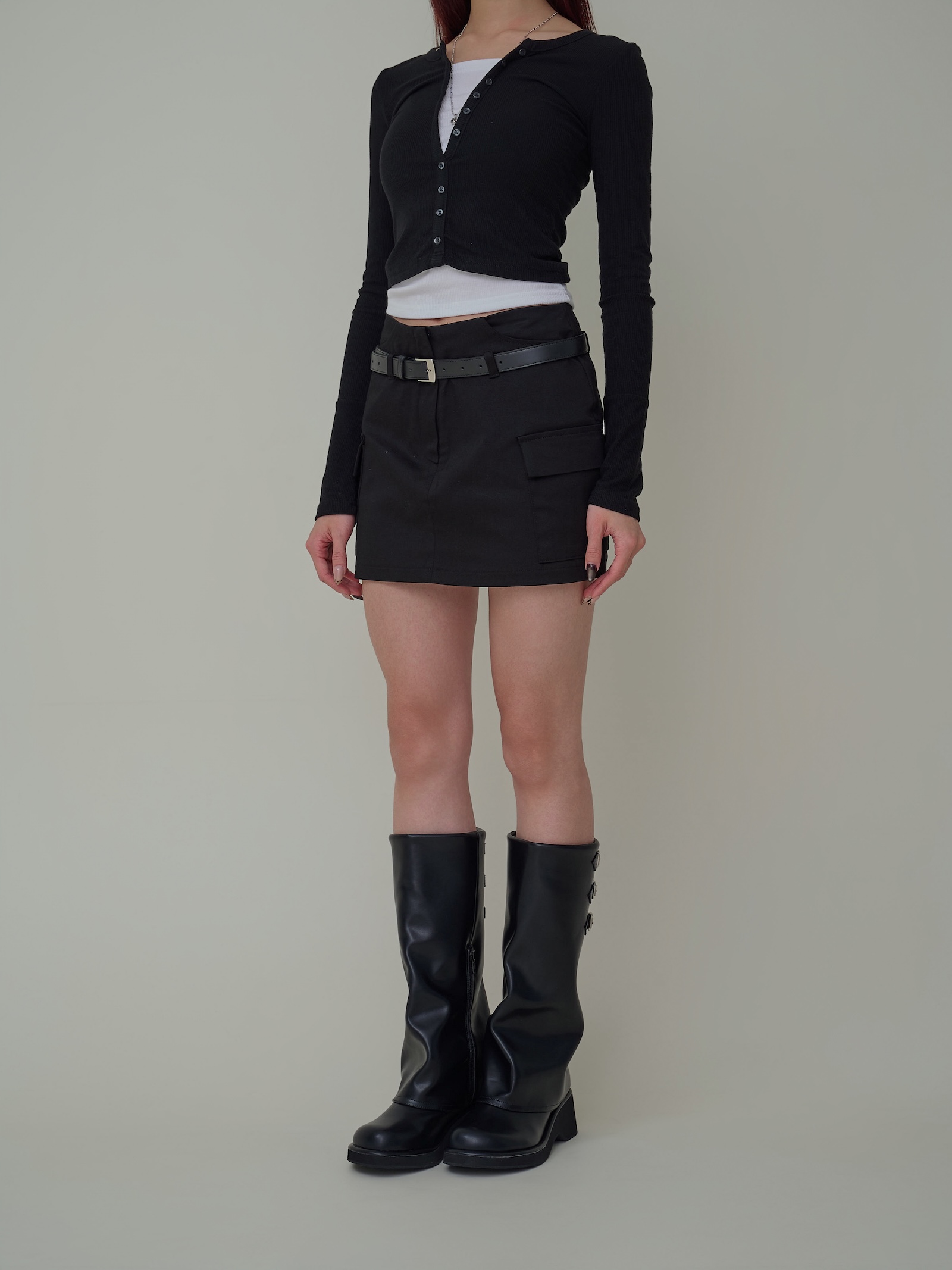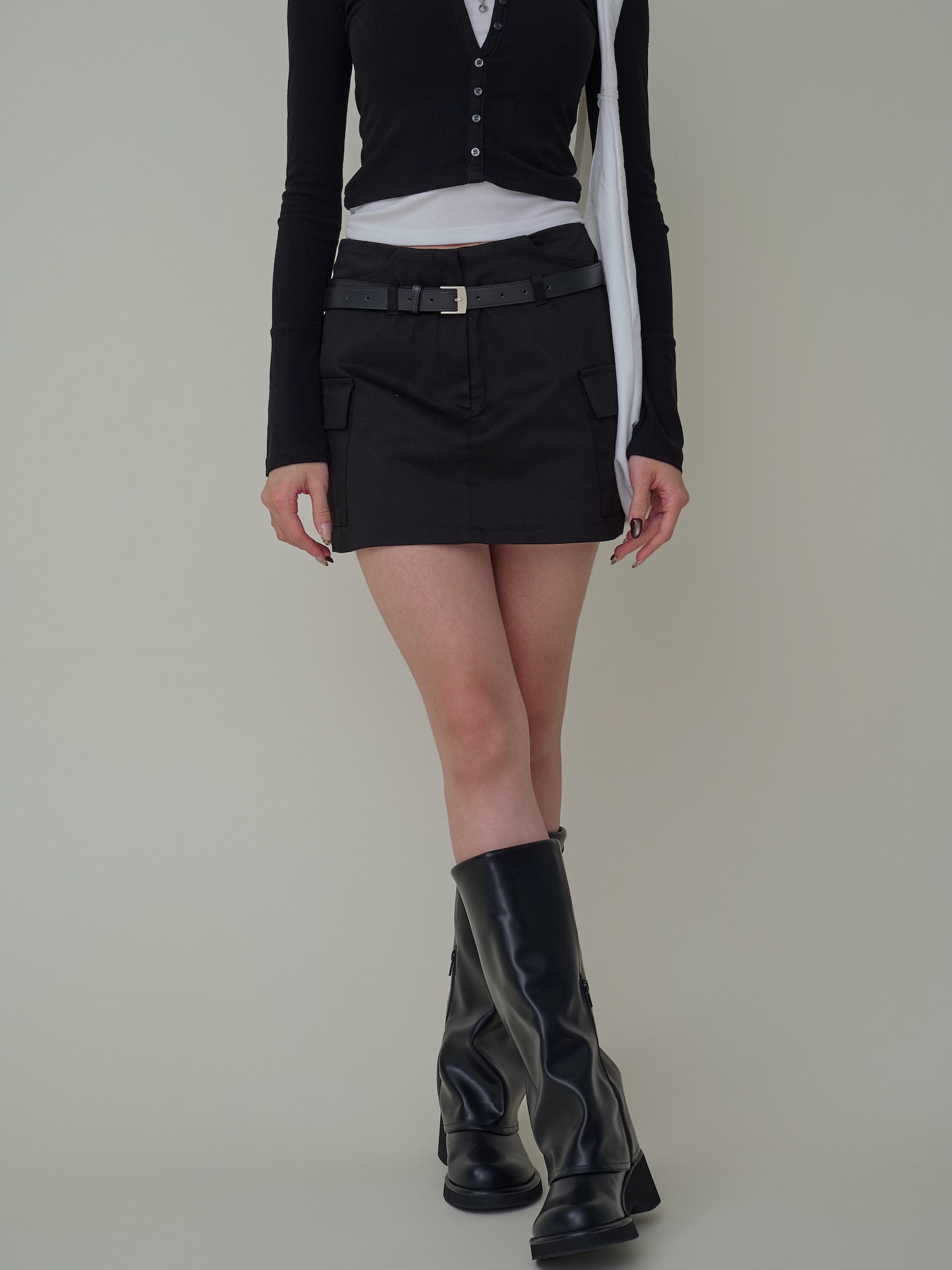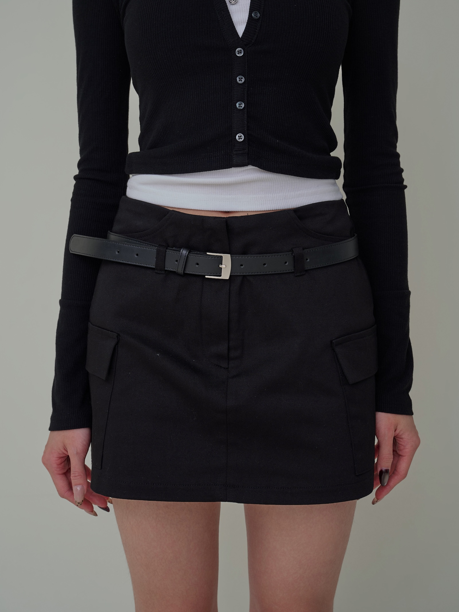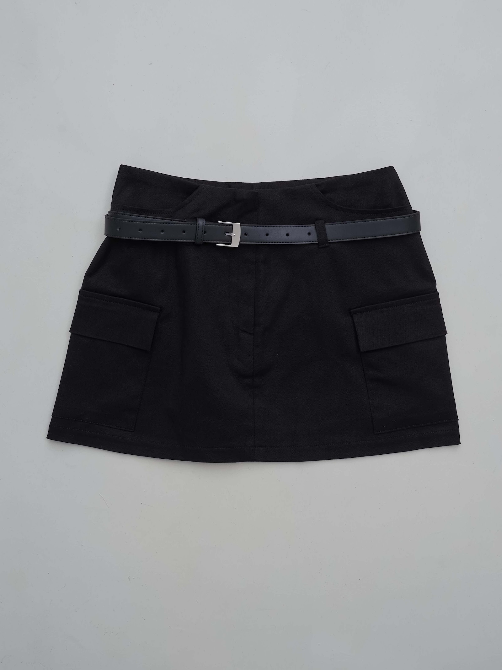 附皮帶 隱藏拉鍊翻蓋口袋短褲裙