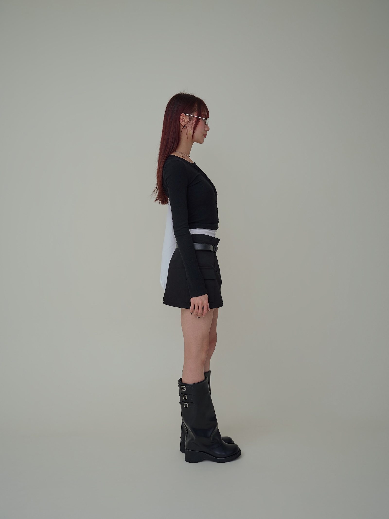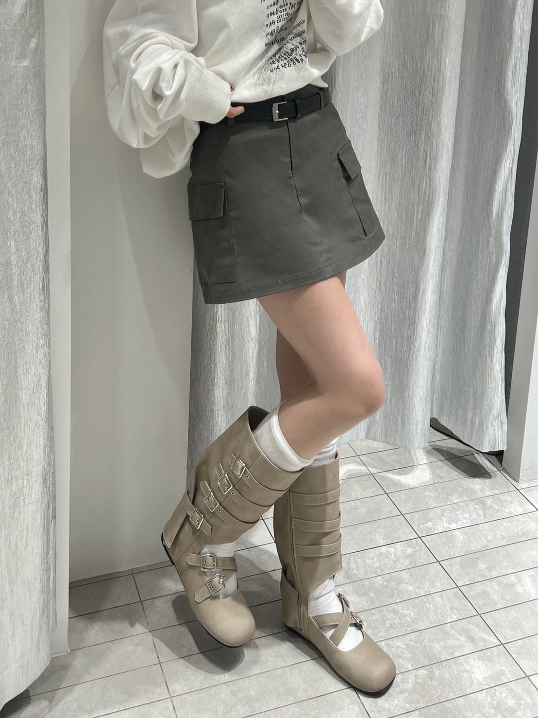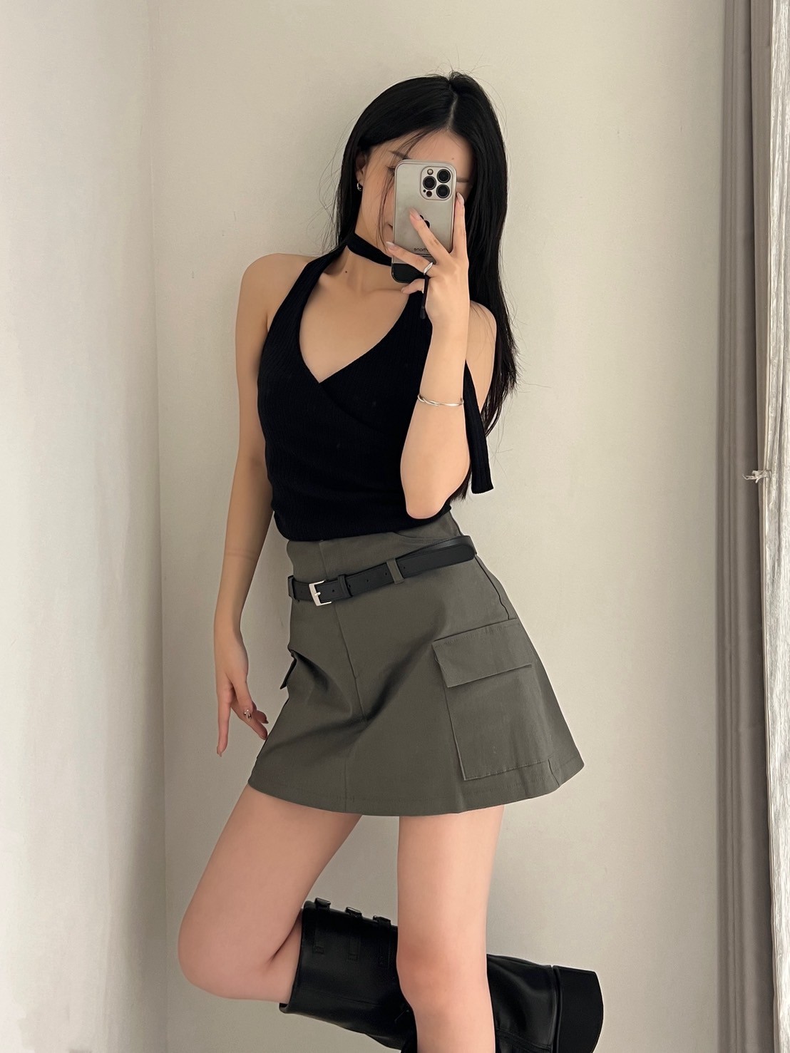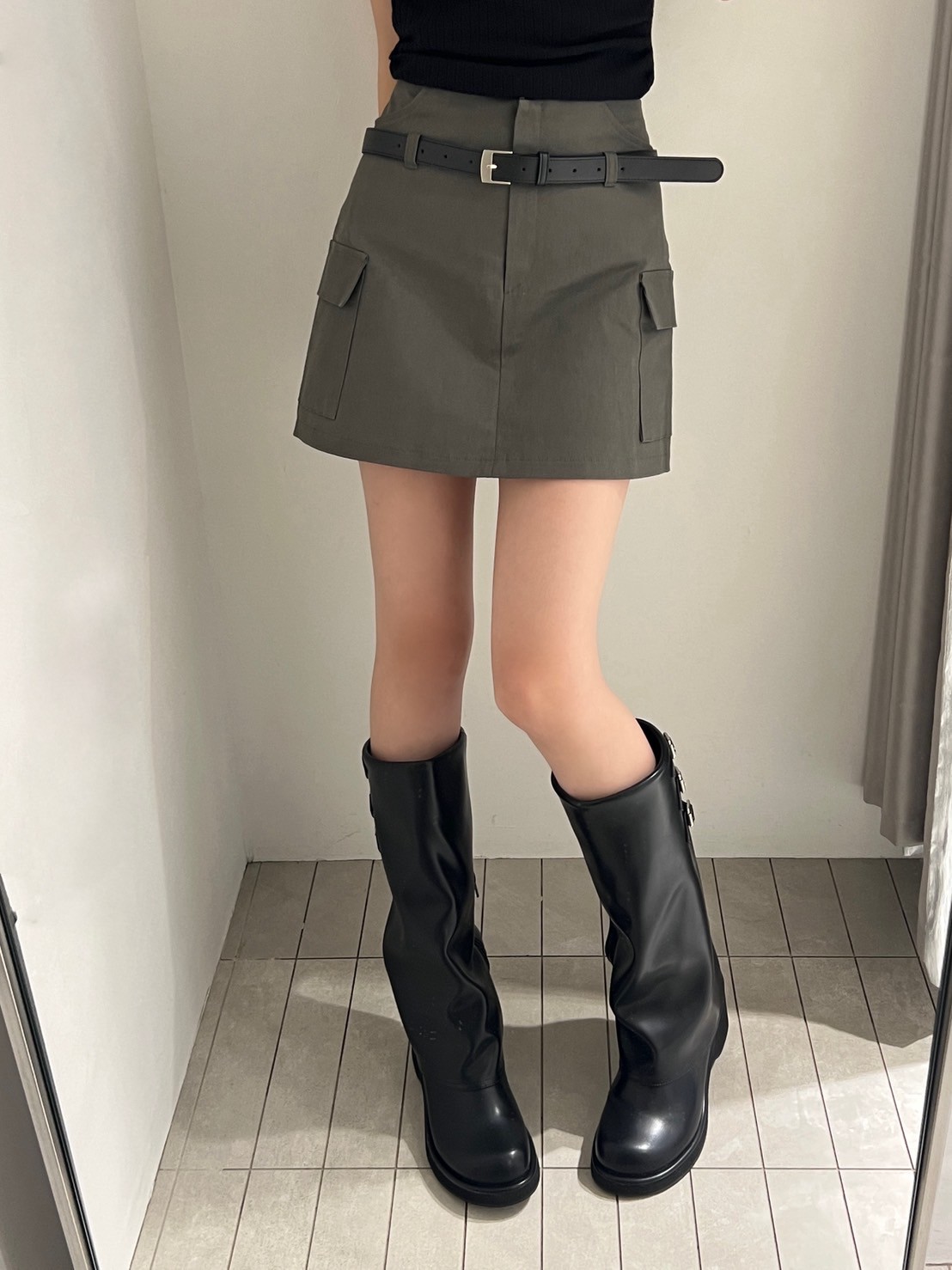 附皮帶 隱藏拉鍊翻蓋口袋短褲裙