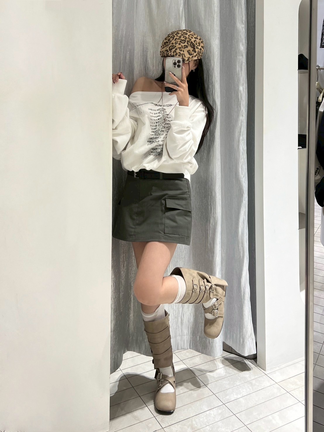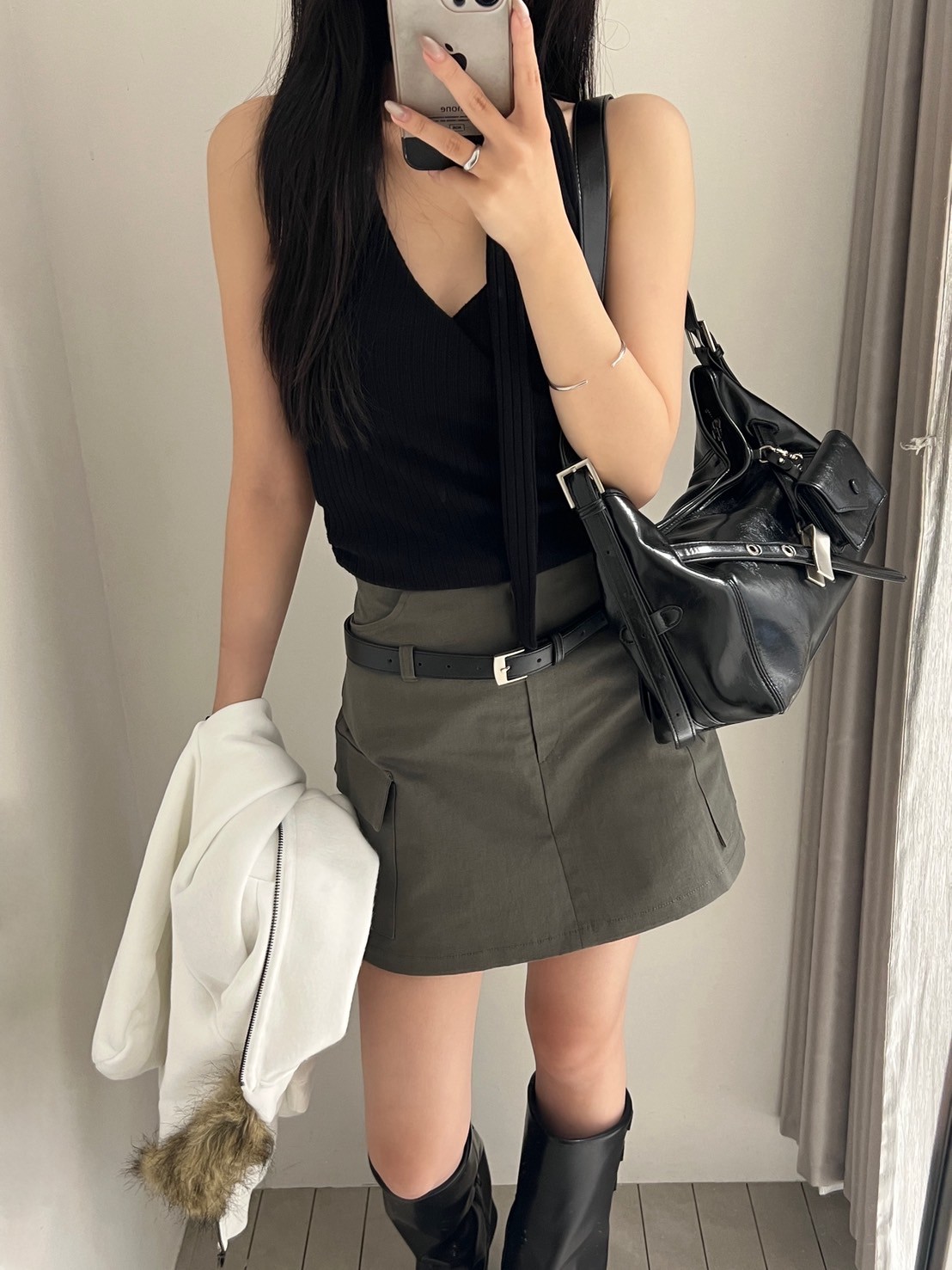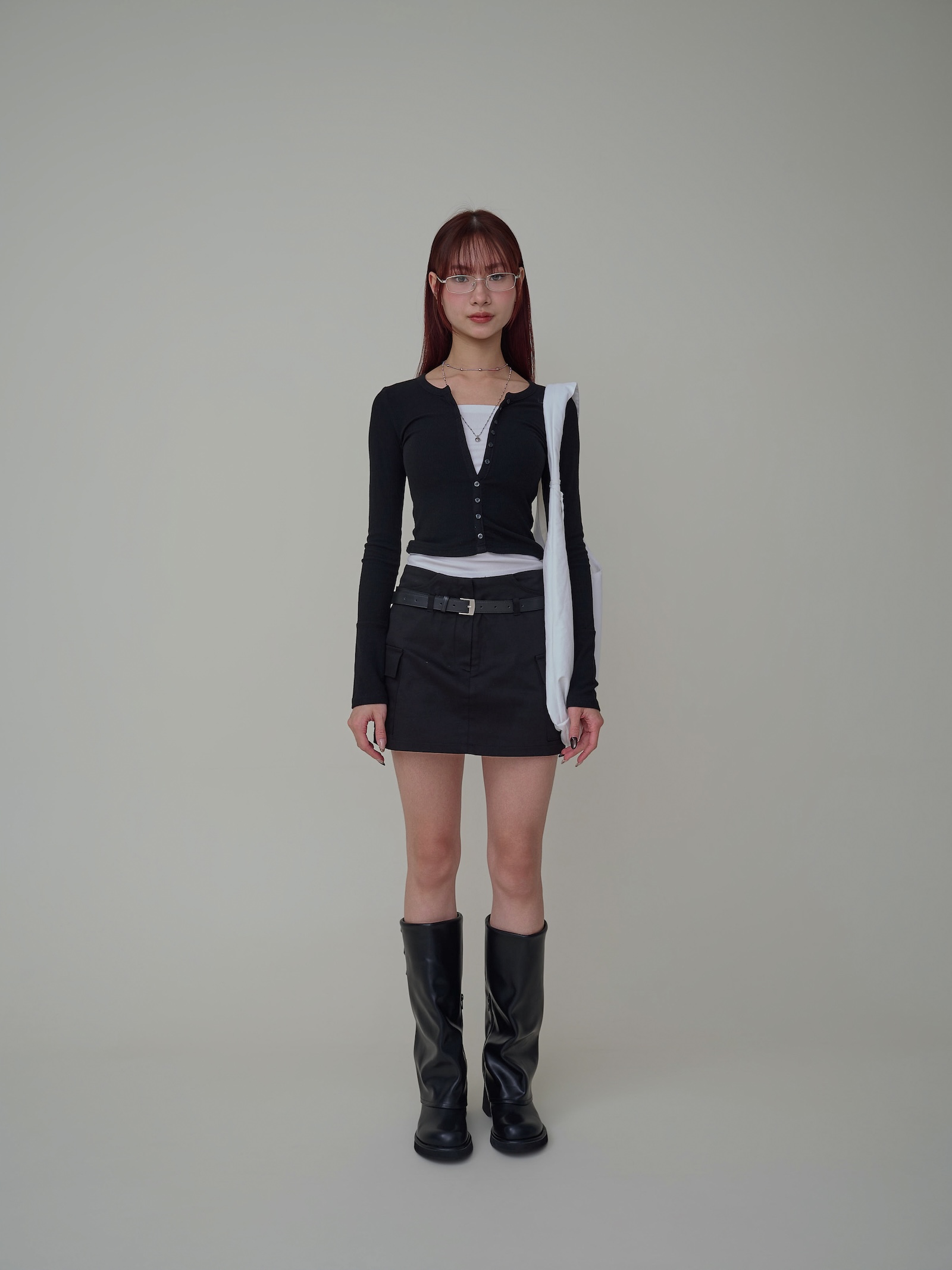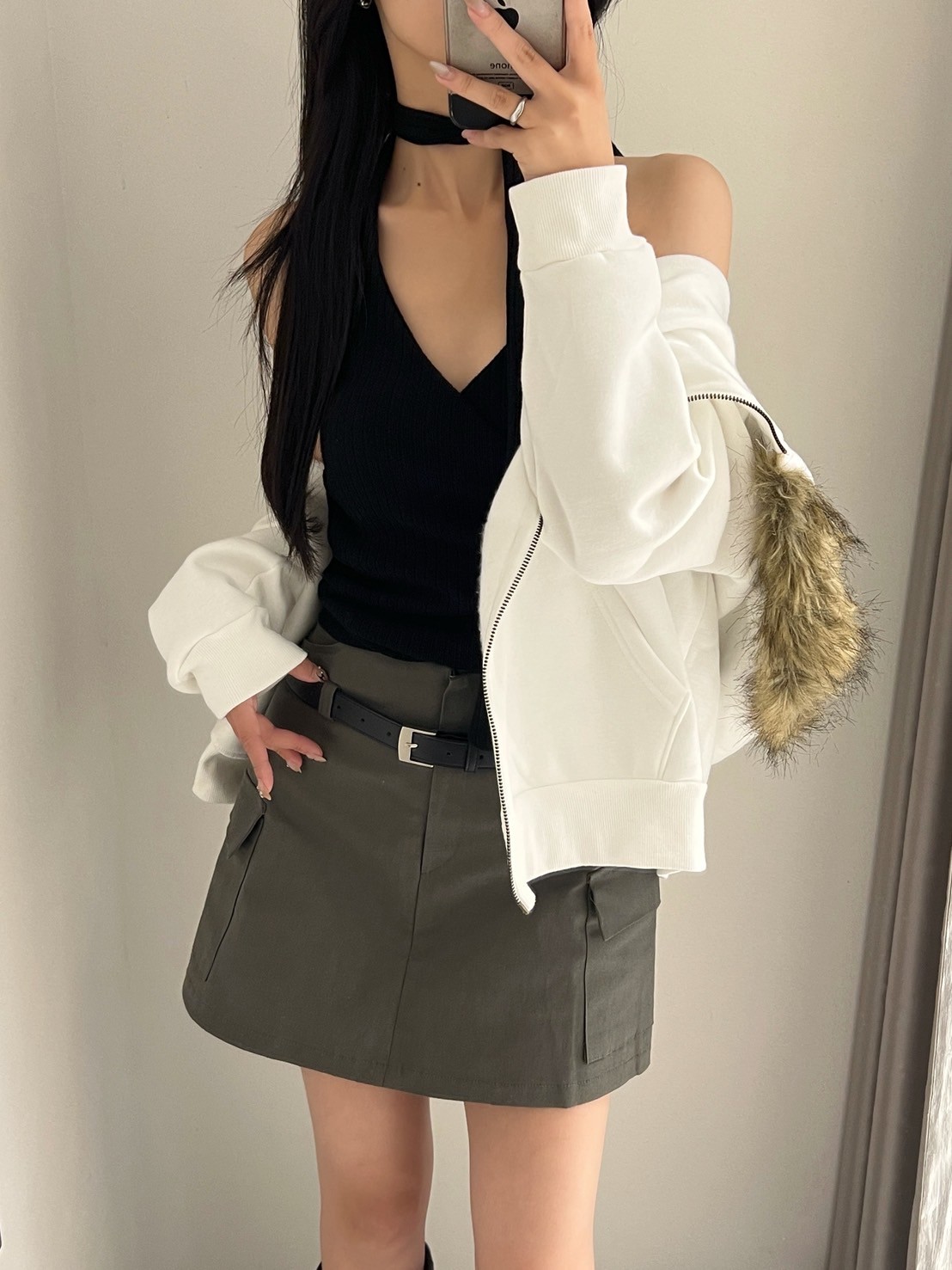 附皮帶 隱藏拉鍊翻蓋口袋短褲裙
