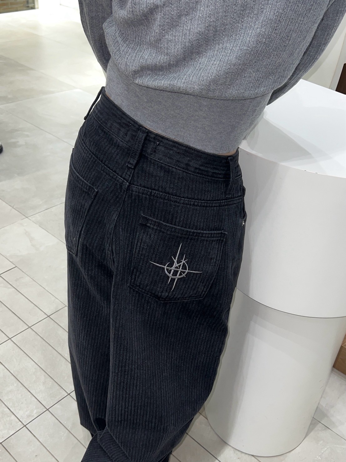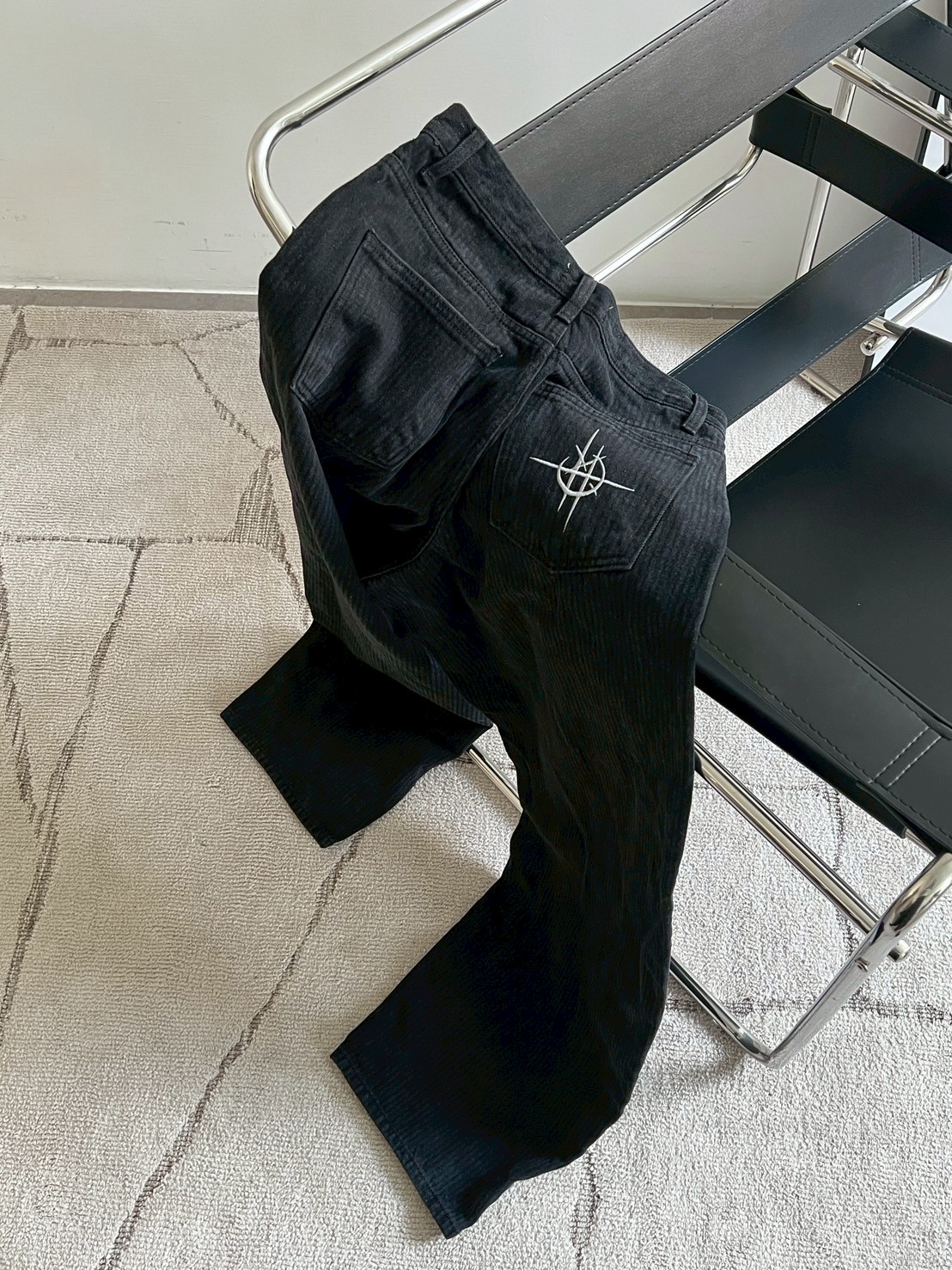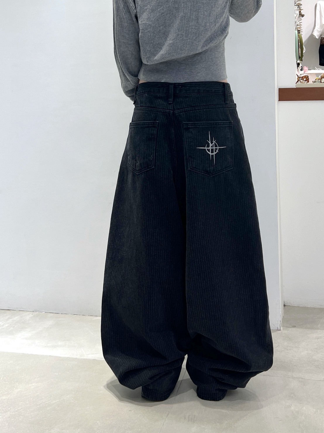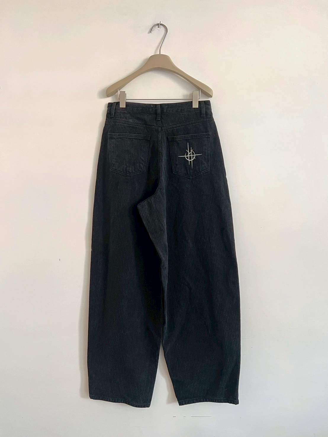 上弦日環蝕刺繡 刷直紋牛仔褲