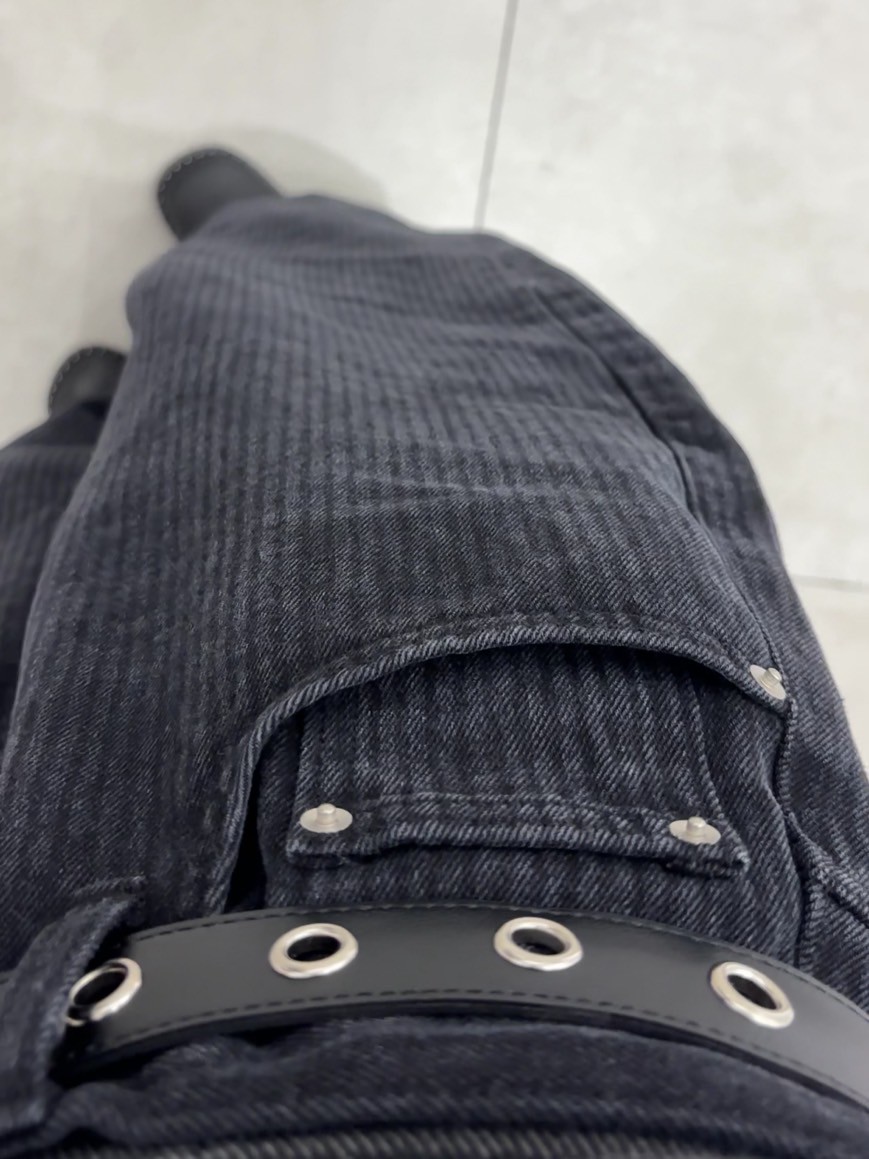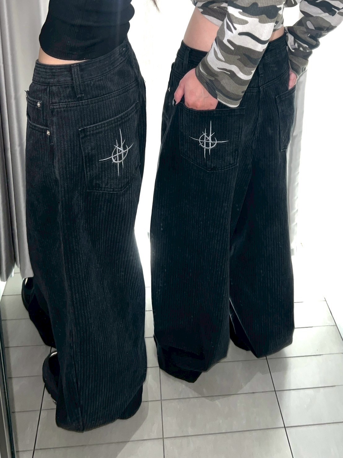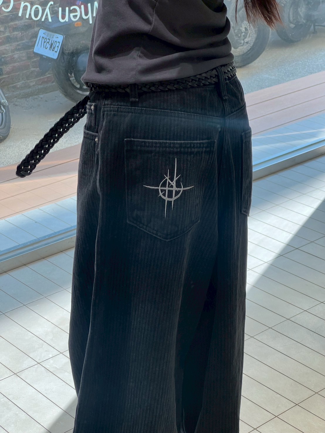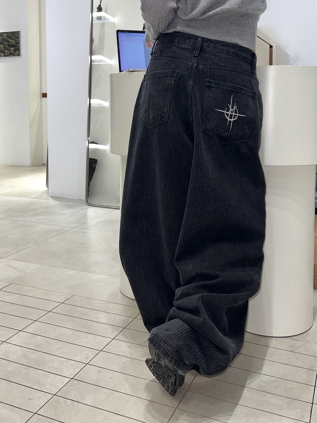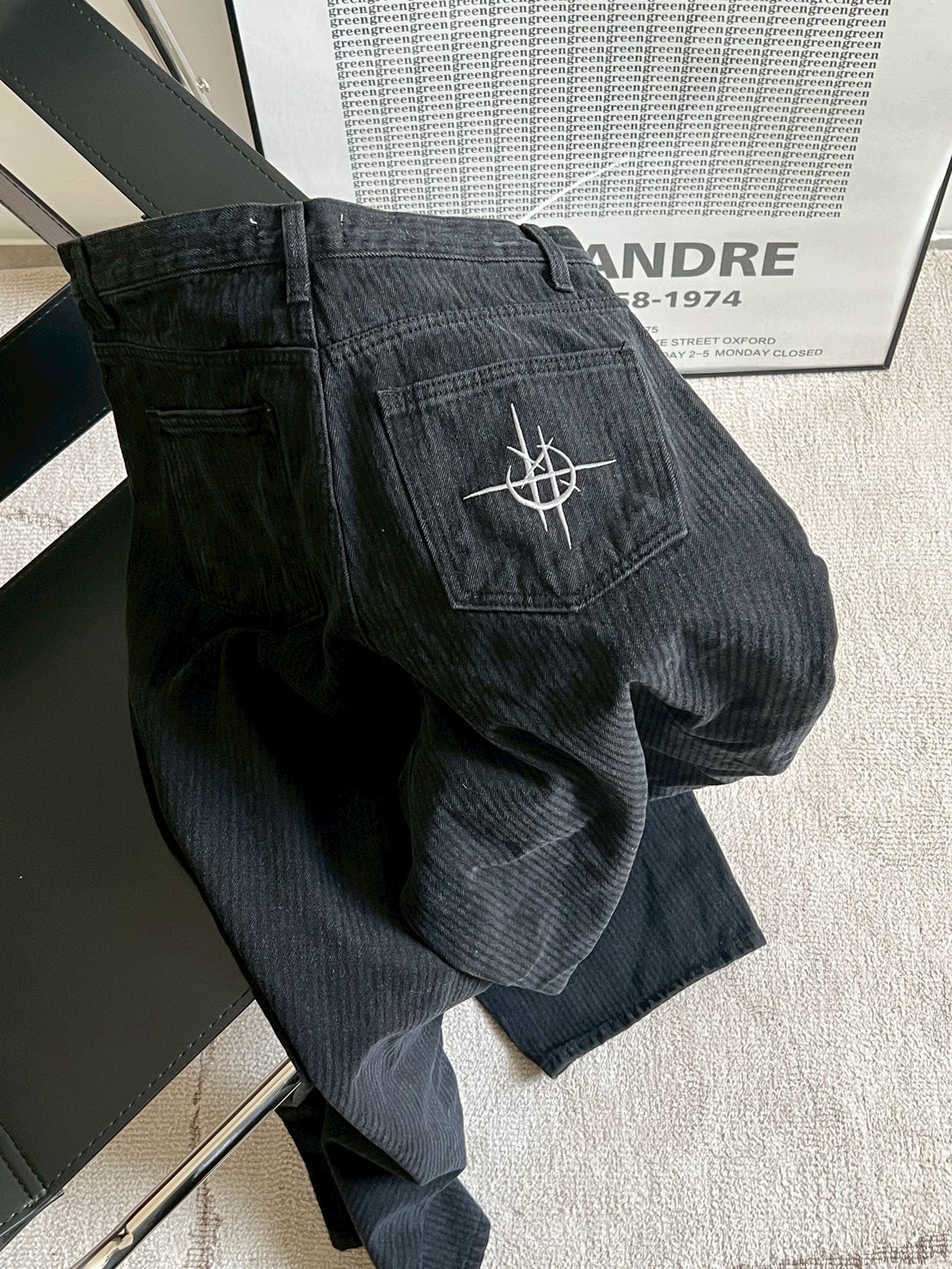 上弦日環蝕刺繡 刷直紋牛仔褲