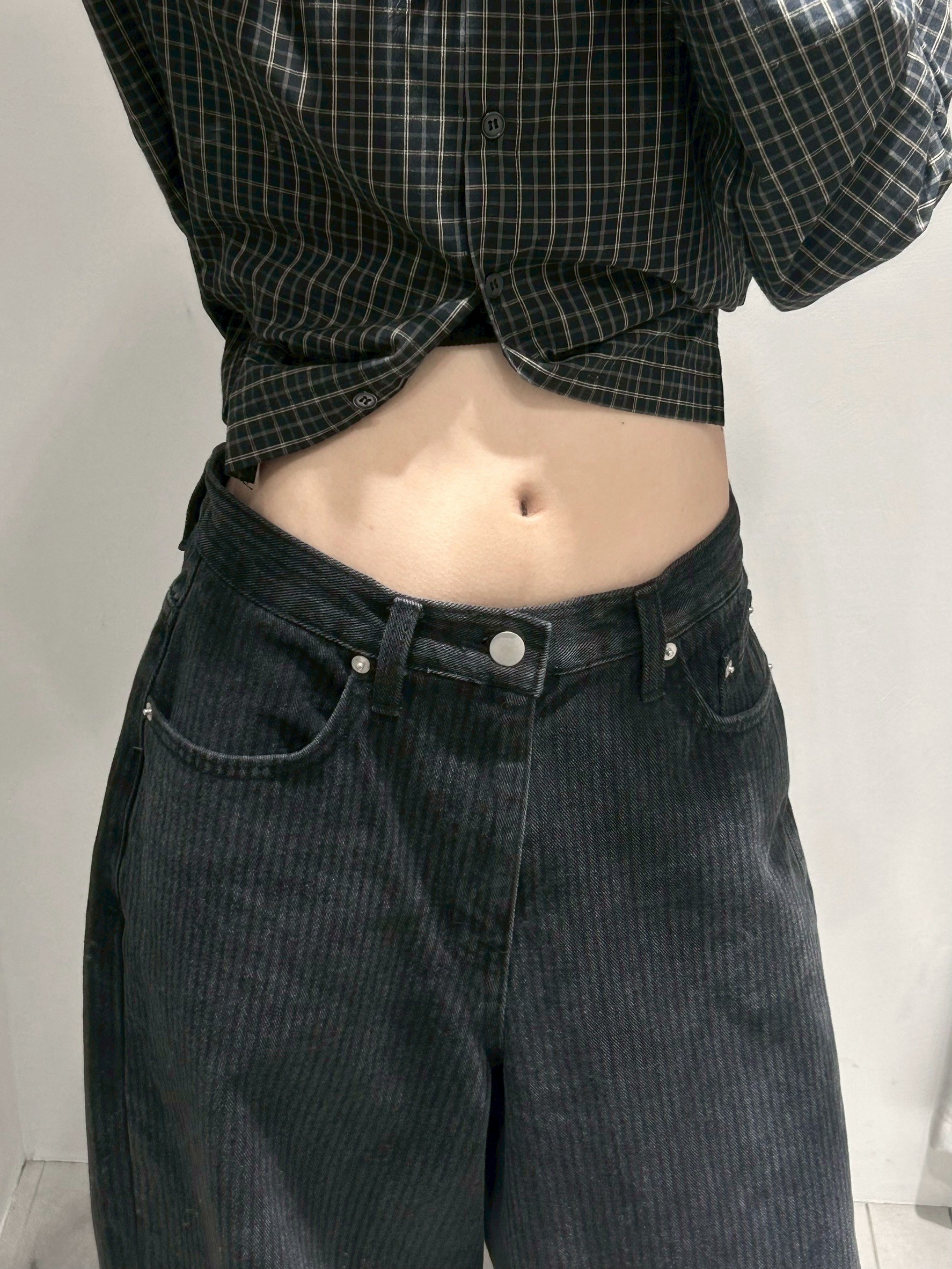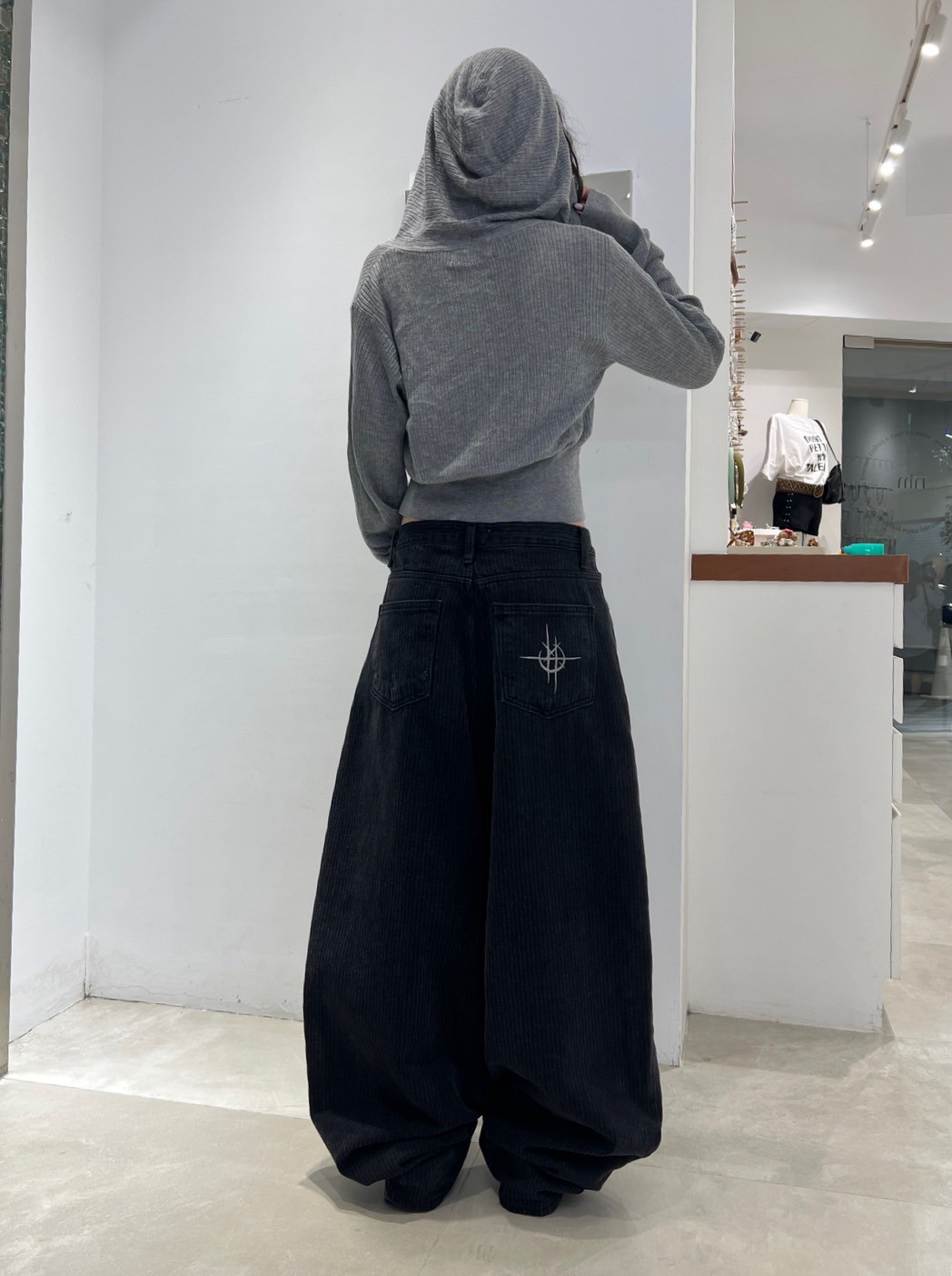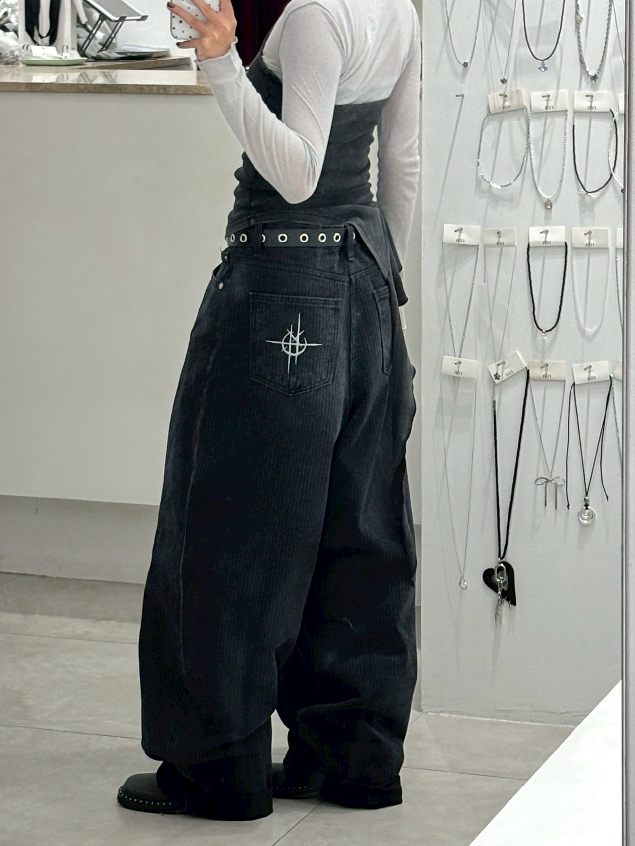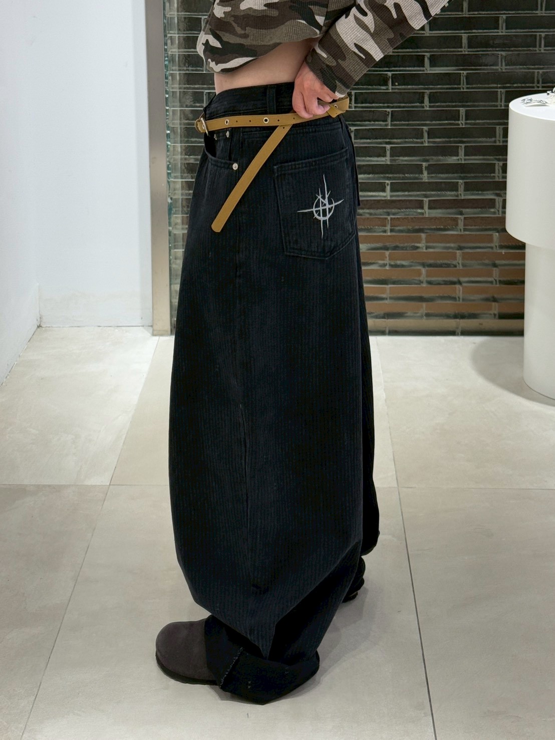 上弦日環蝕刺繡 刷直紋牛仔褲