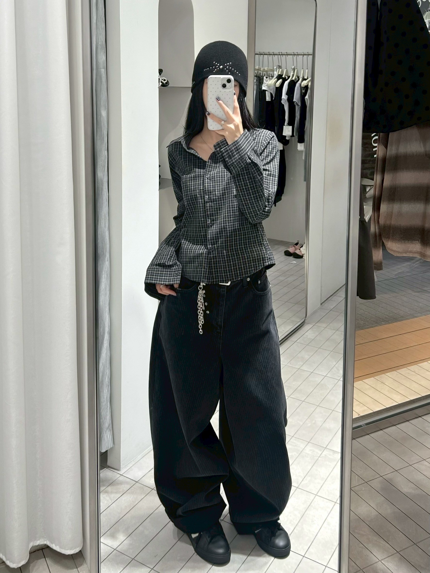 2)未開釦眼、衣服線頭