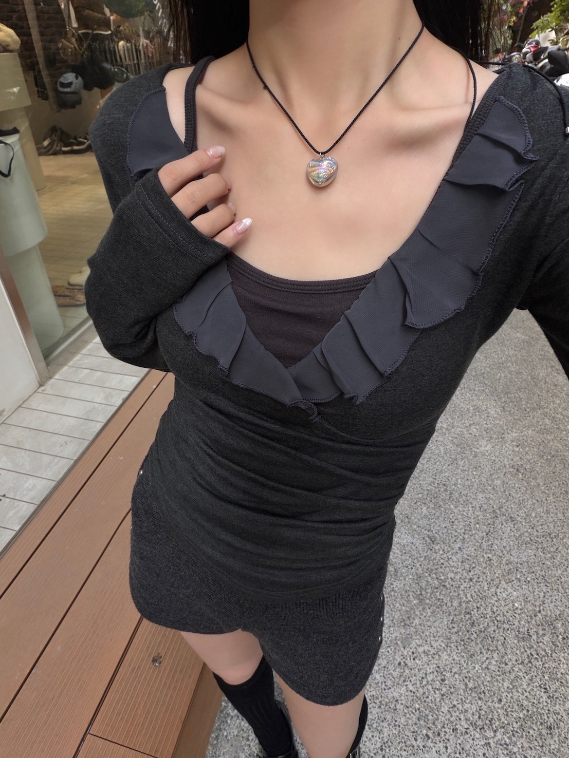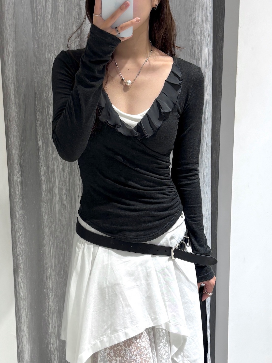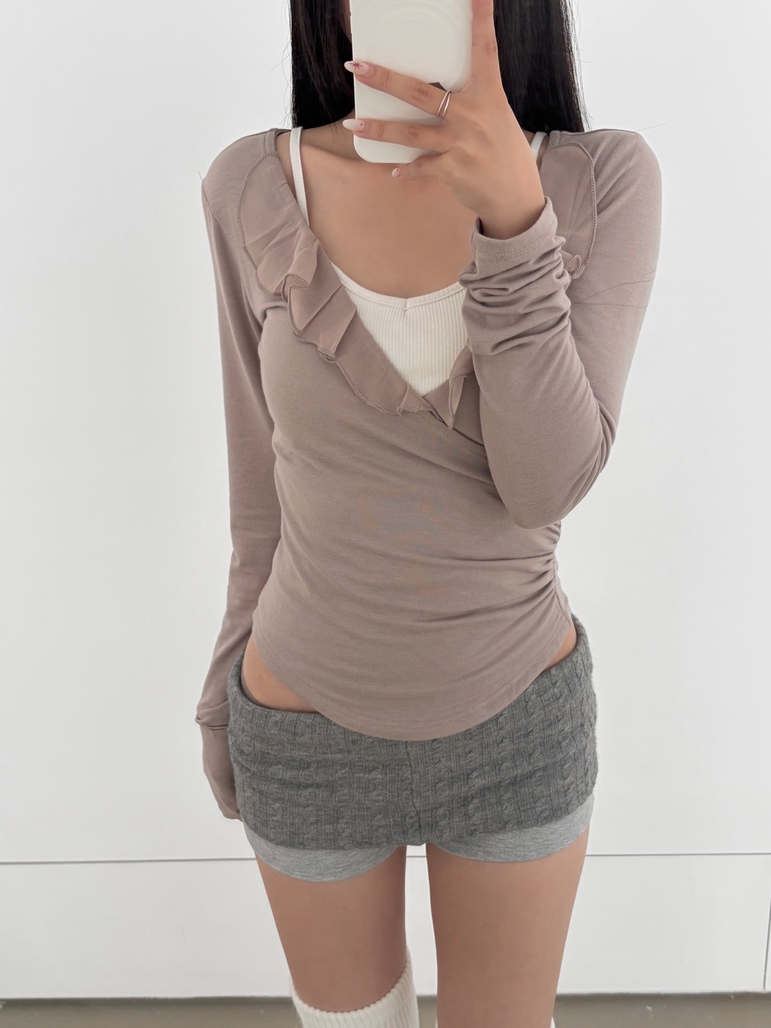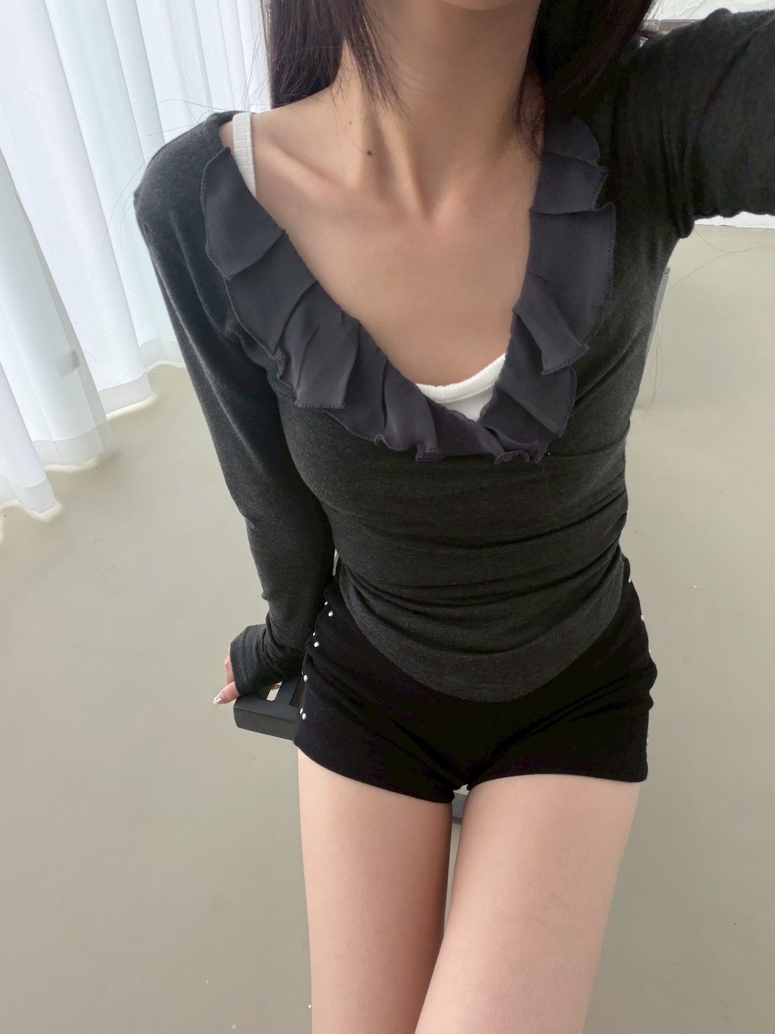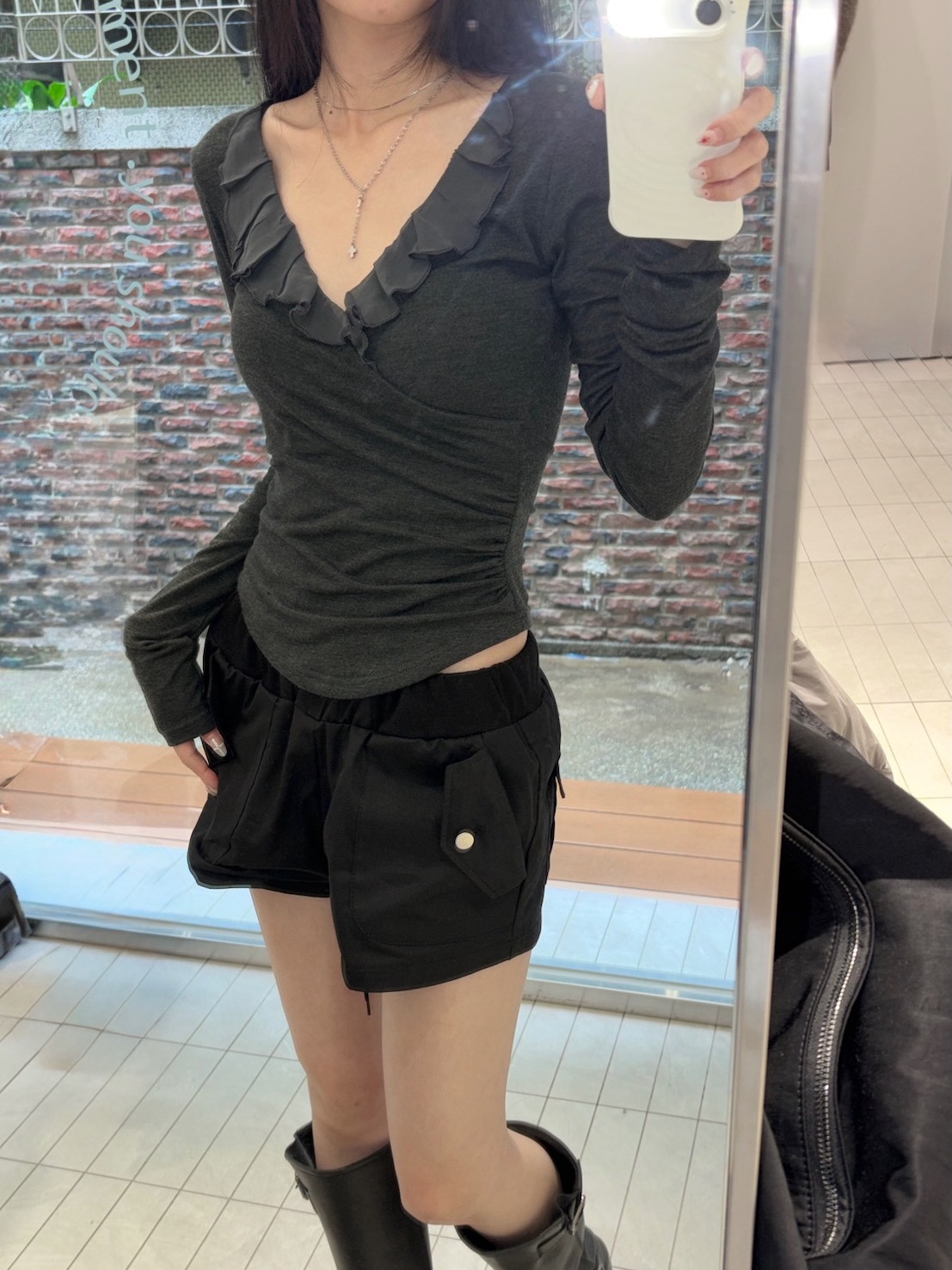 預購交叉雪紡荷葉V領側腰抓皺上衣