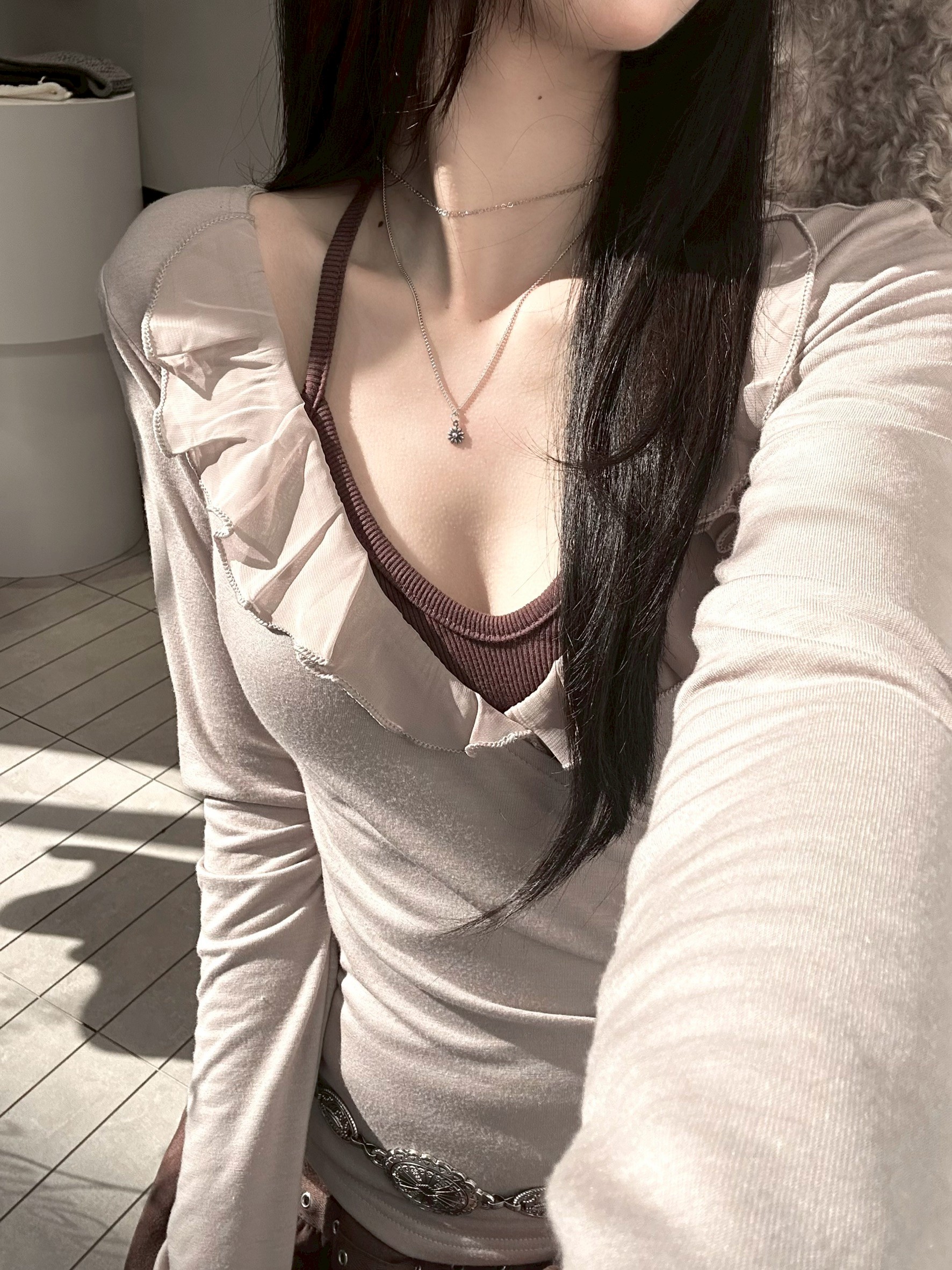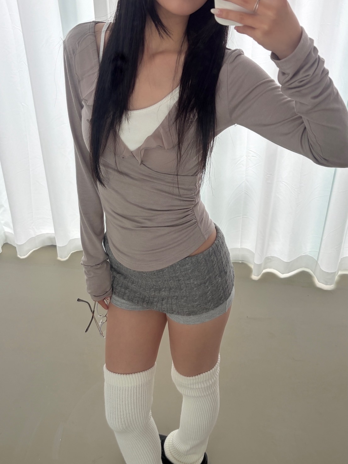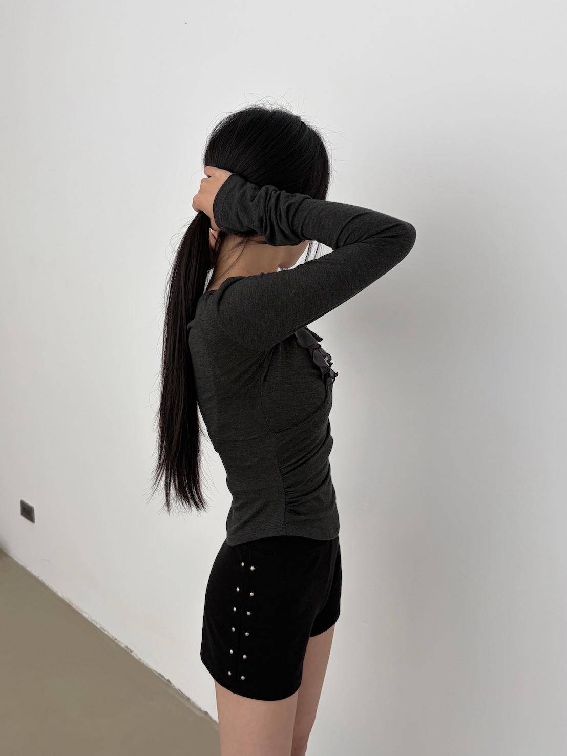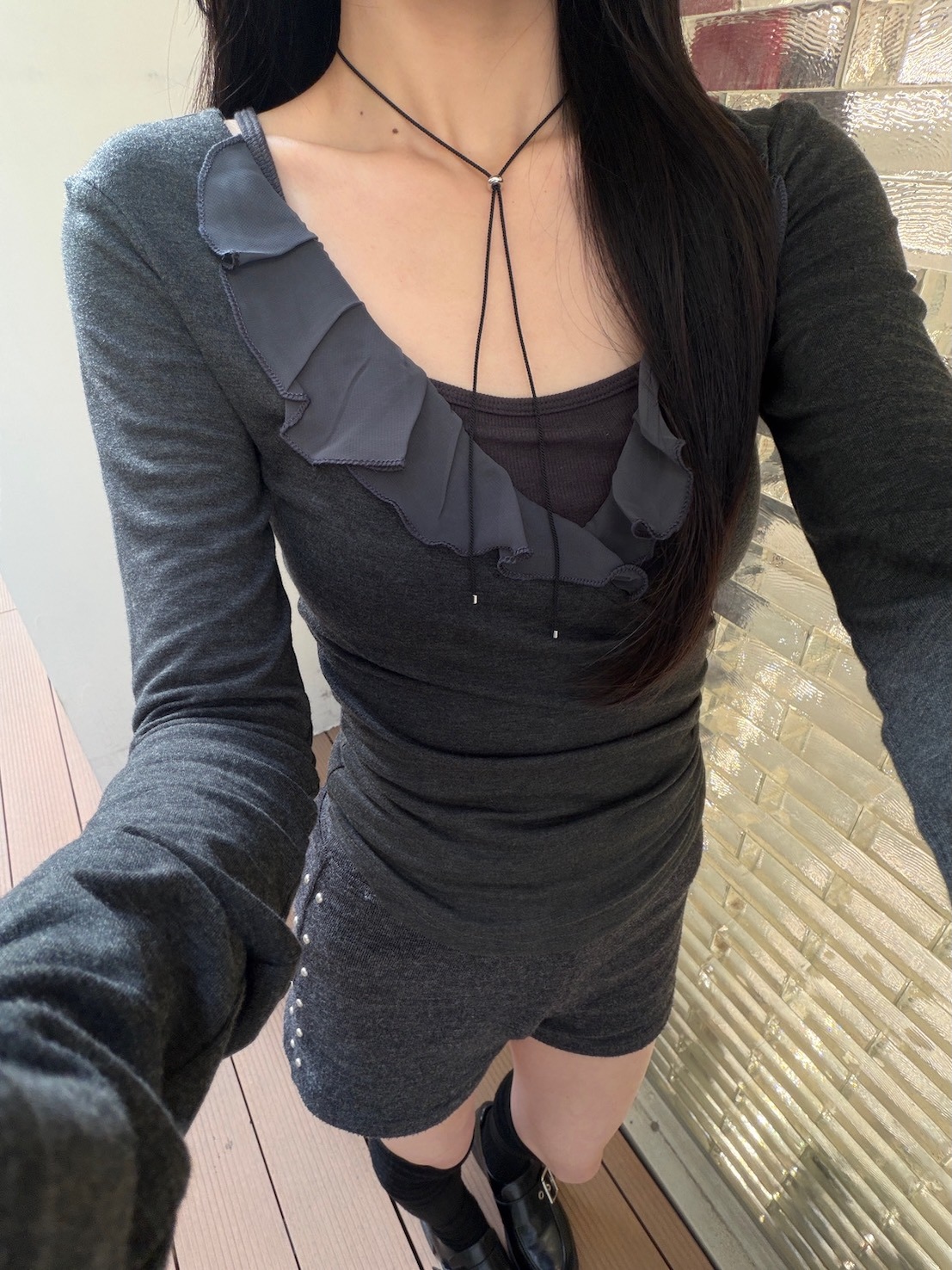預購交叉雪紡荷葉V領側腰抓皺上衣