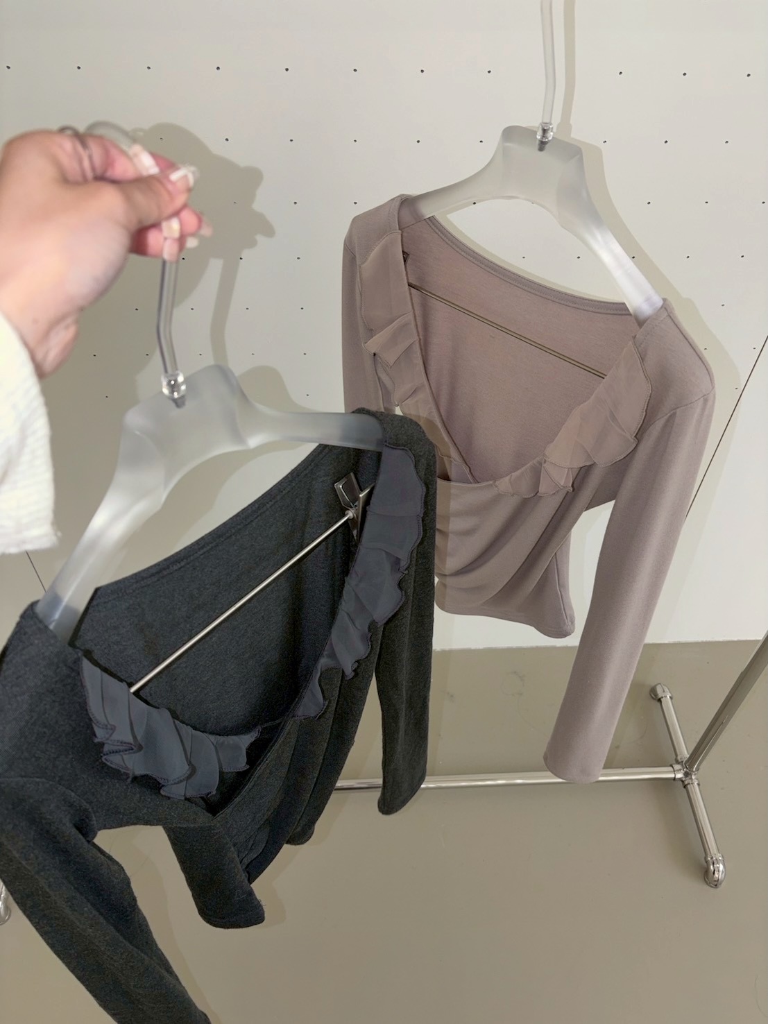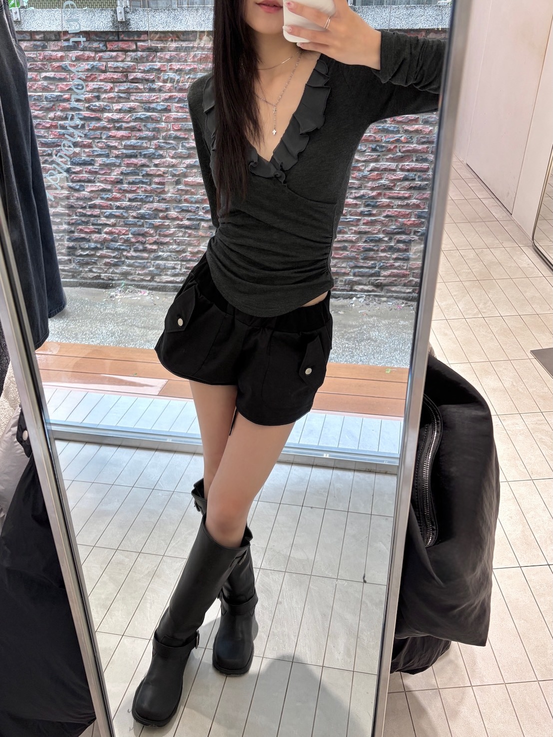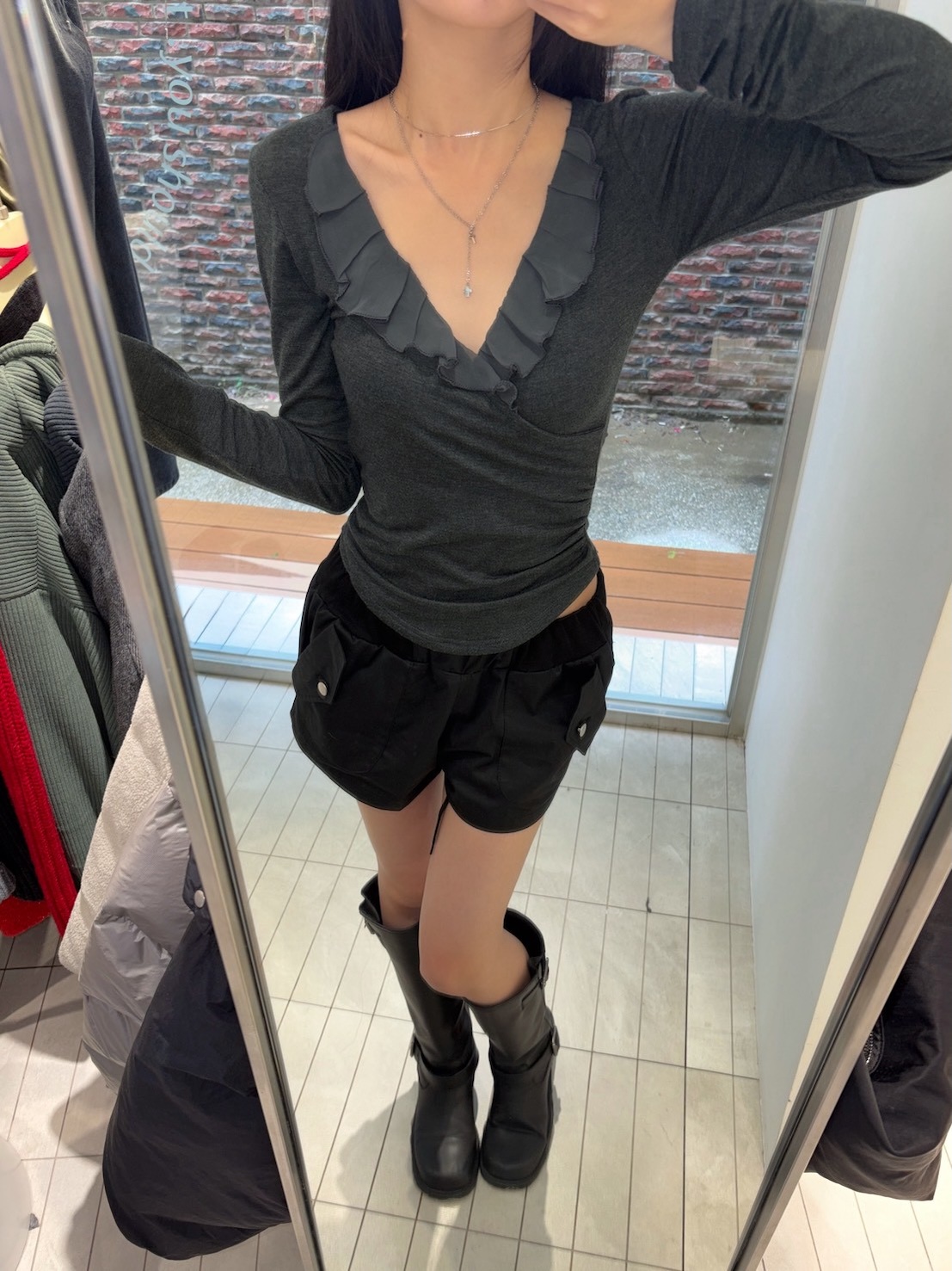2)未開釦眼、衣服線頭
