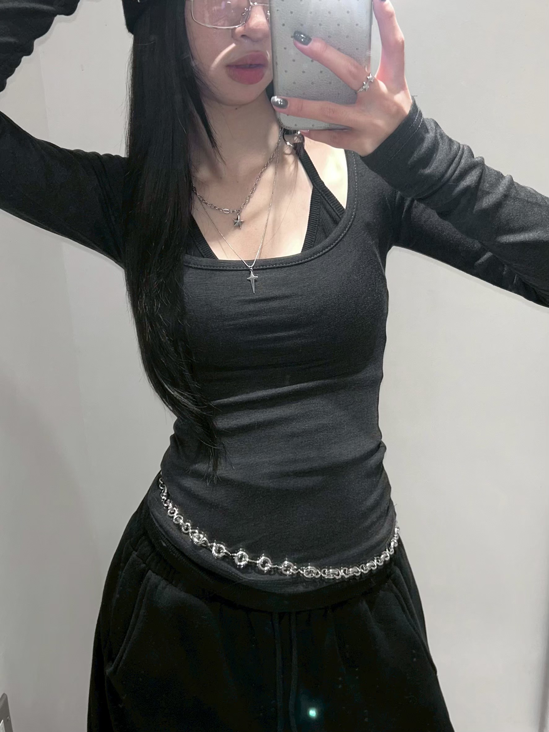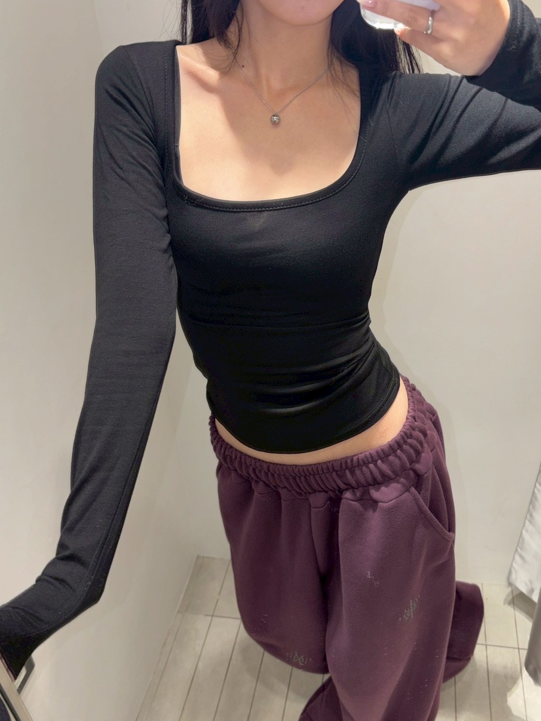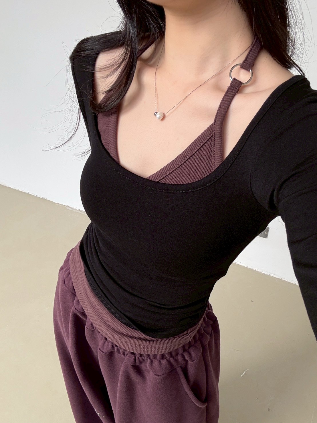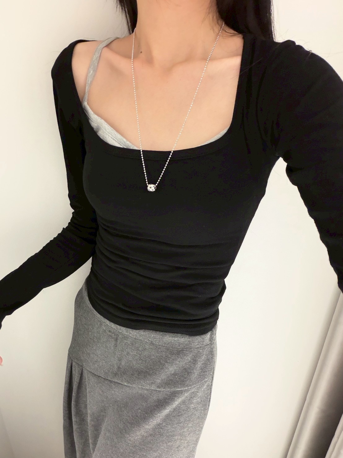 大方領內磨毛有腰身素T