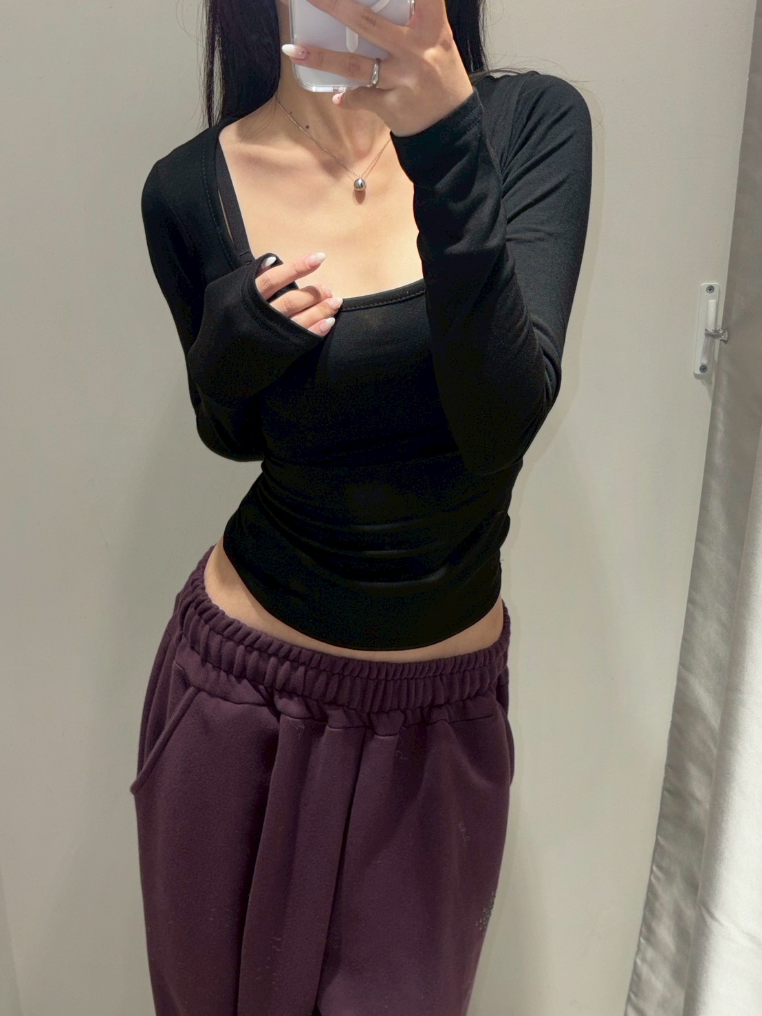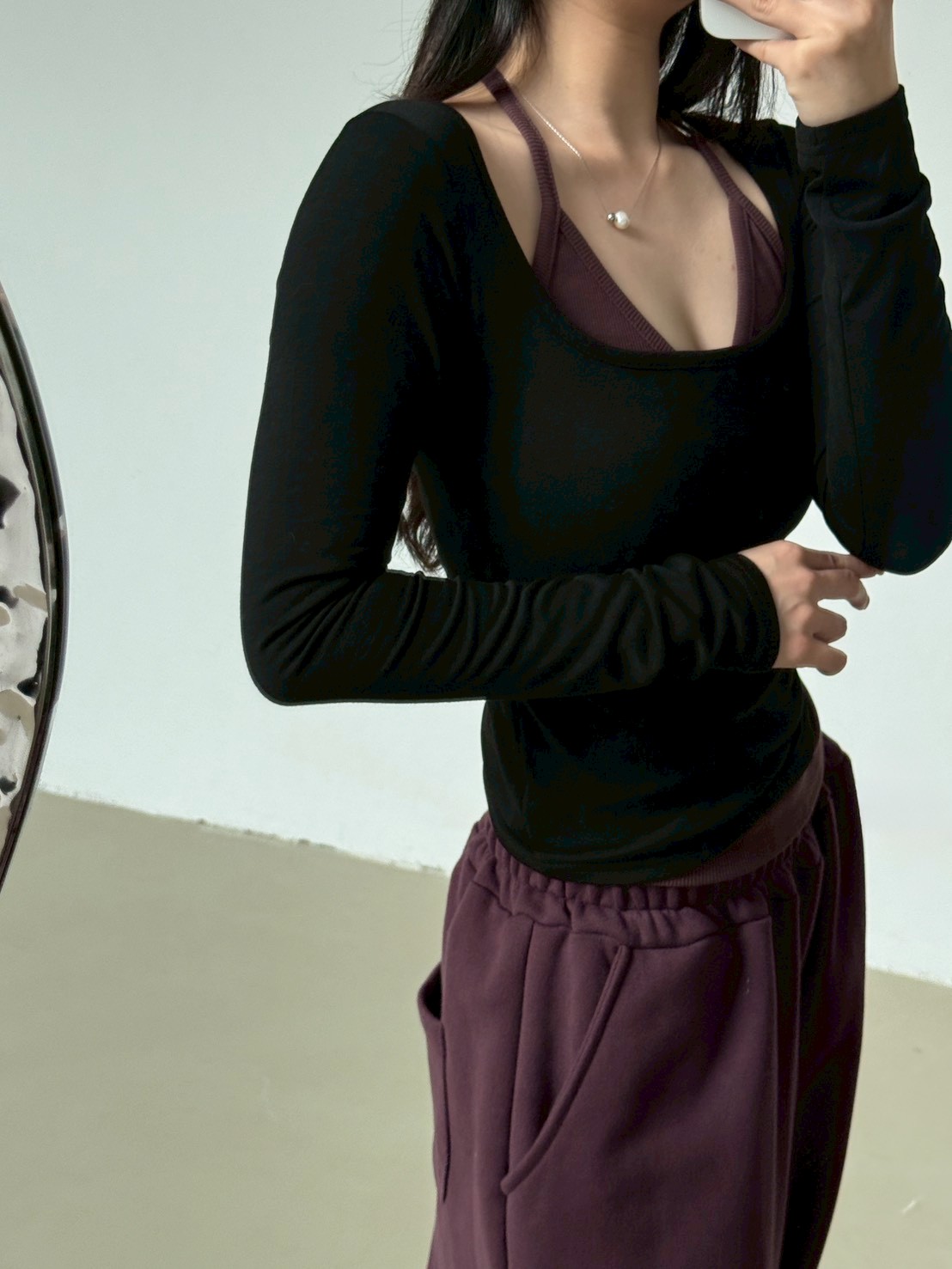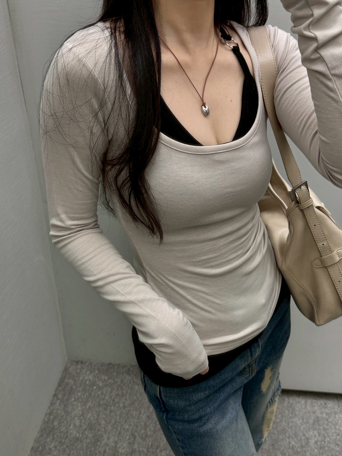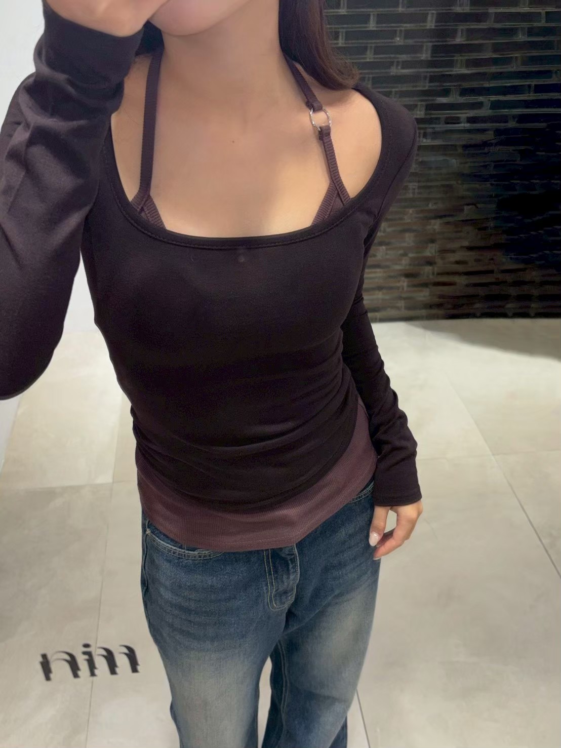 大方領內磨毛有腰身素T