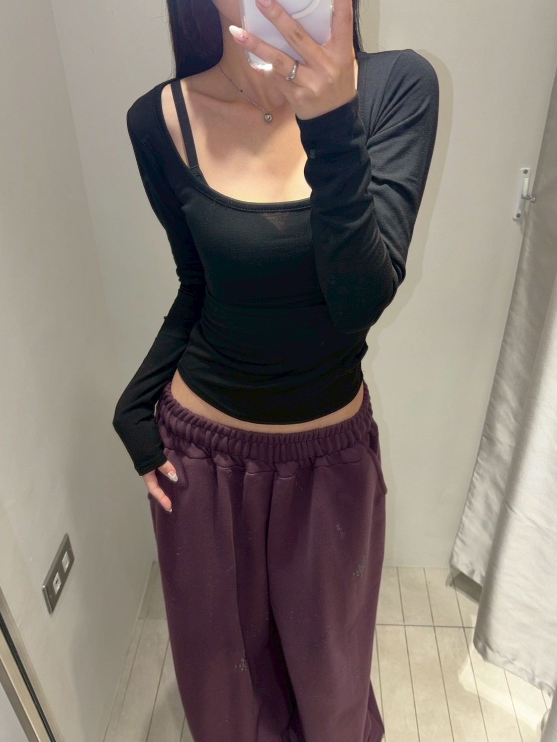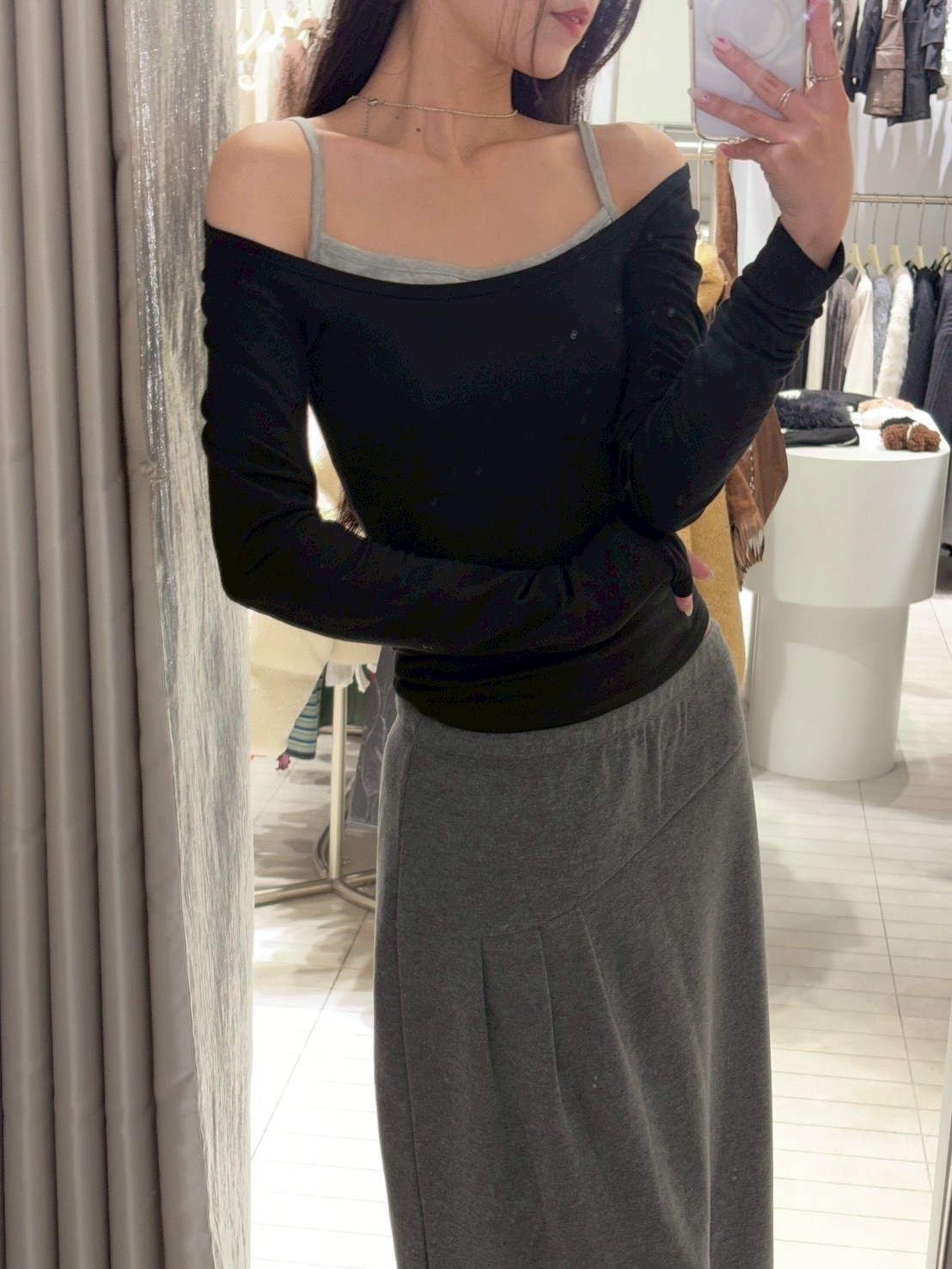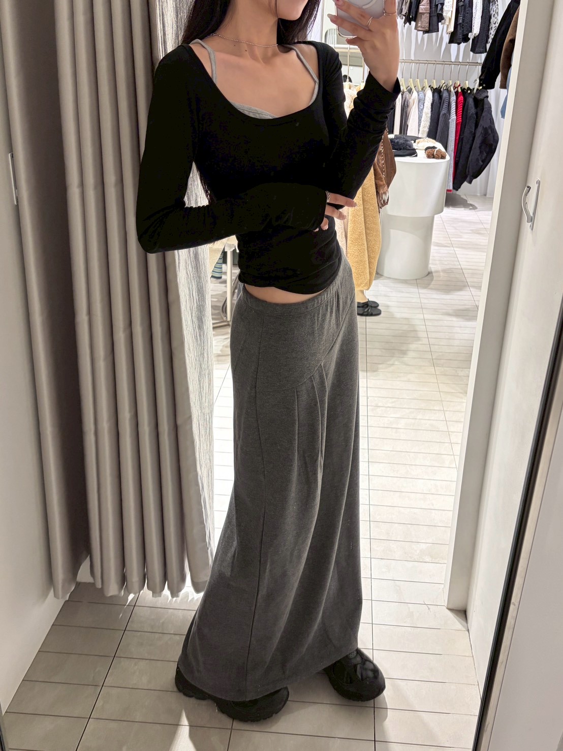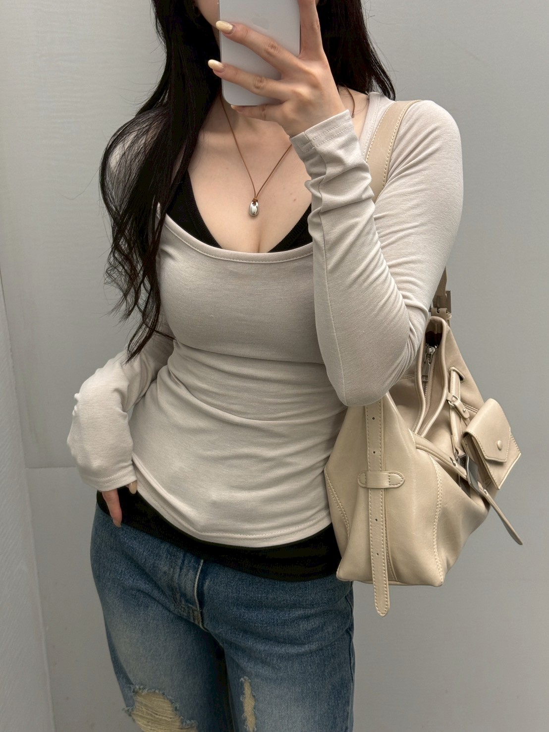 大方領內磨毛有腰身素T