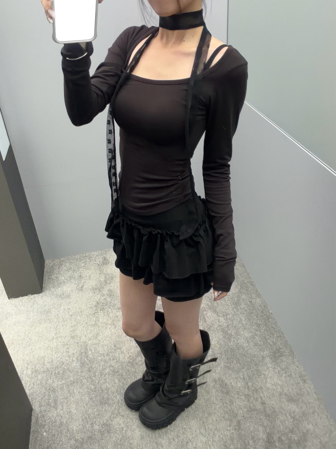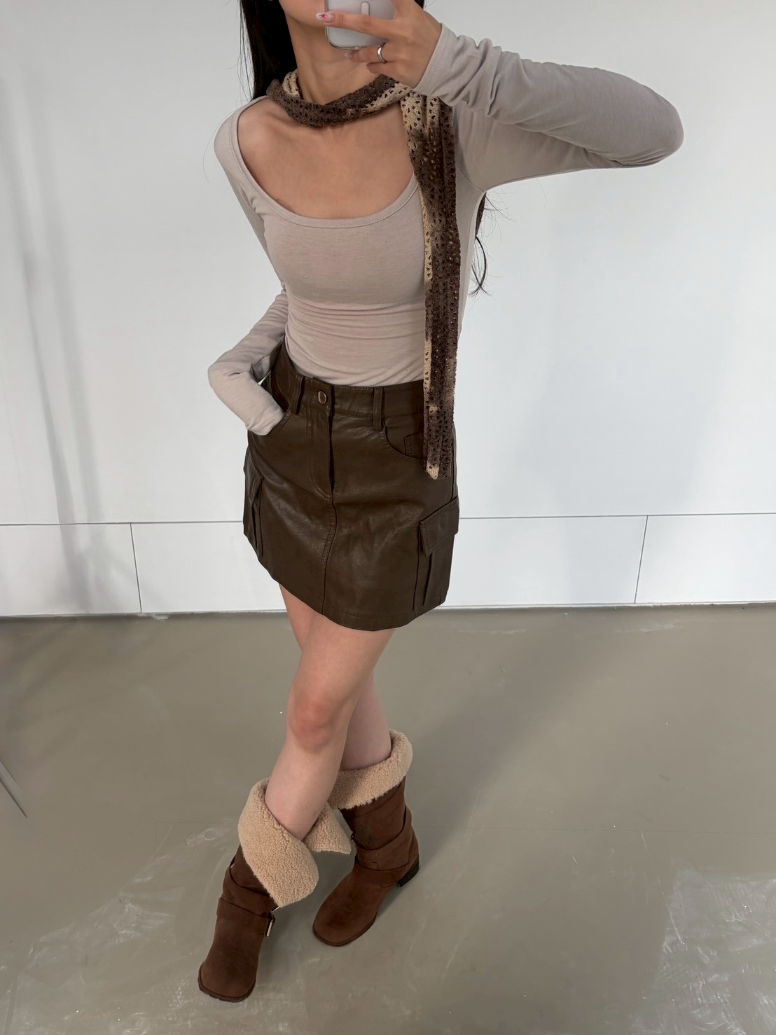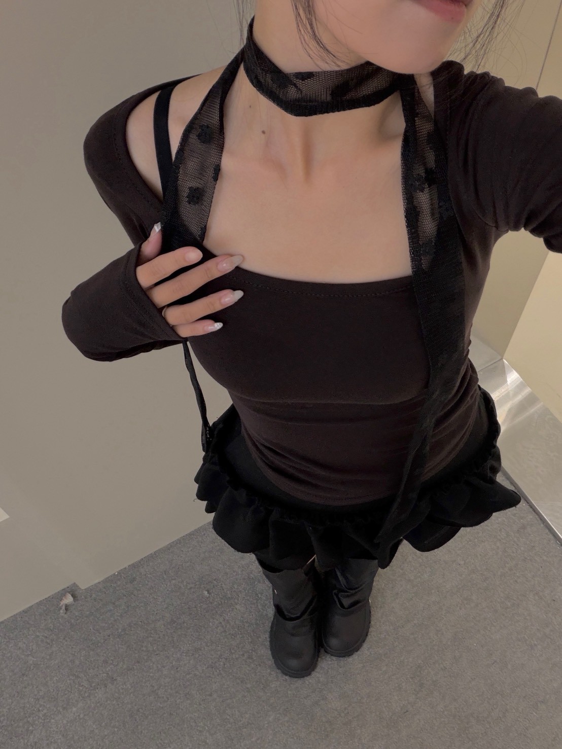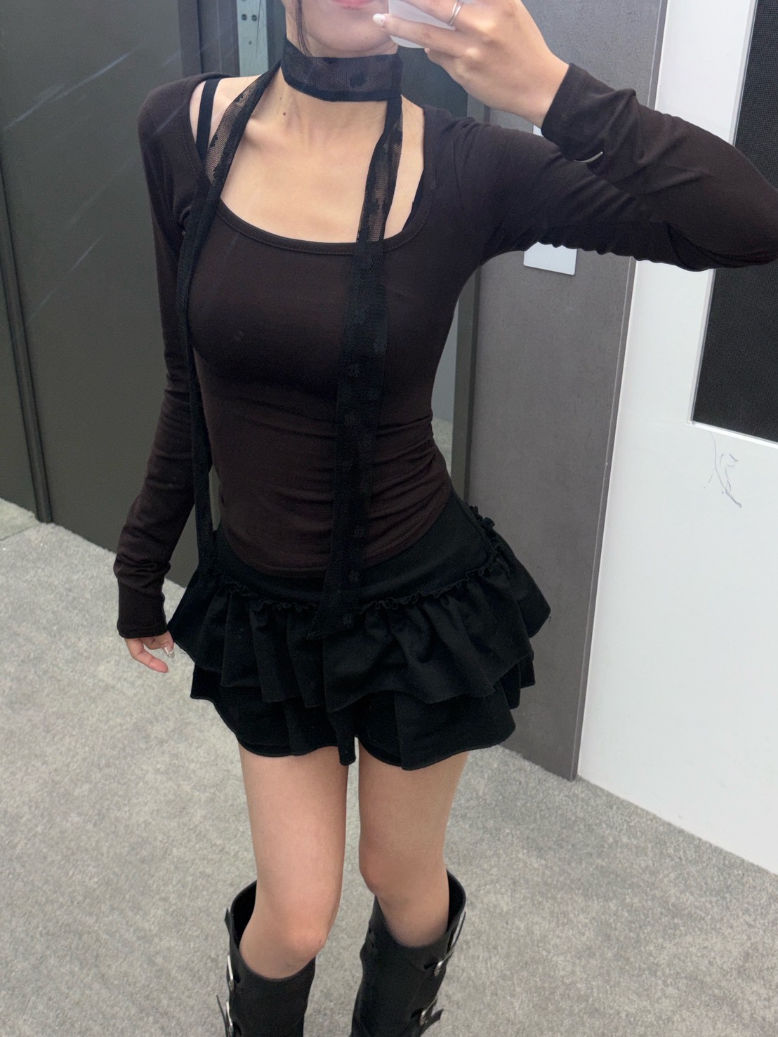 大方領內磨毛有腰身素T
