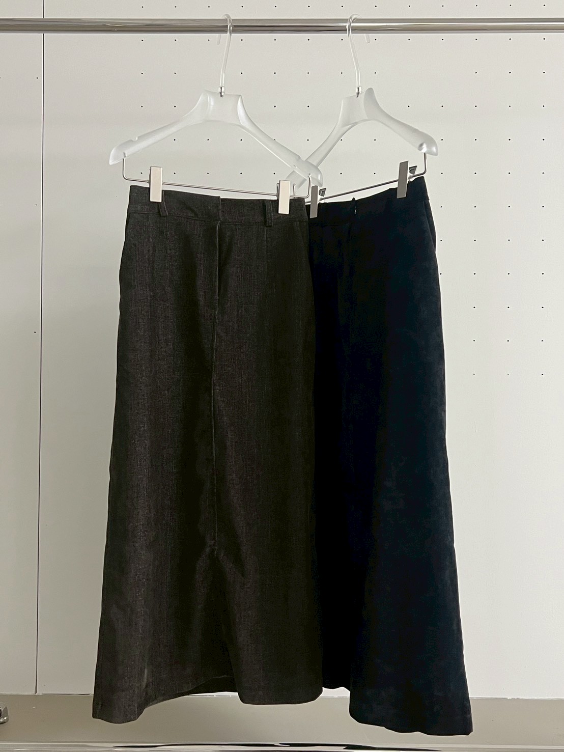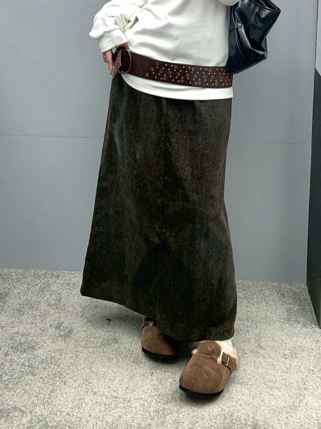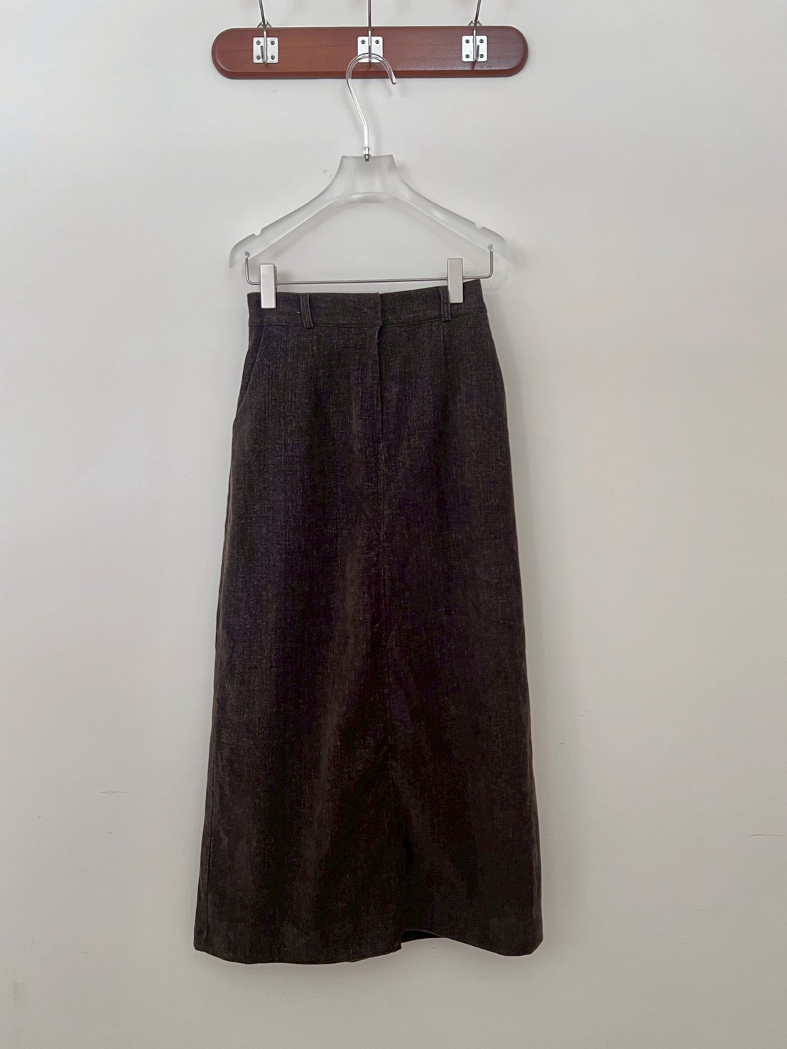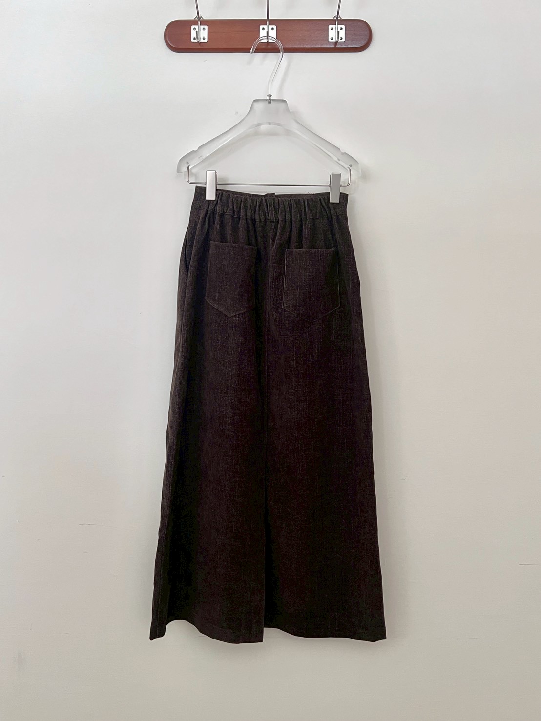 後口袋開岔紋理感絨布長裙