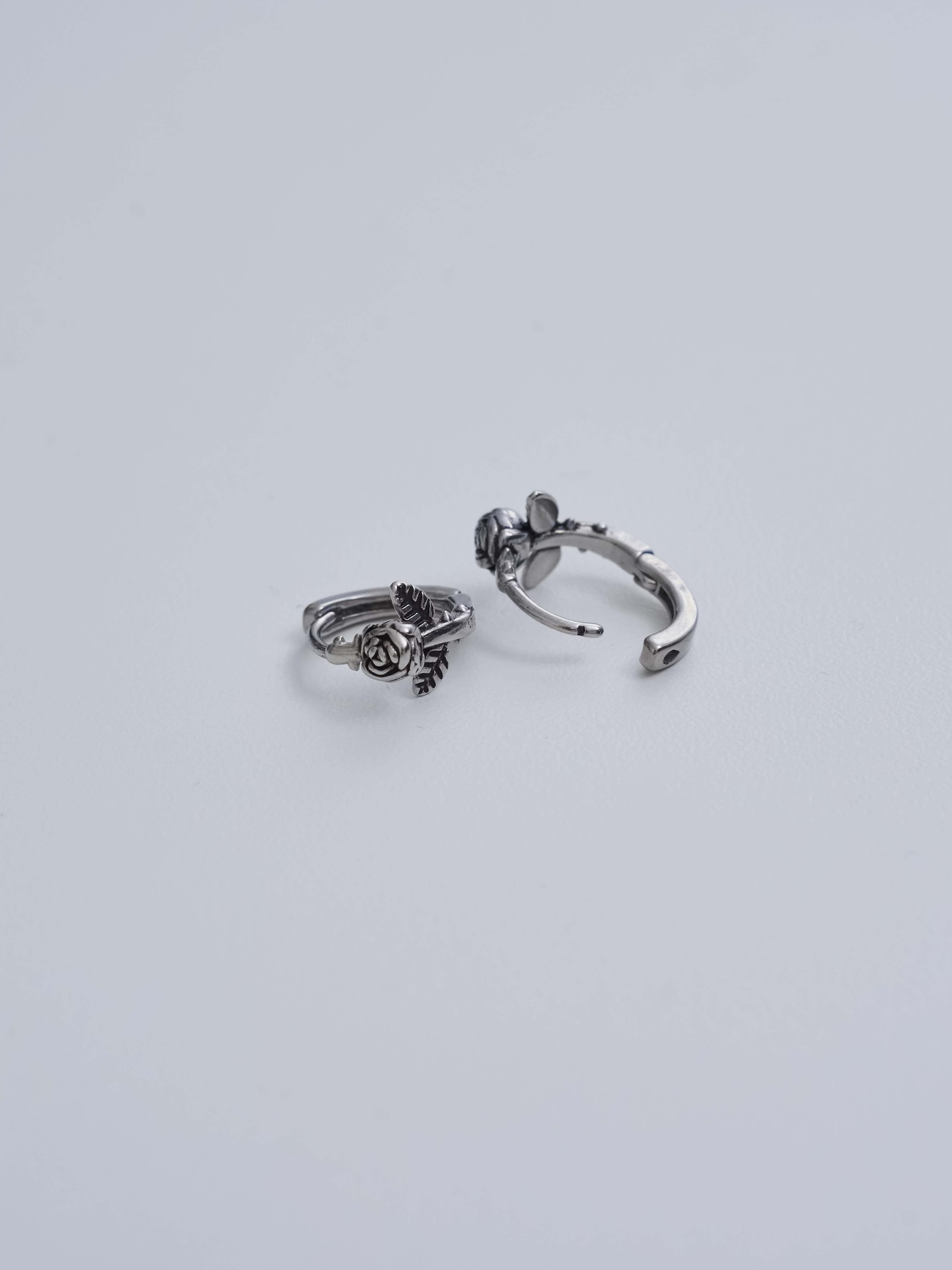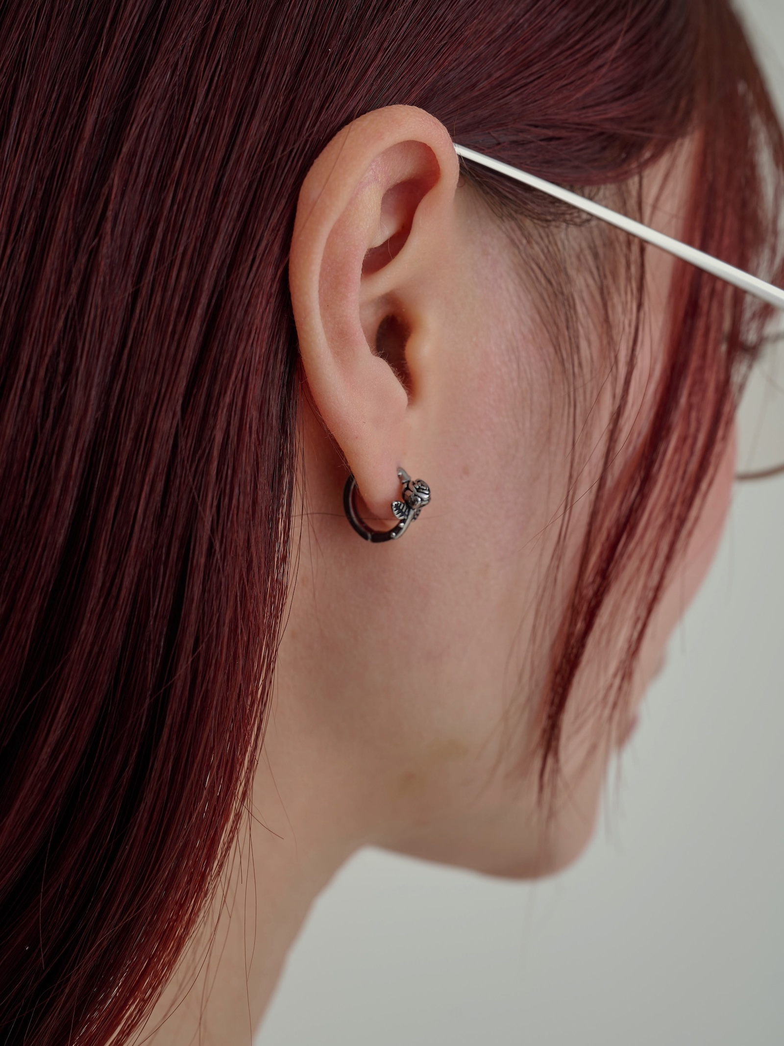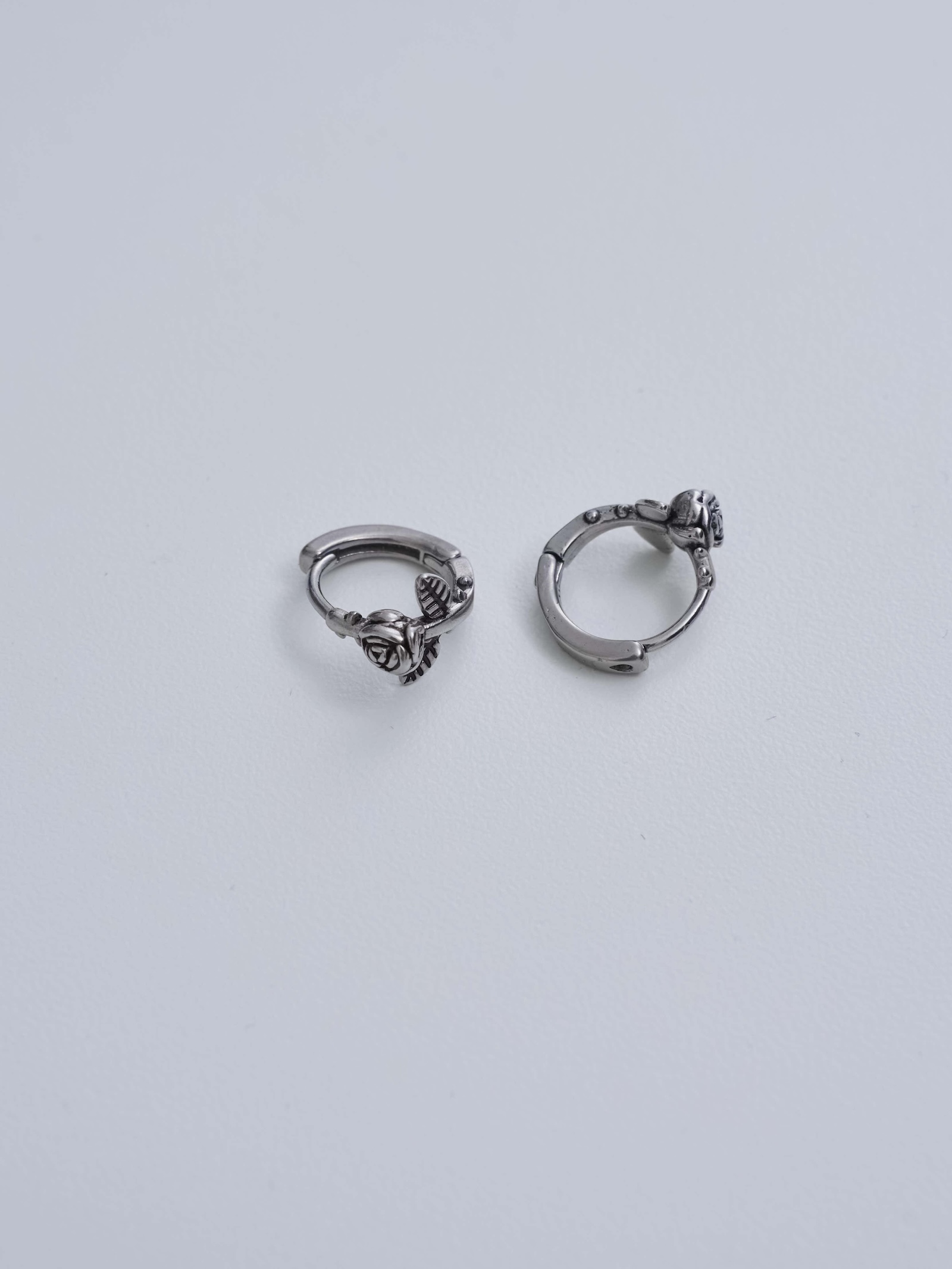 燻黑玫瑰花壓釦式耳圈