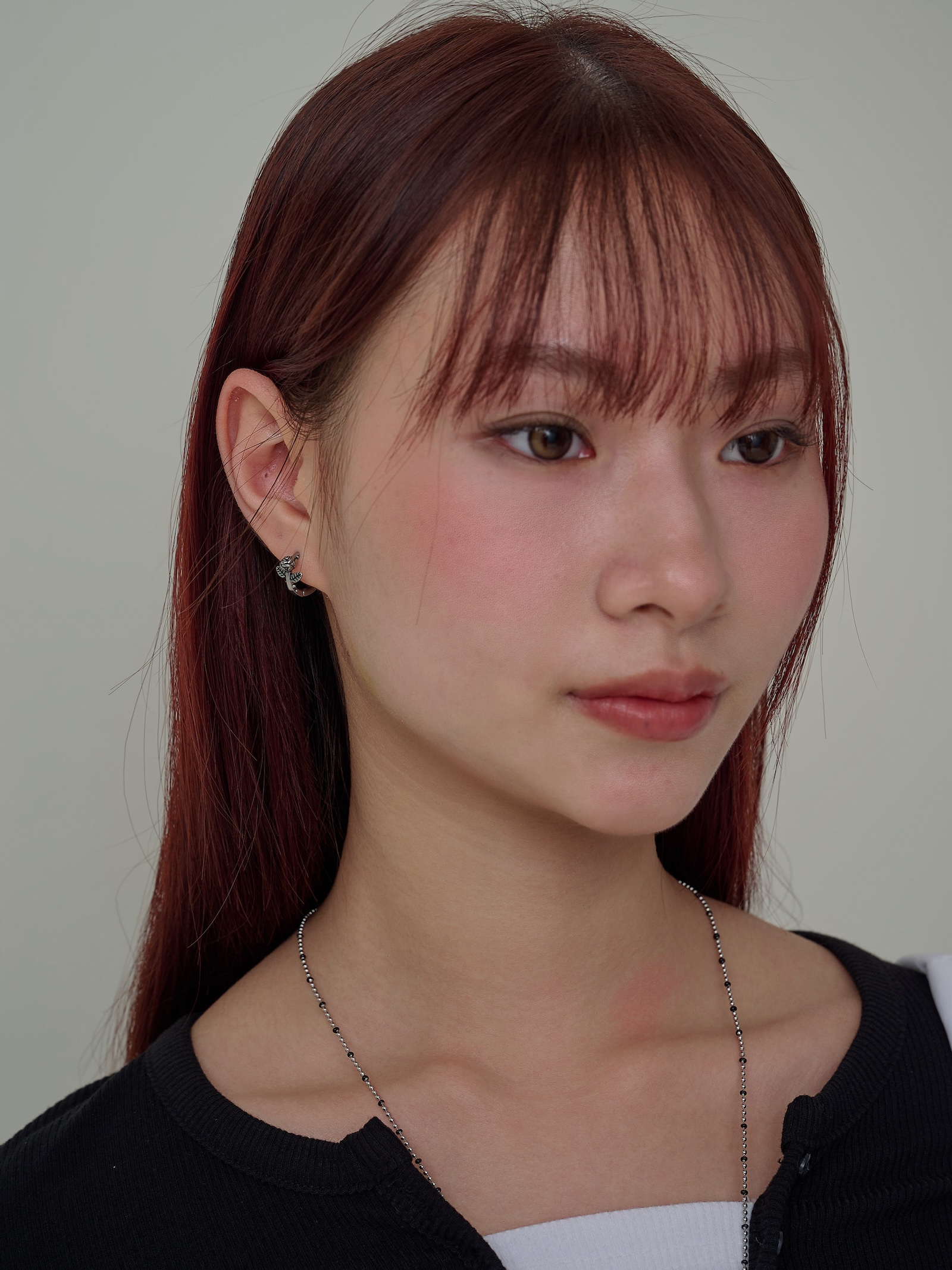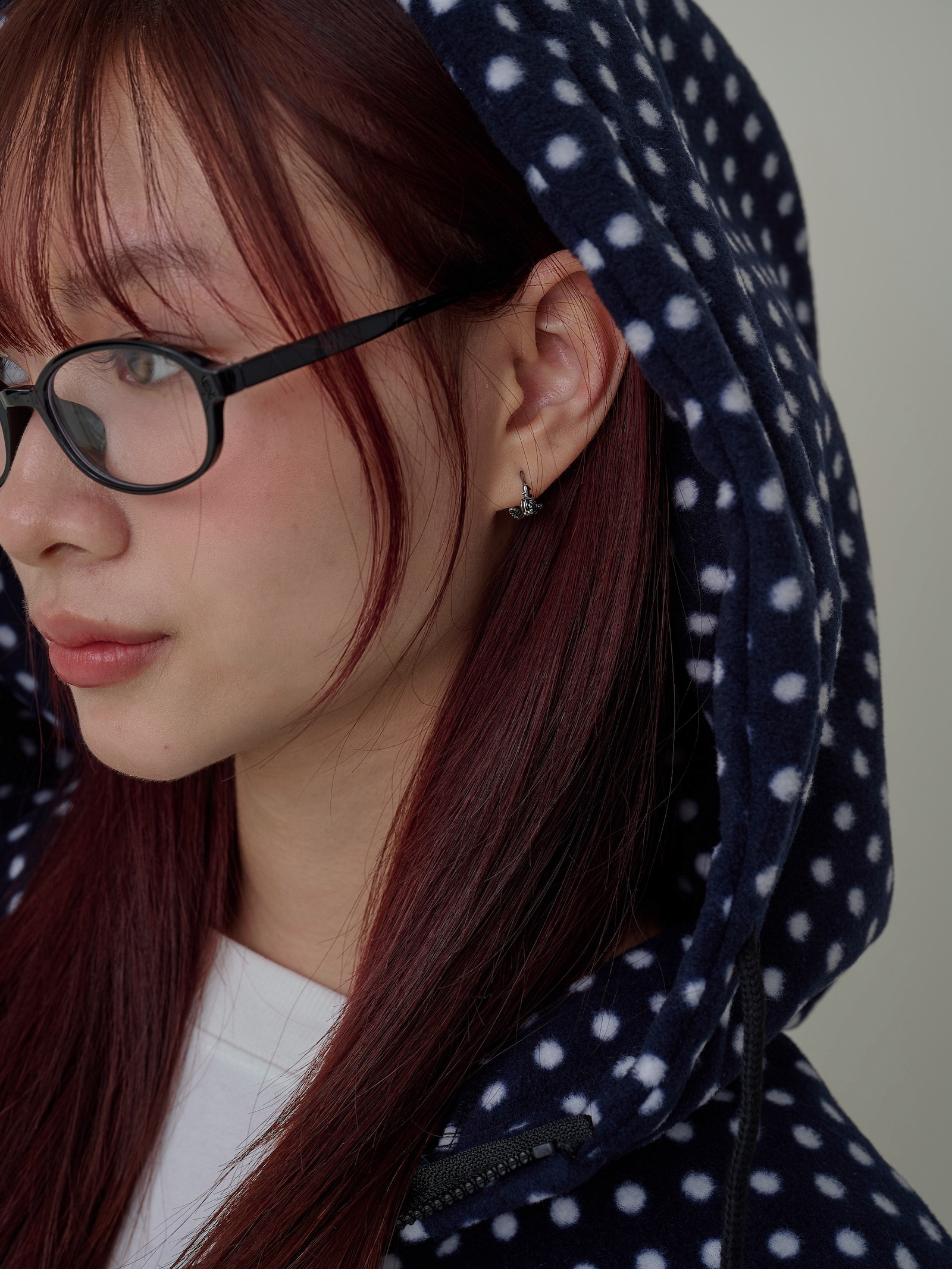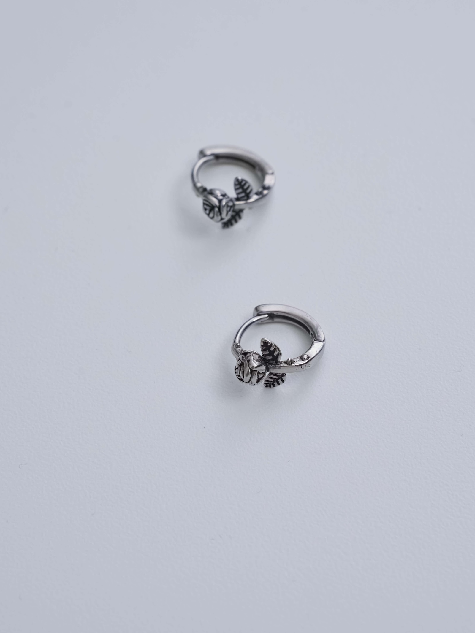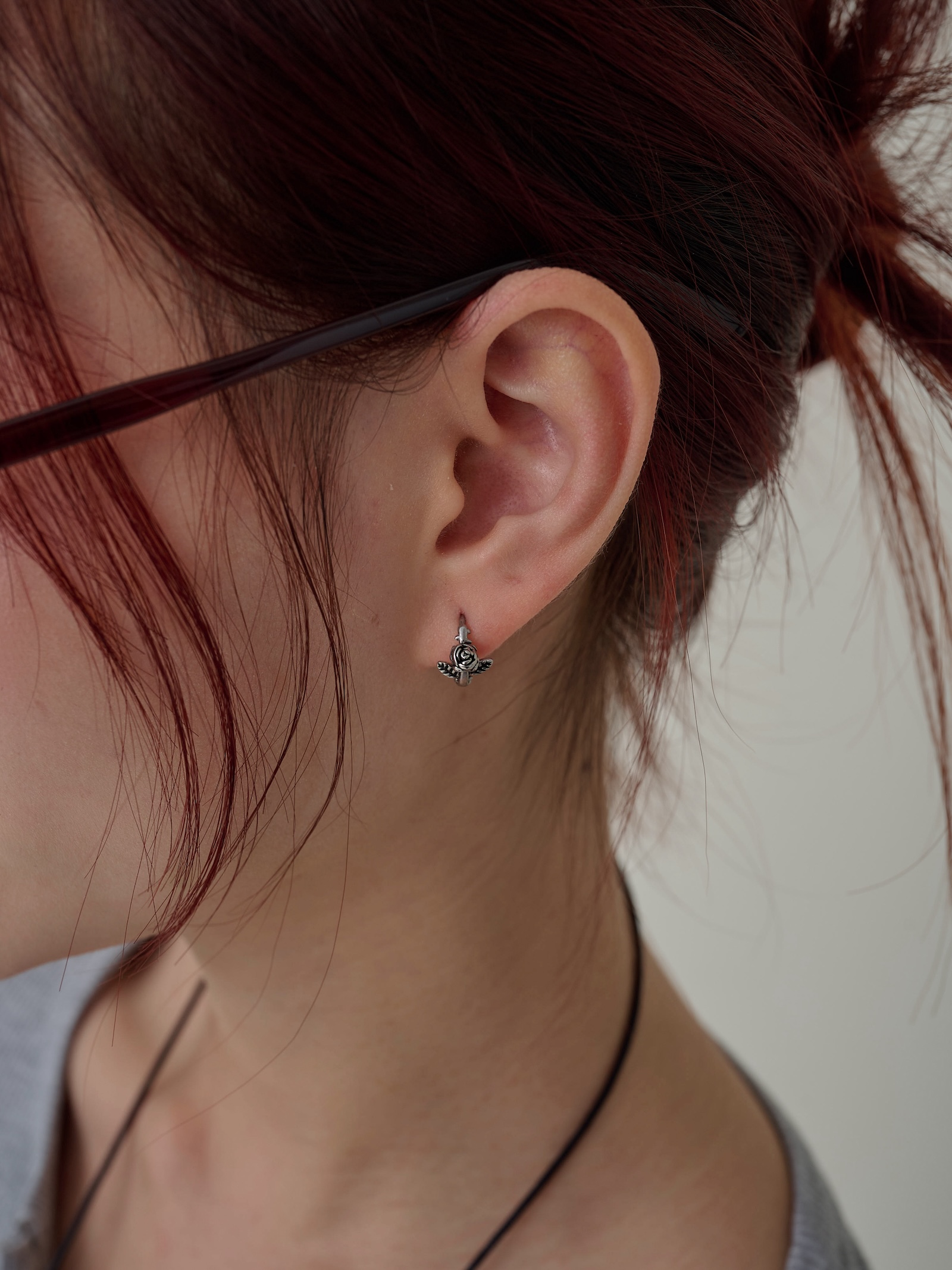 燻黑玫瑰花壓釦式耳圈