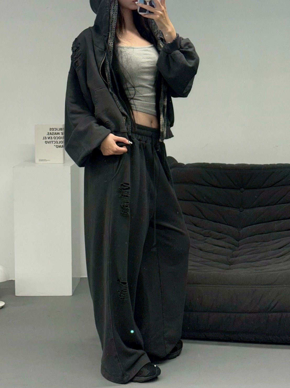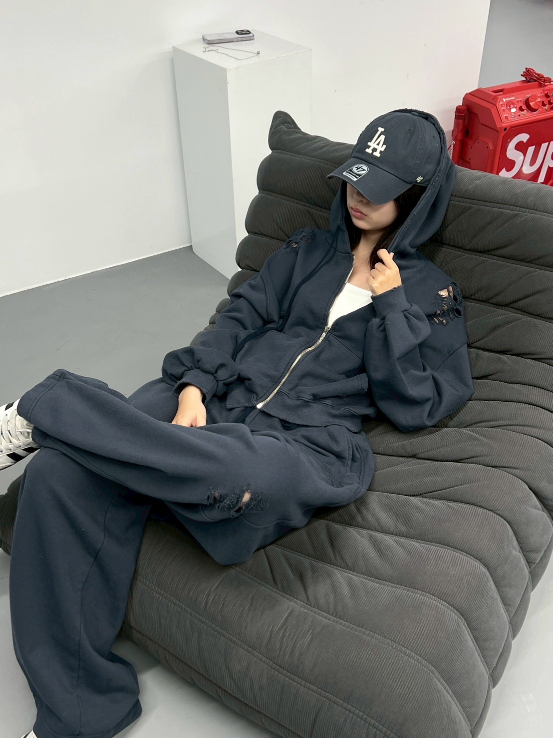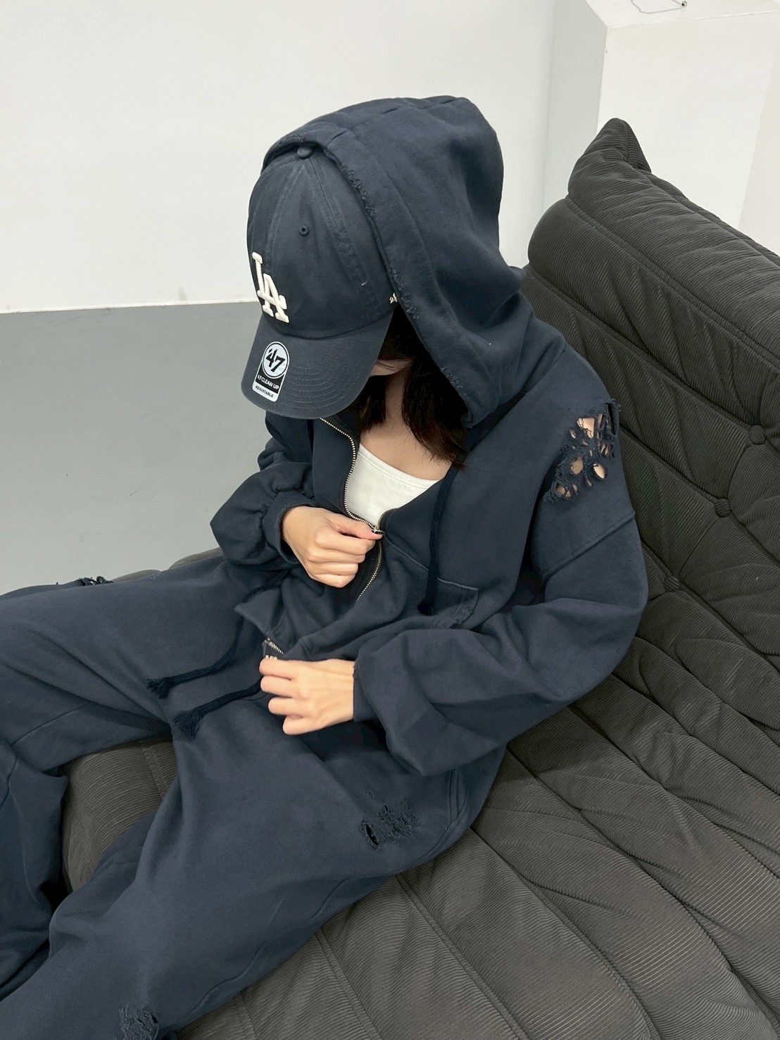 預購SET 區塊破壞連帽外套+口袋棉褲