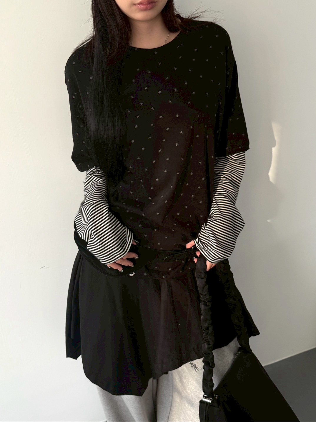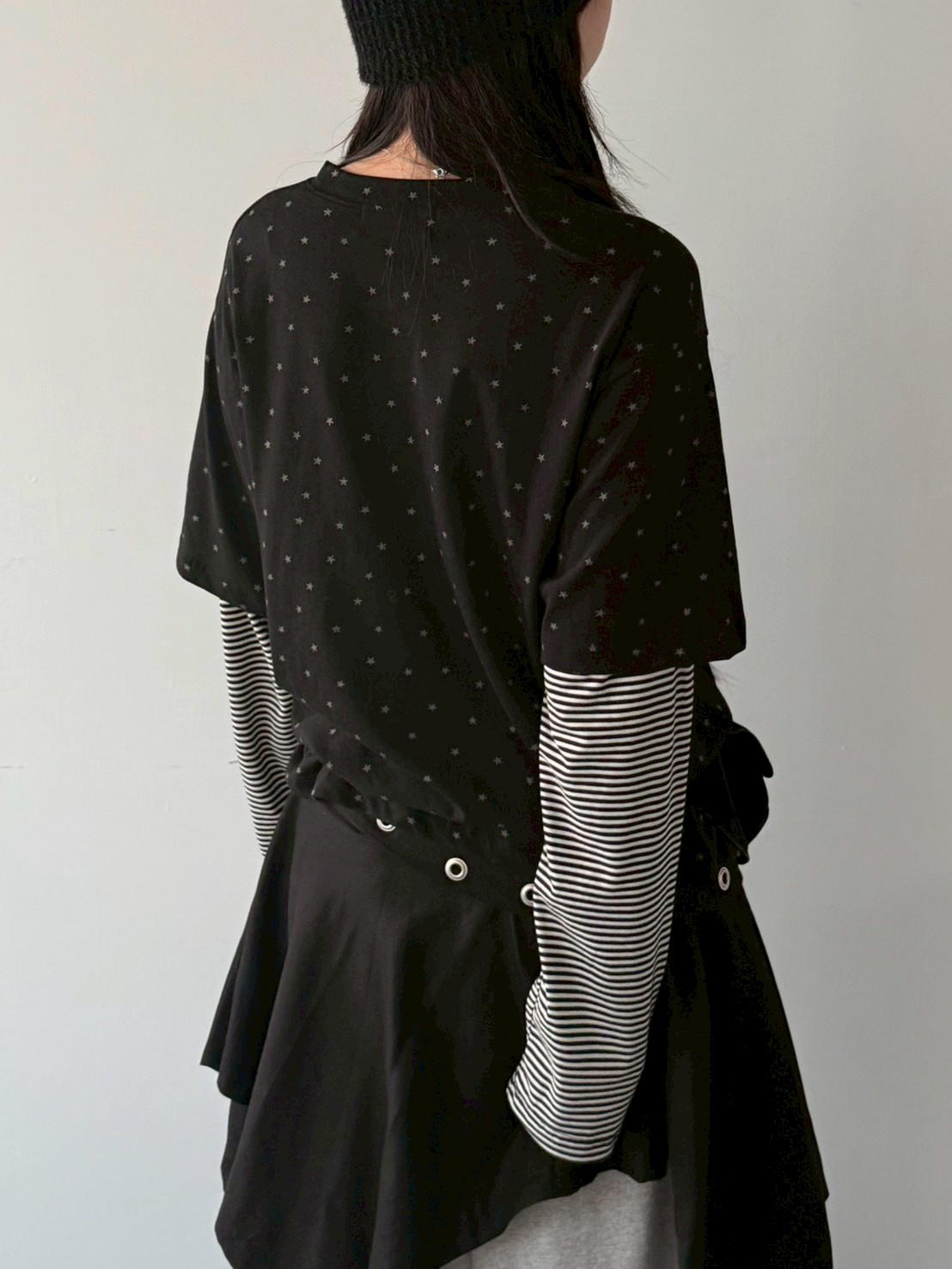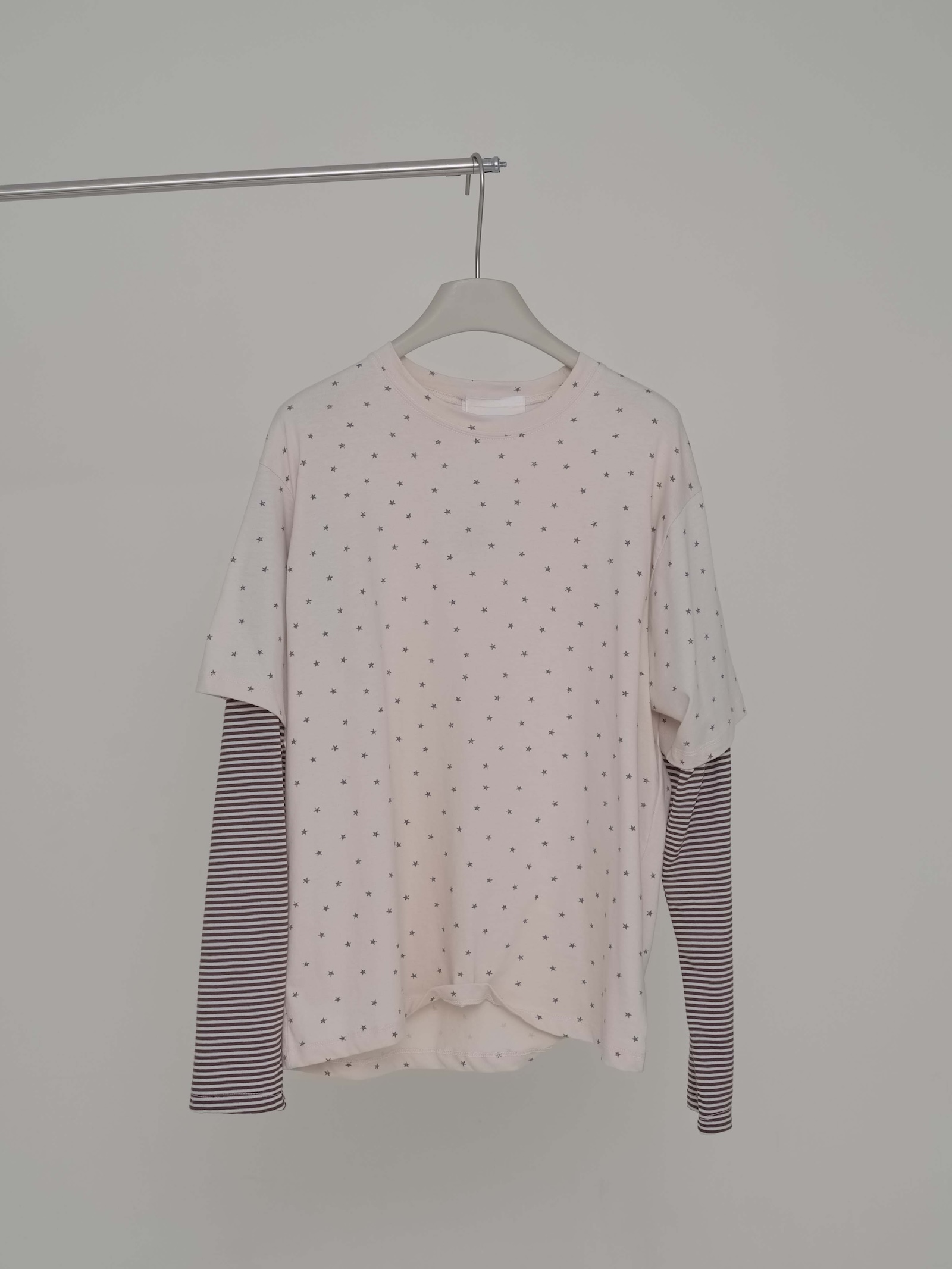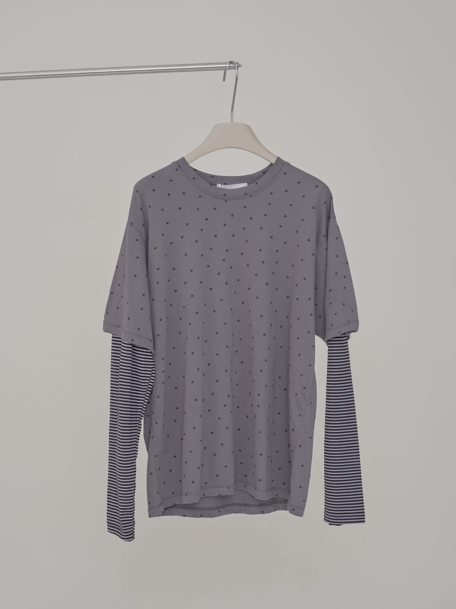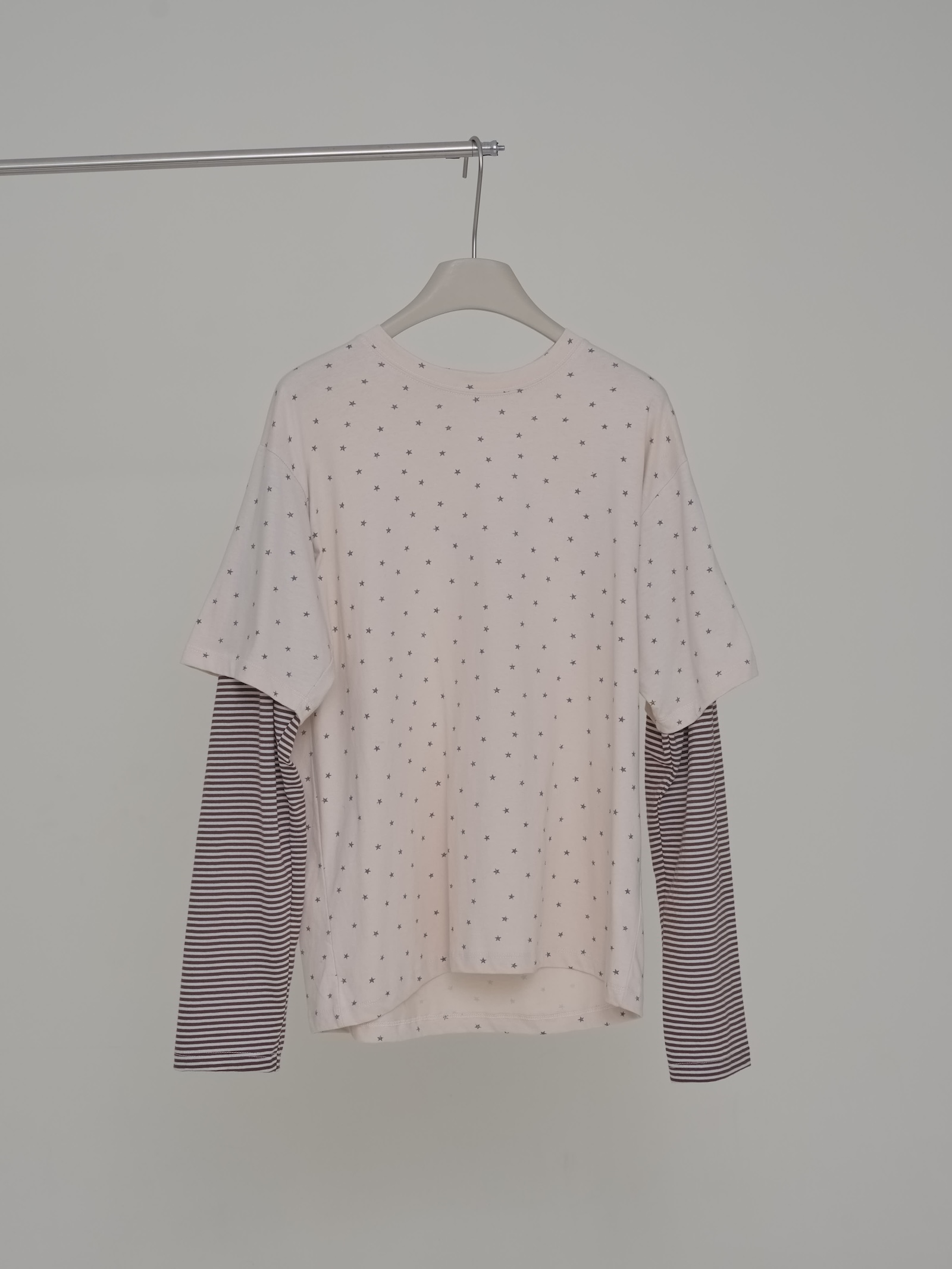 預購滿版星星袖橫條假2件上衣