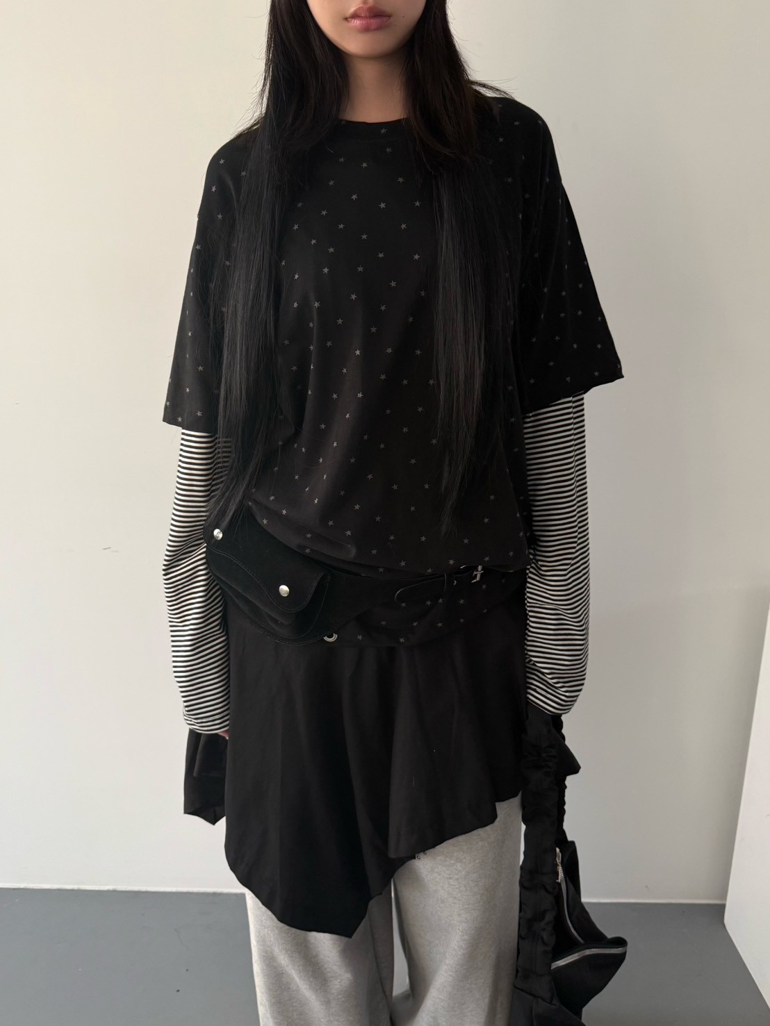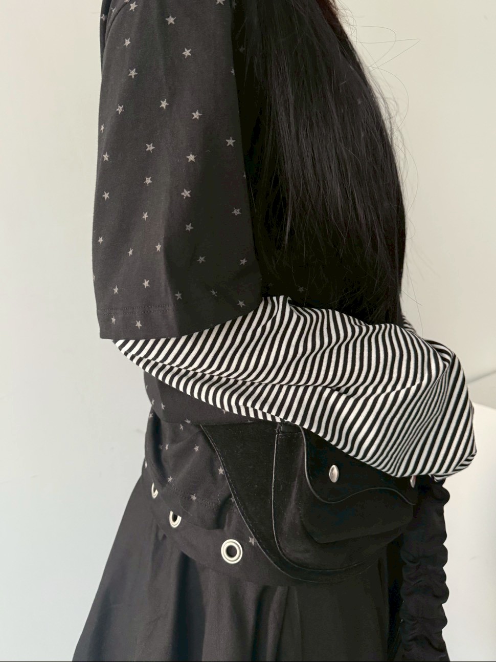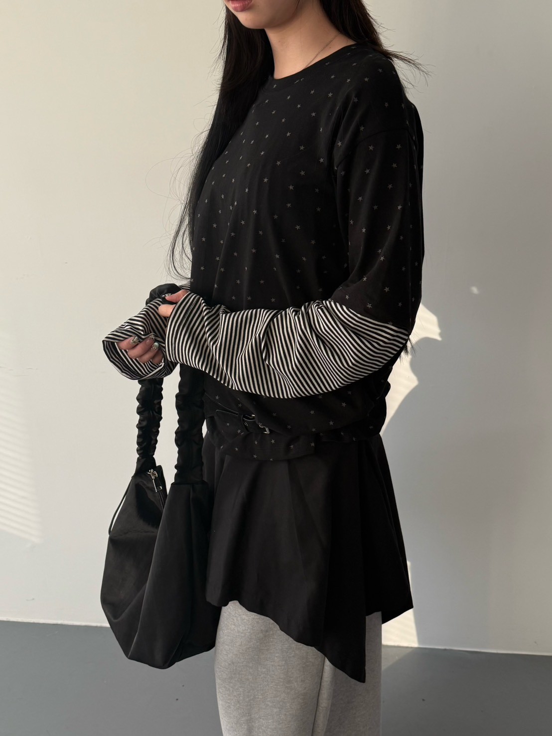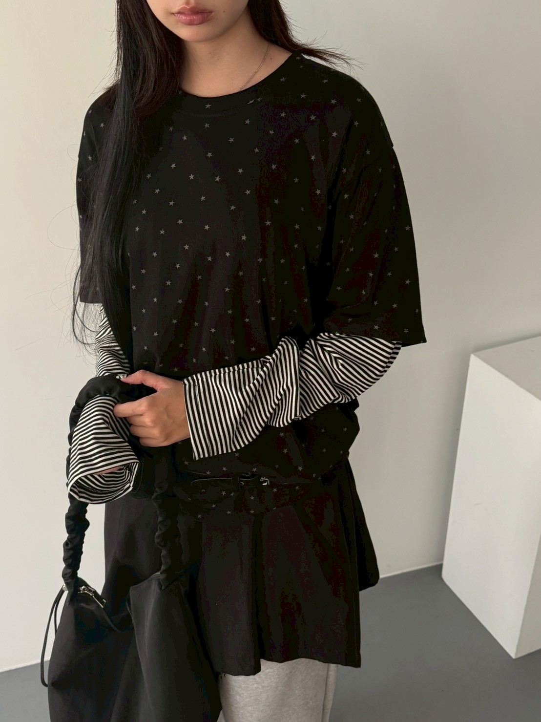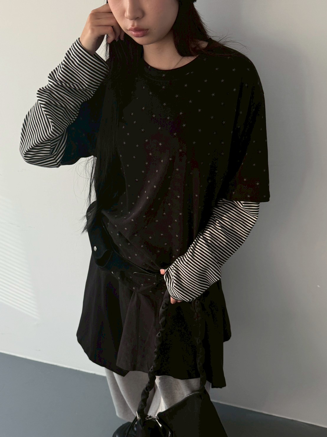預購滿版星星袖橫條假2件上衣