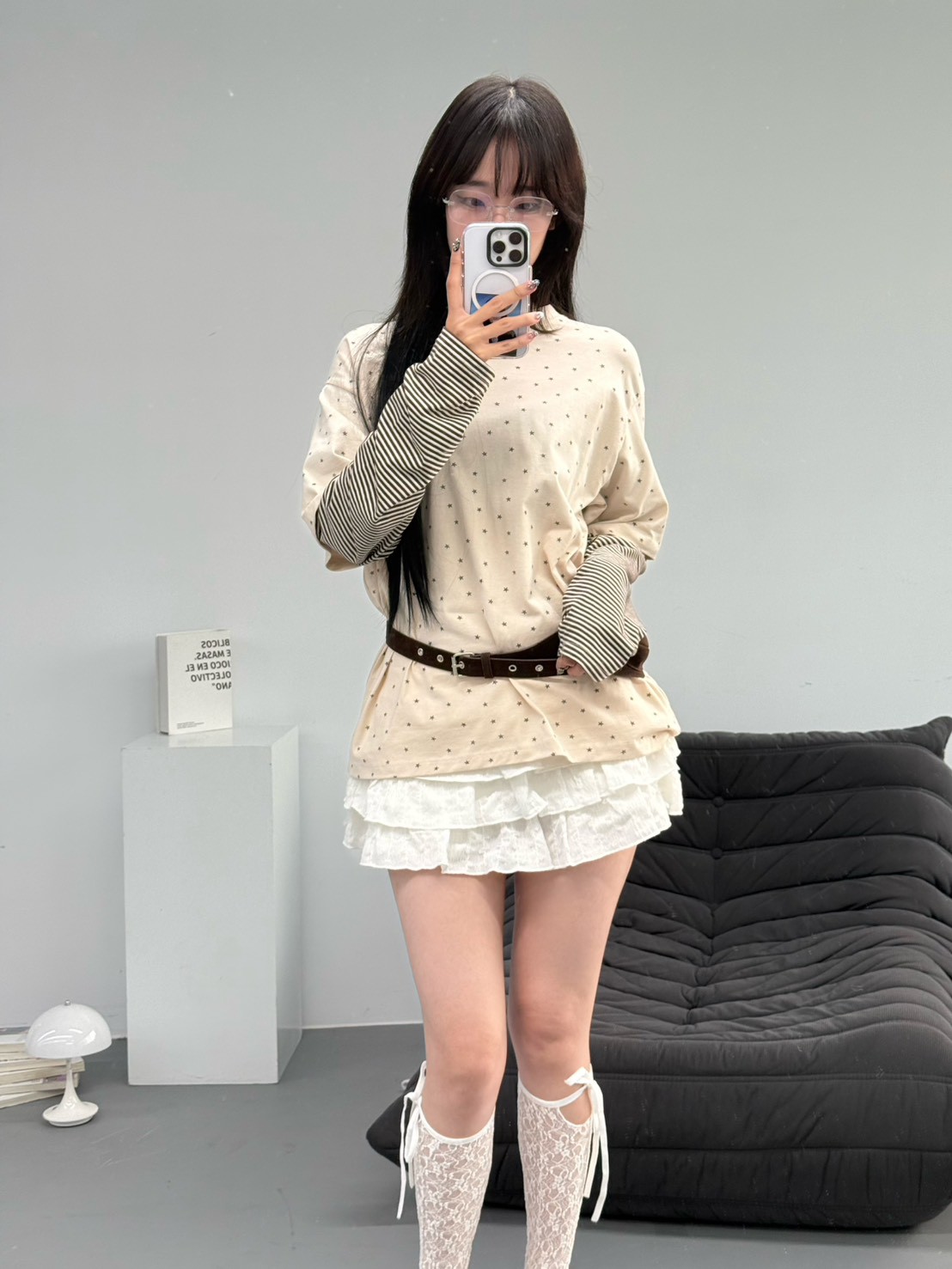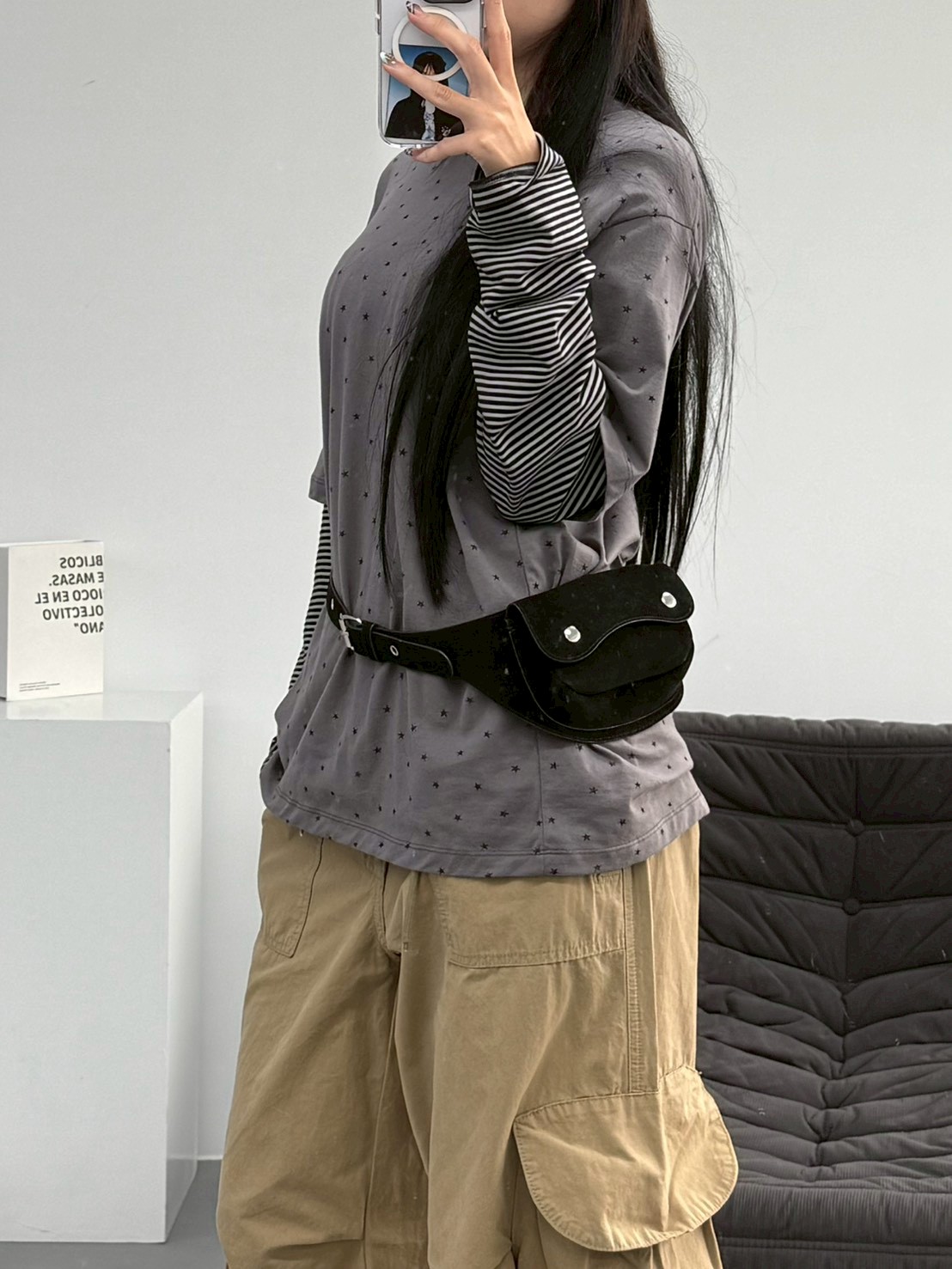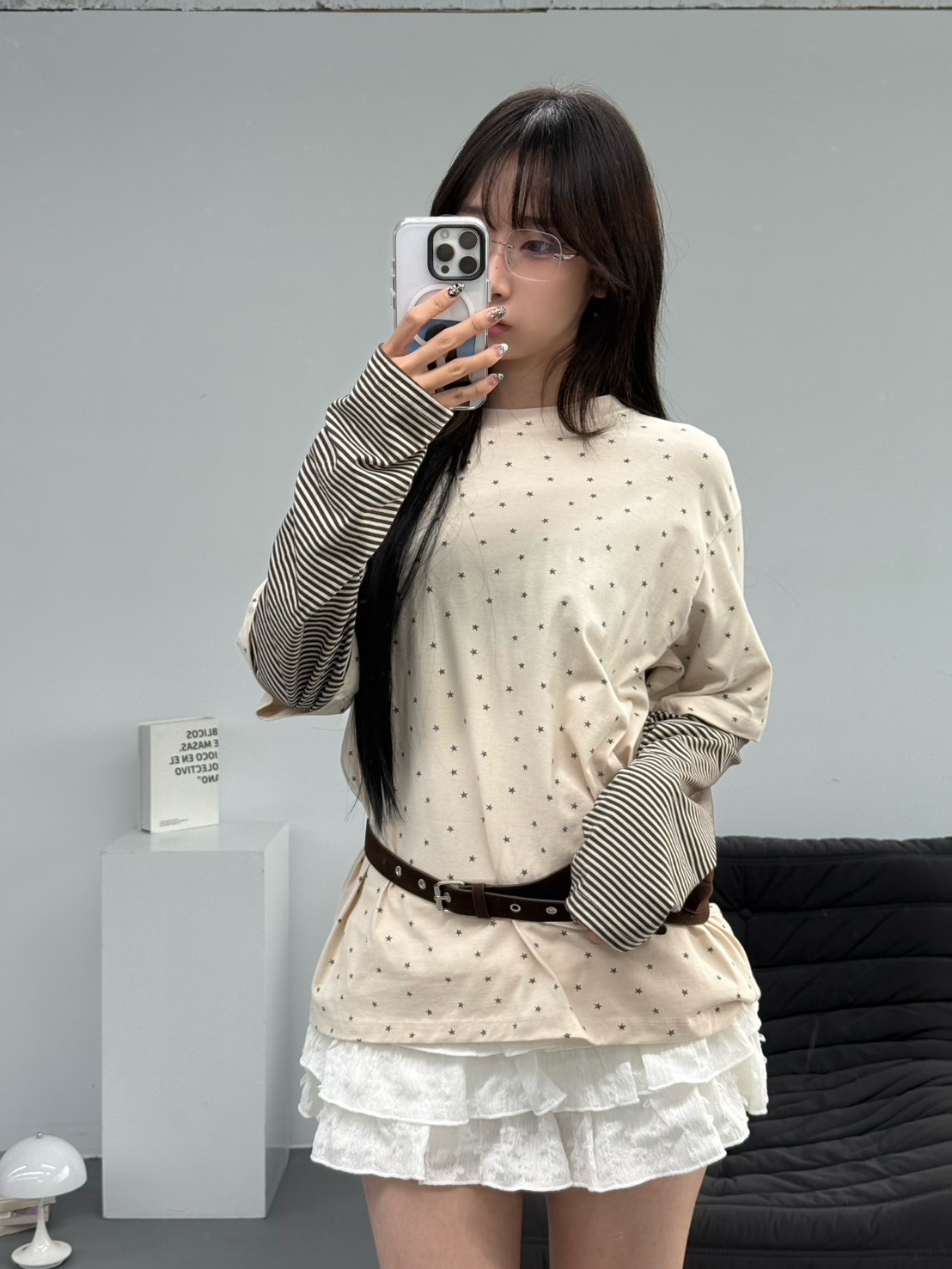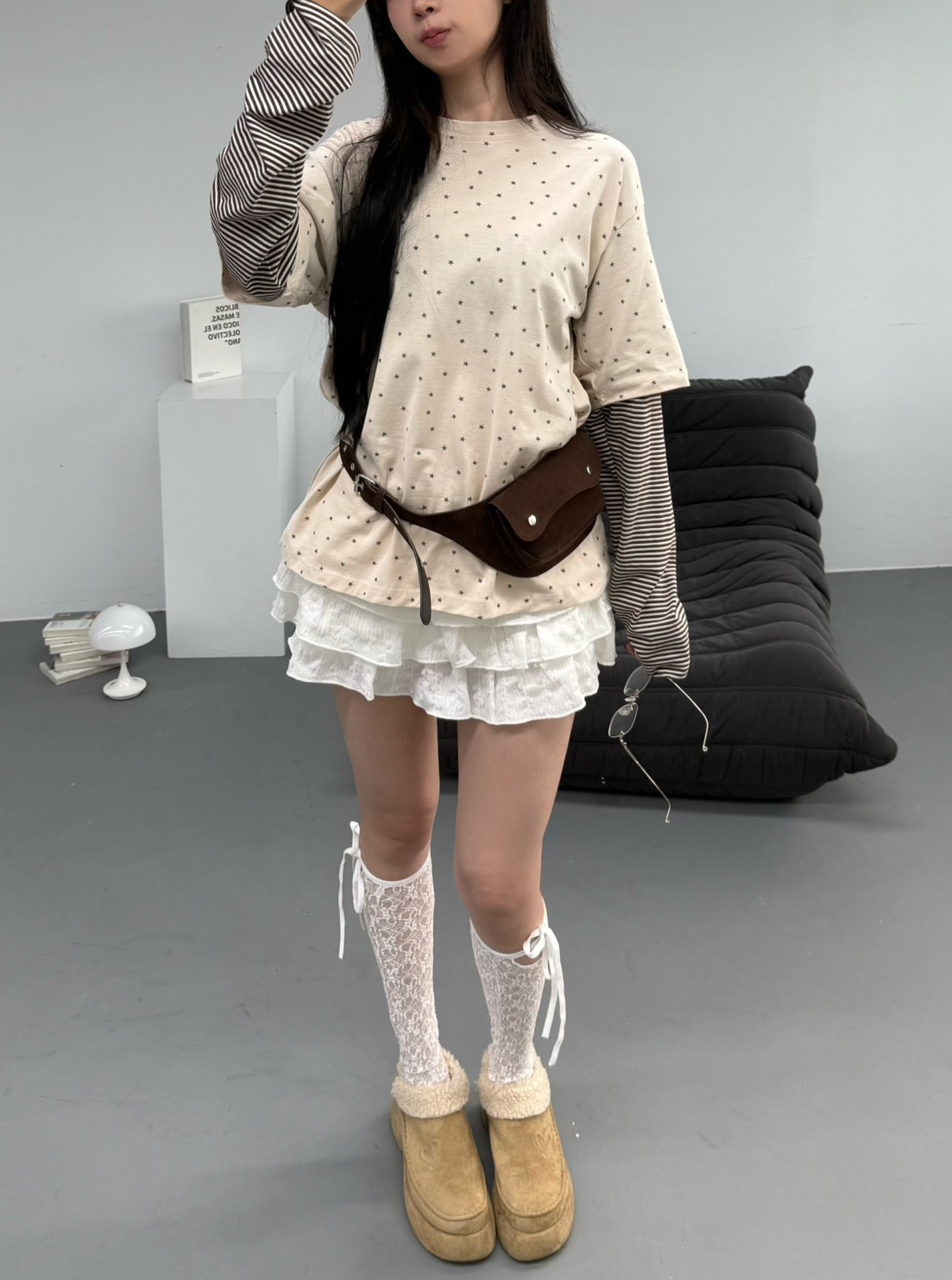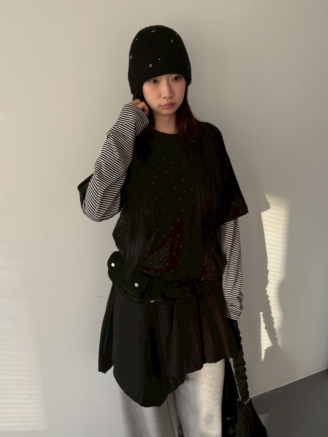 預購滿版星星袖橫條假2件上衣