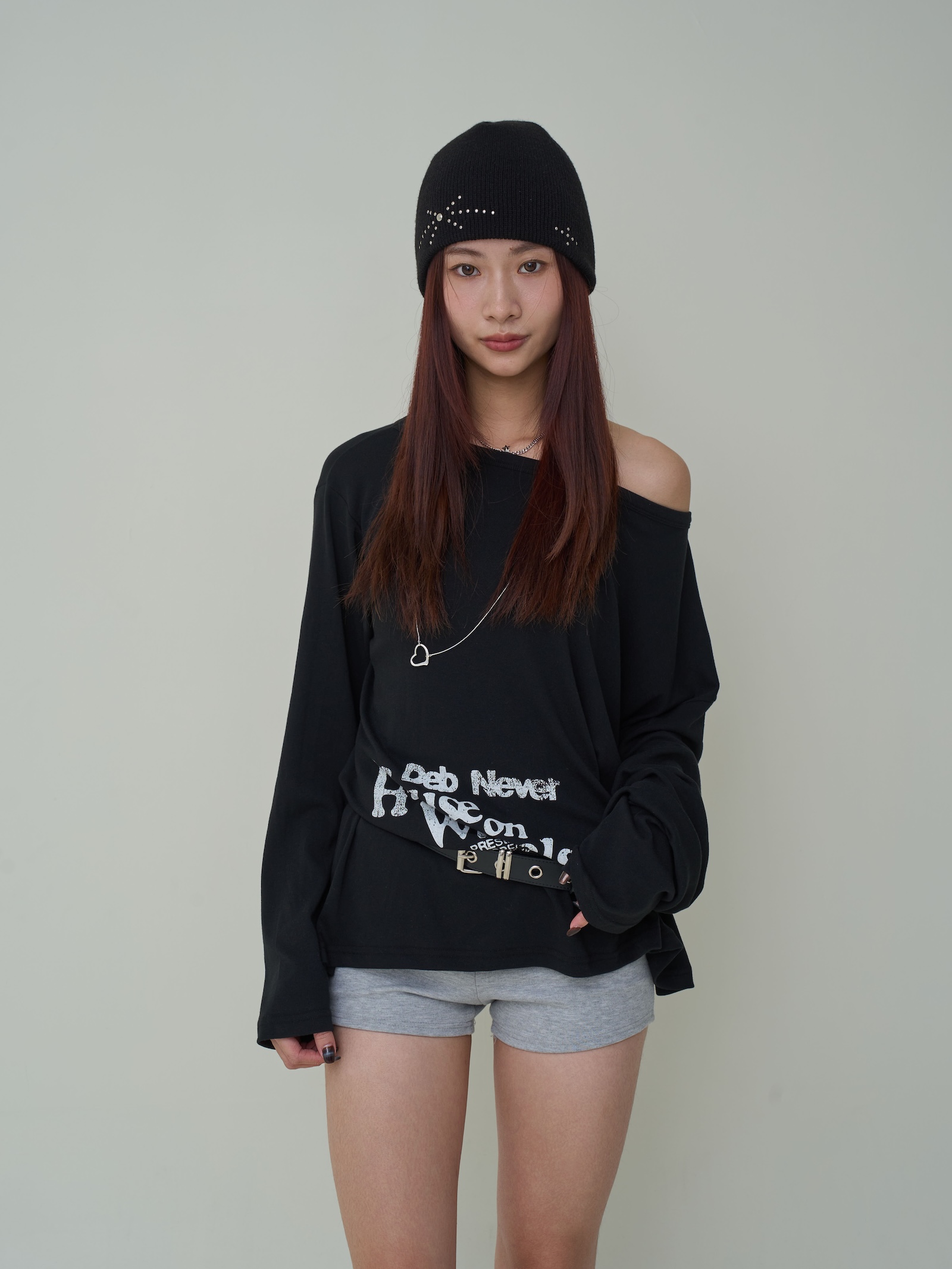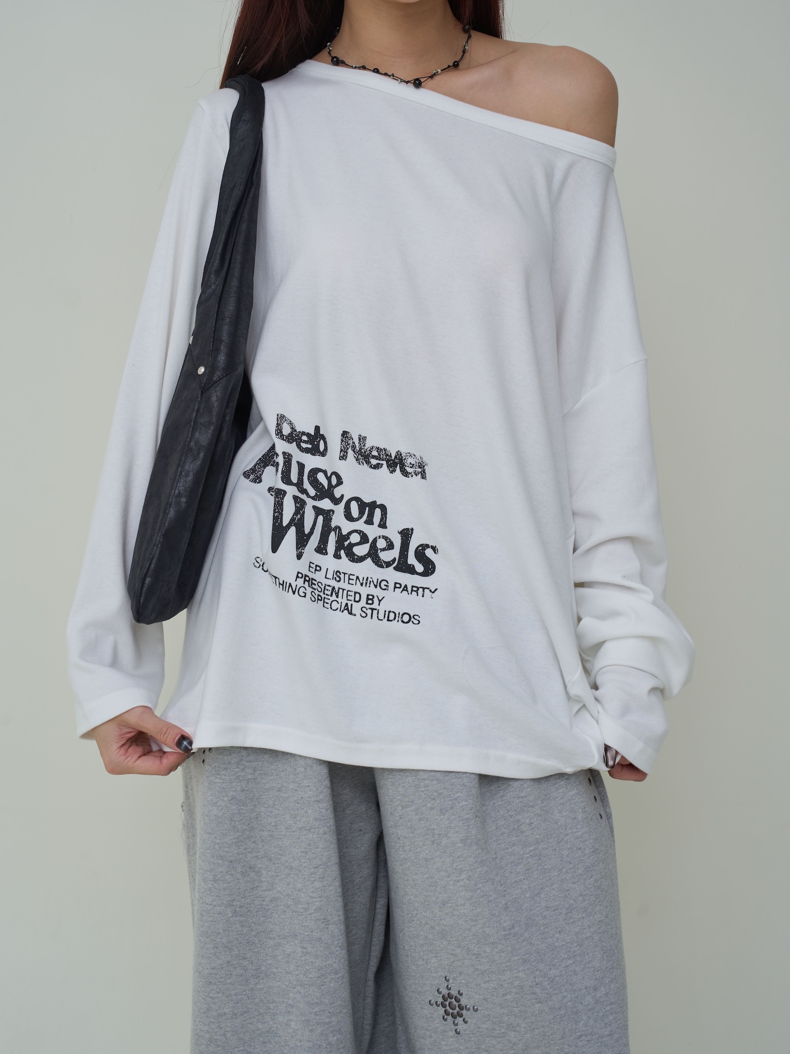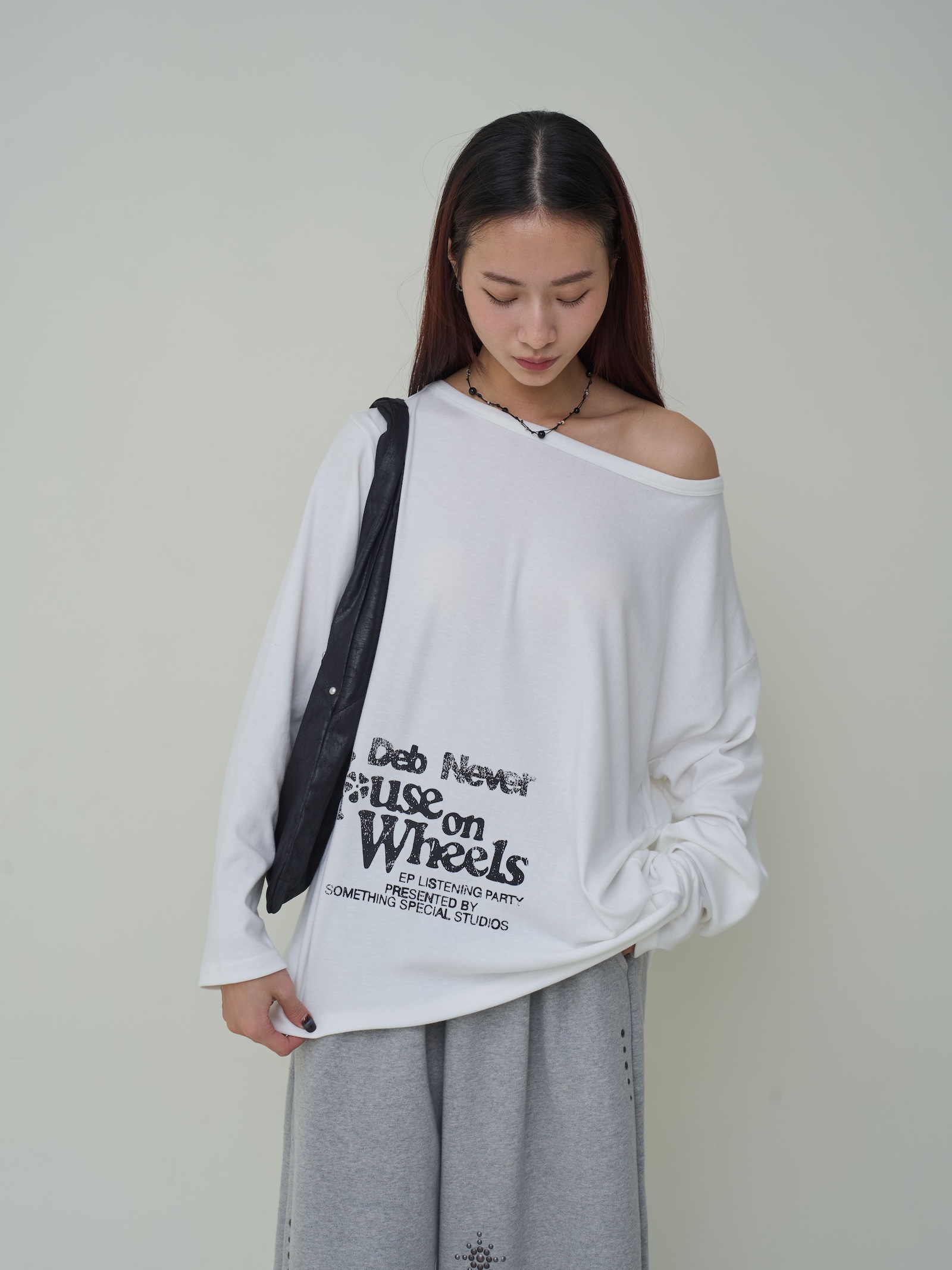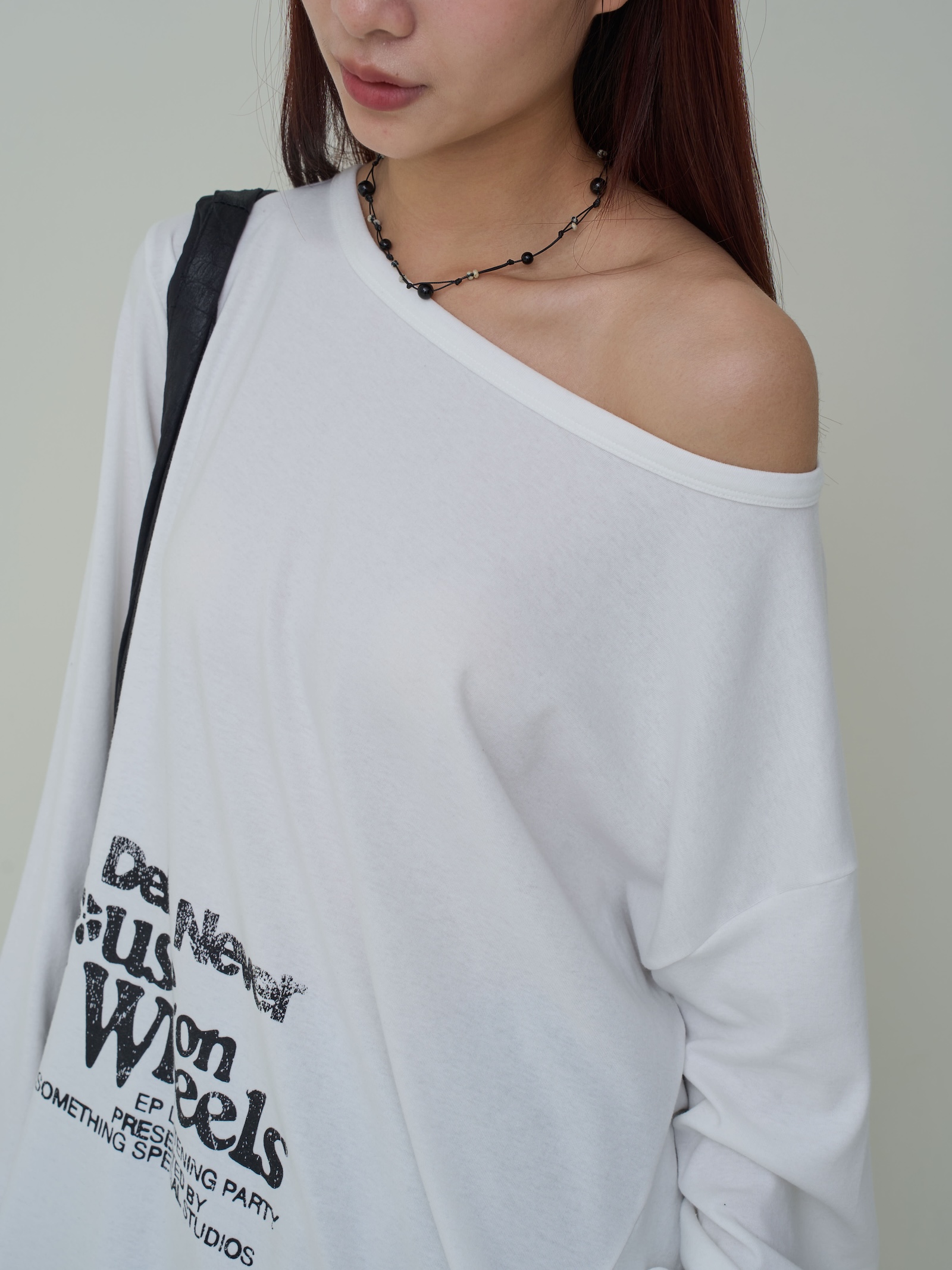 下印刷舊大小英字斜肩棉T