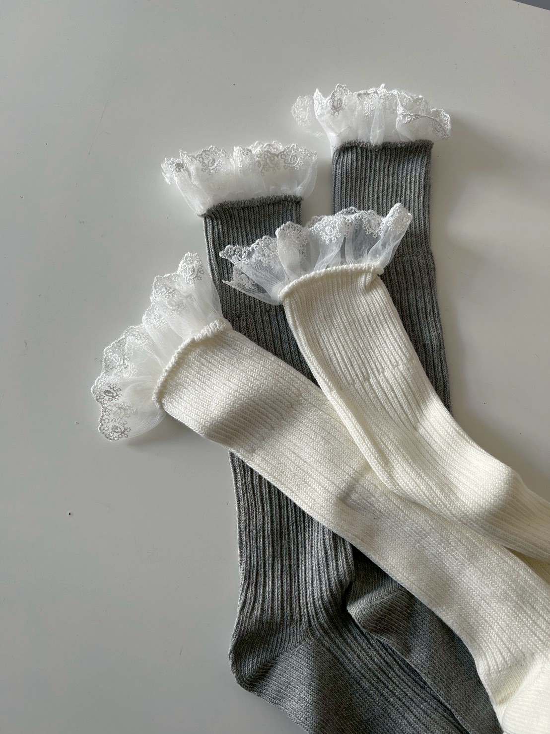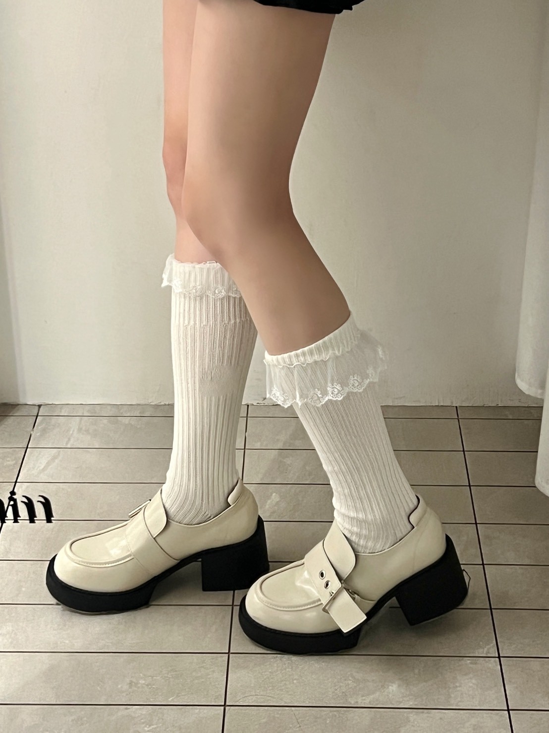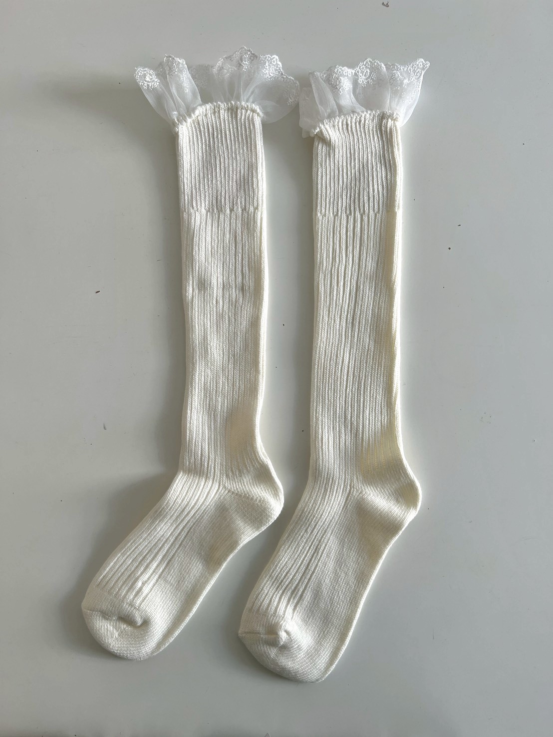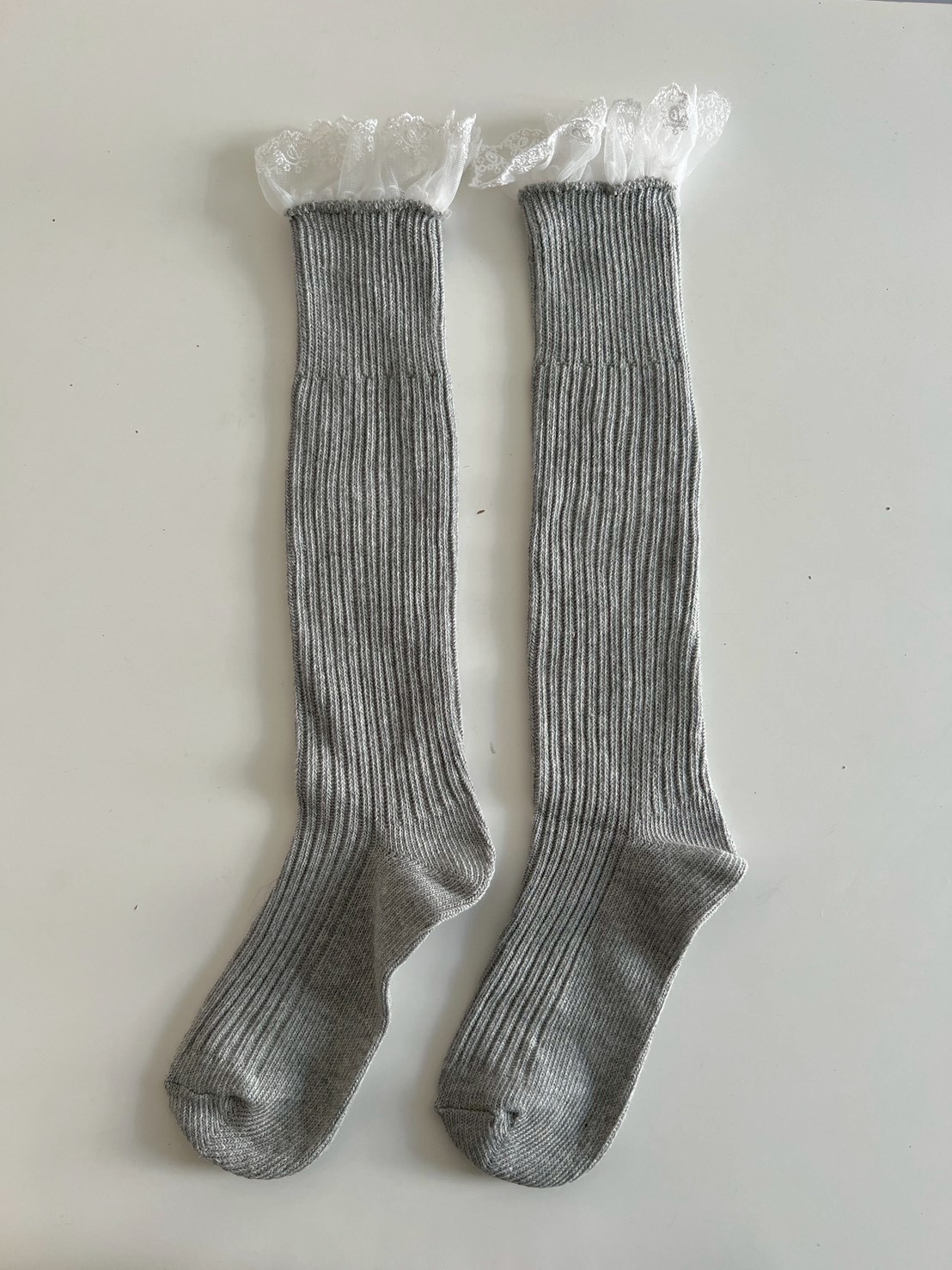 蕾絲花邊粗直坑堆堆長襪
