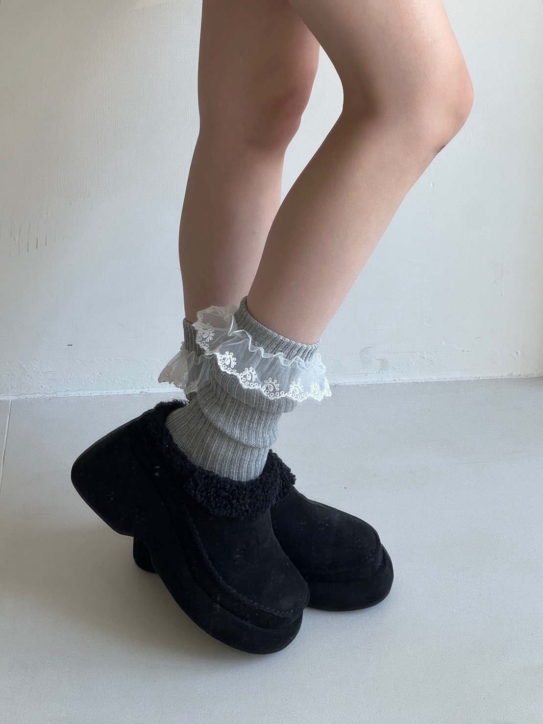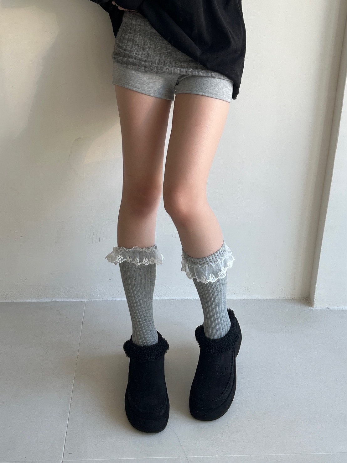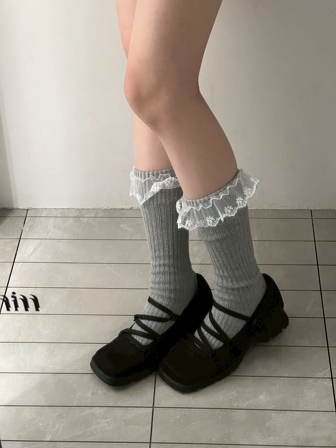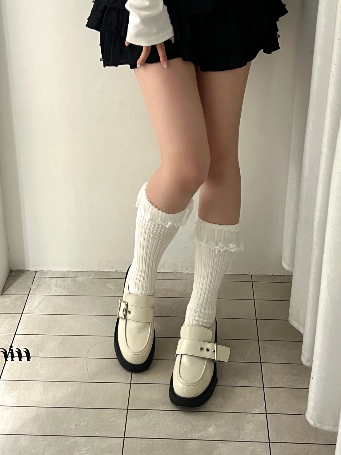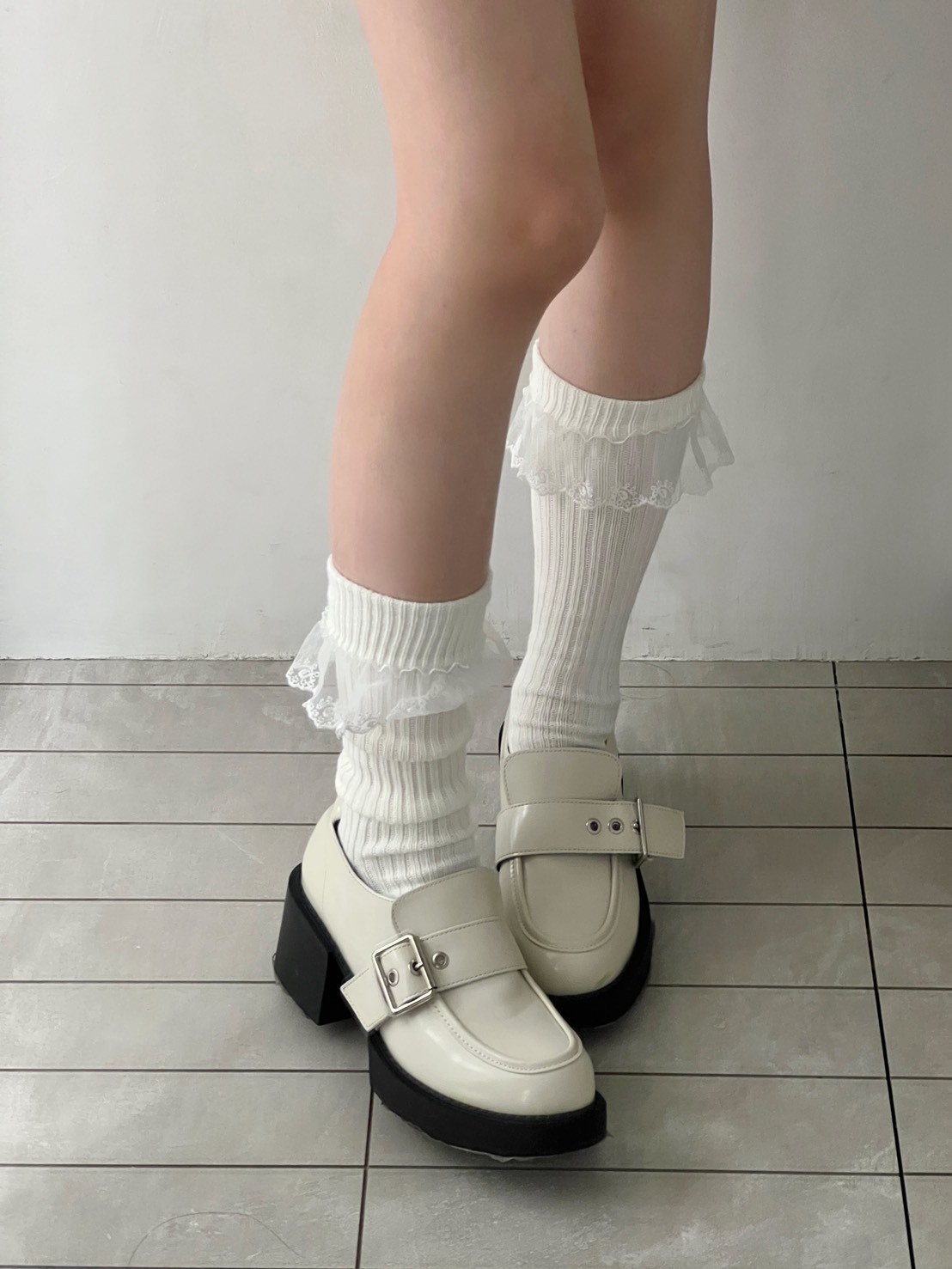 蕾絲花邊粗直坑堆堆長襪